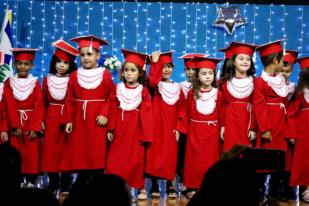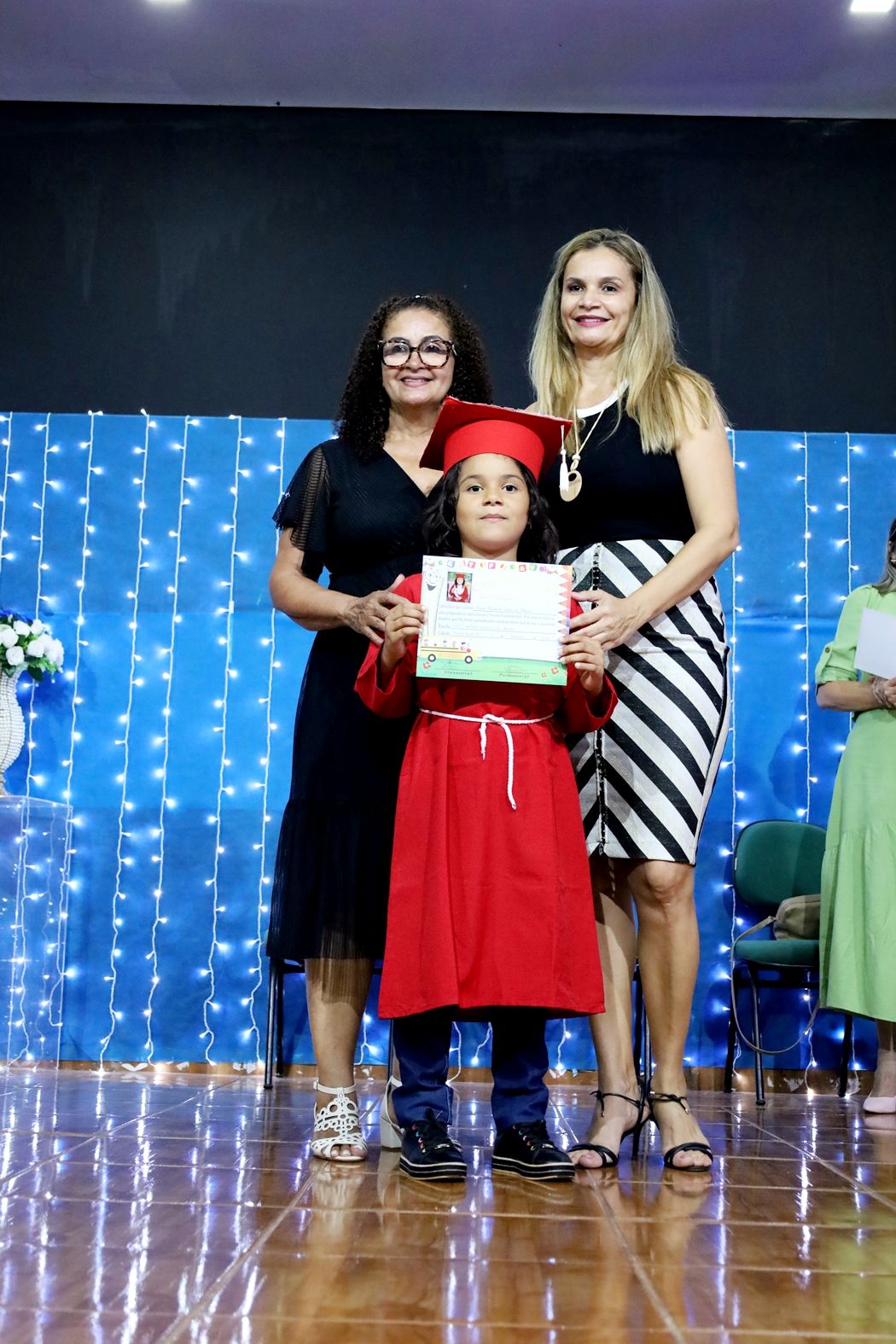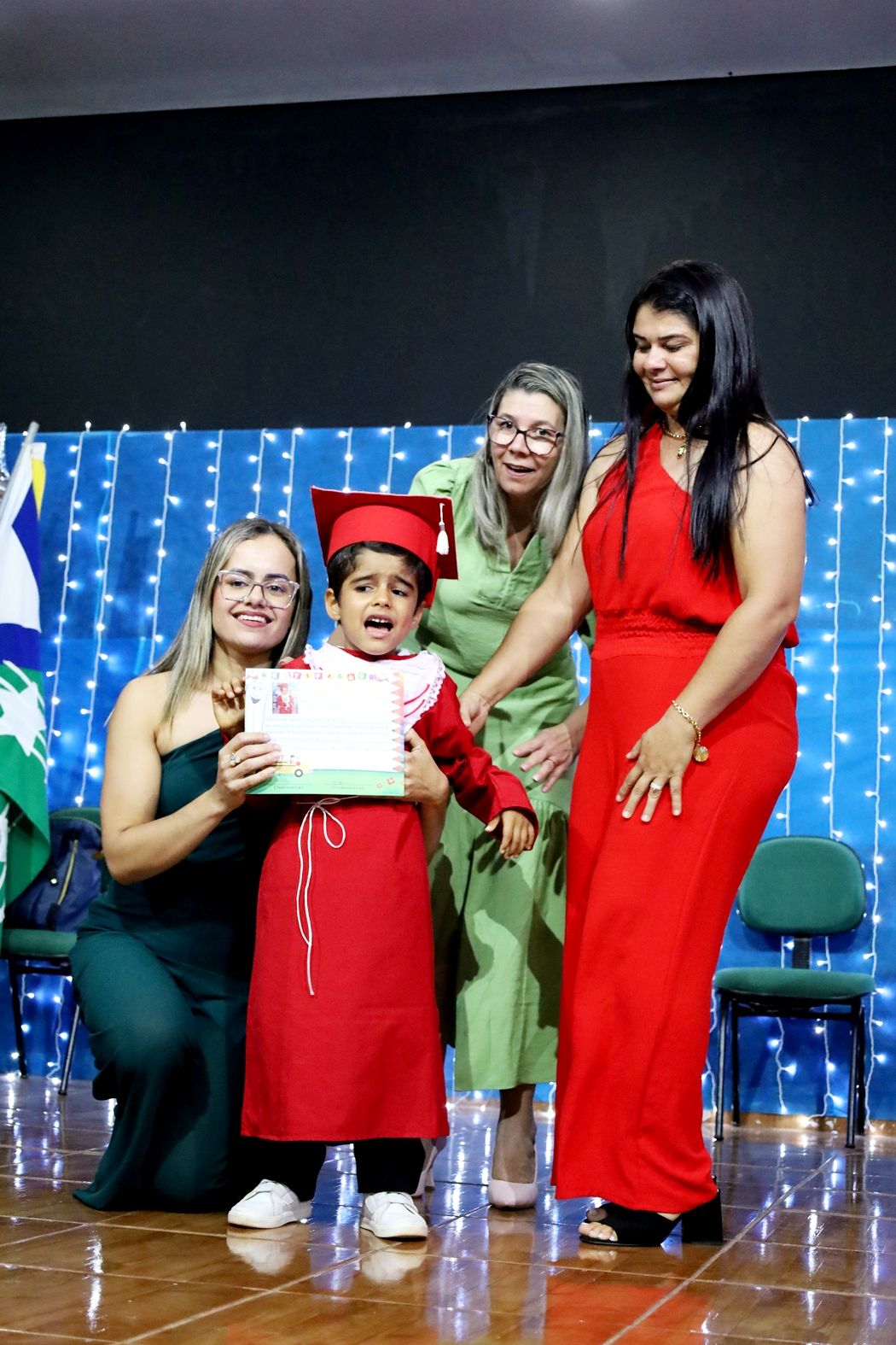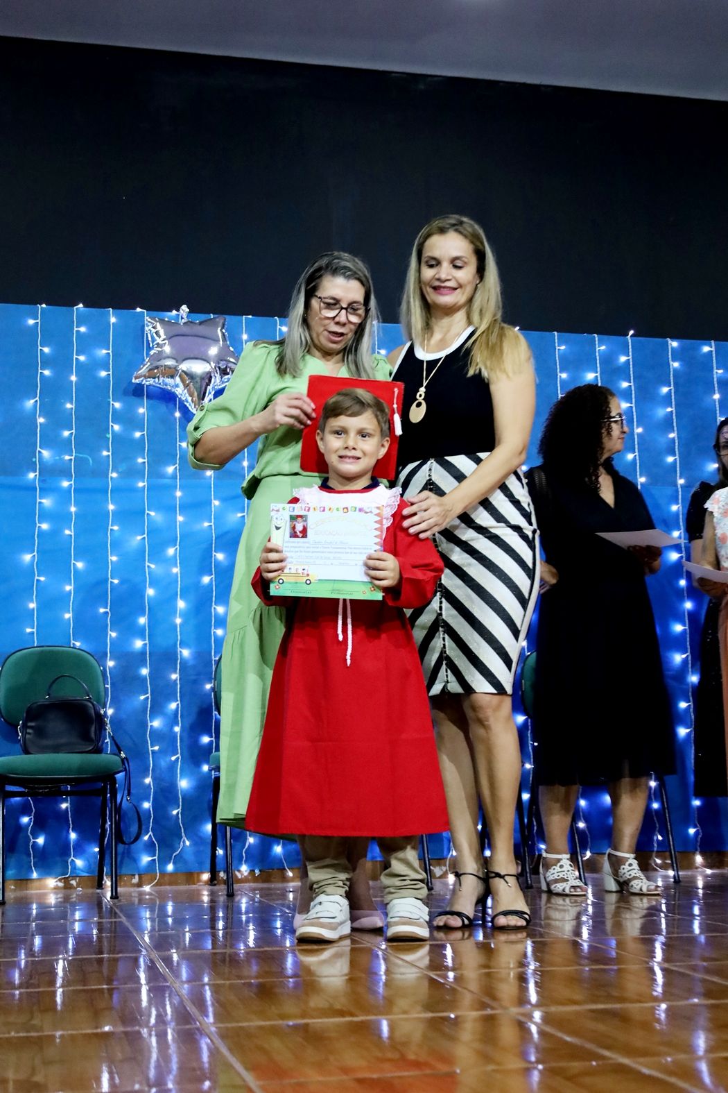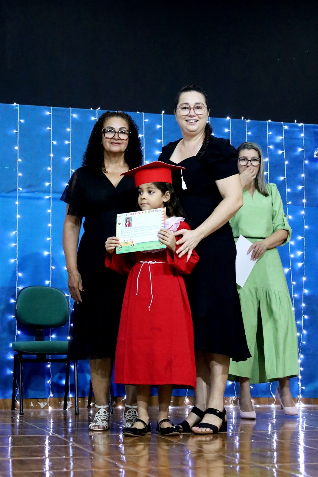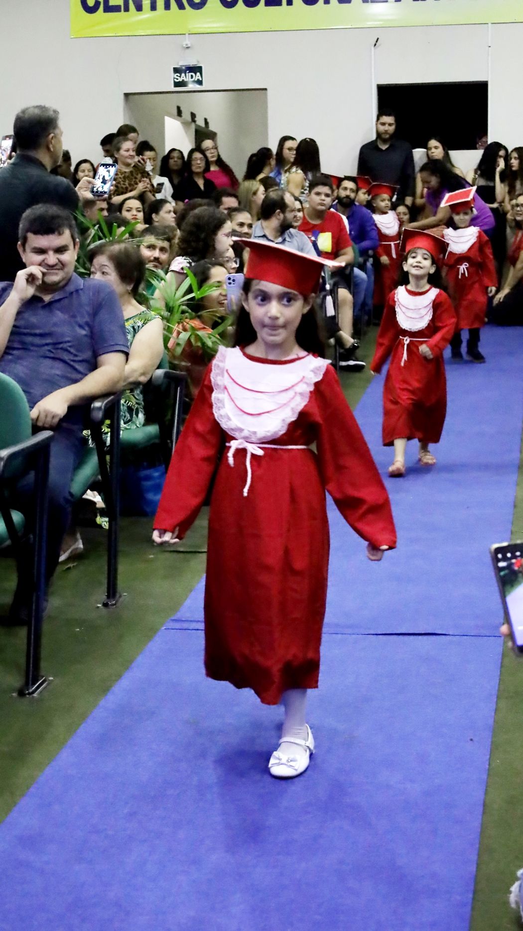 Na noite desta quinta-feira, 12 de dezembro, a Creche Betinho foi palco de uma emocionante cerimônia de formatura. O evento, que reuniu mais de 100 formandos, contou com a presença de familiares, amigos, professores e autoridades locais, incluindo a Secretária de Educação, Marcilene Rodrigues.