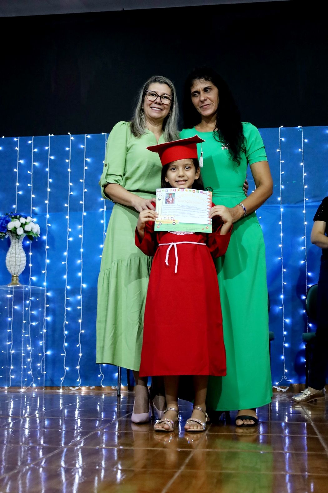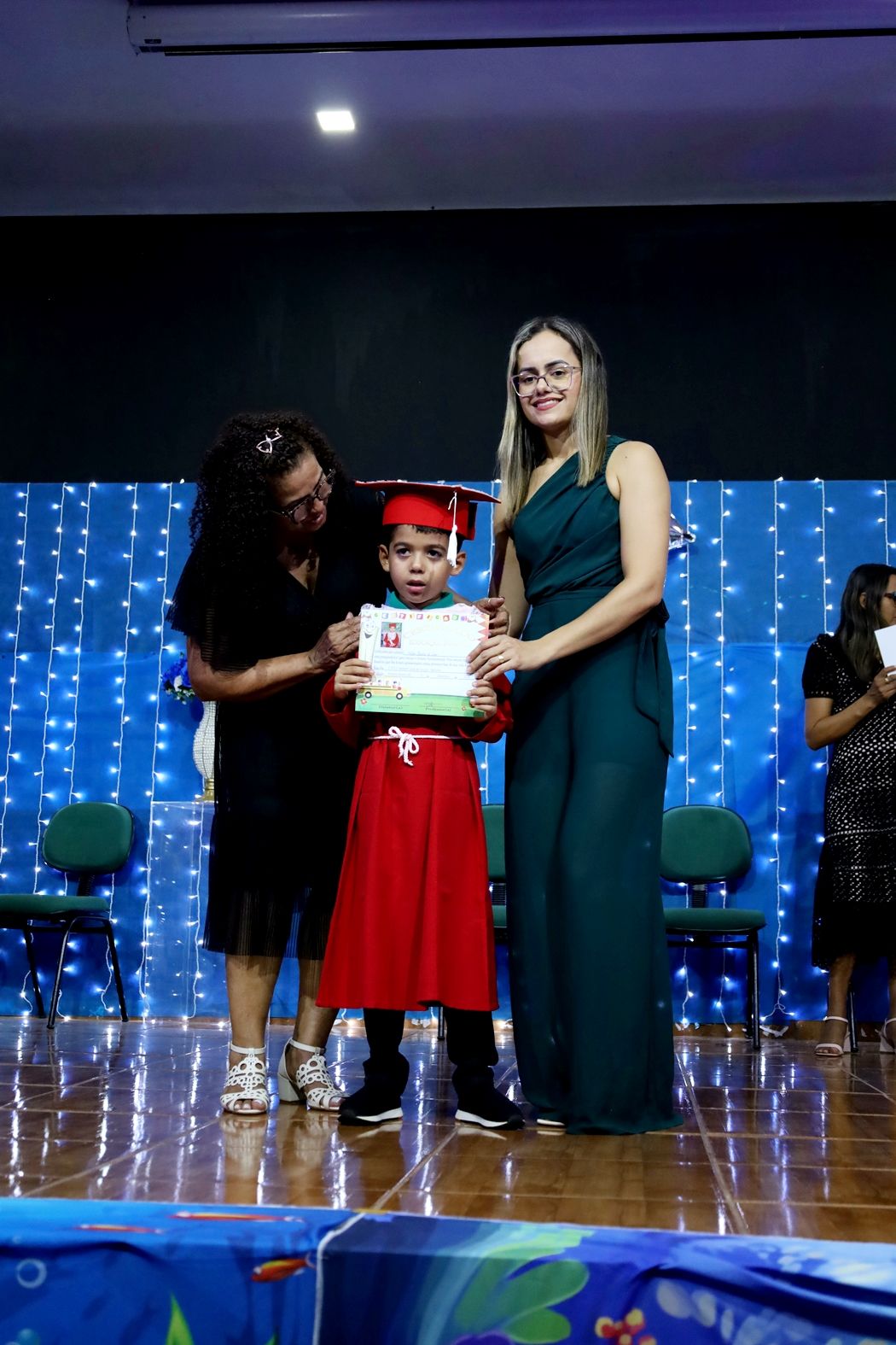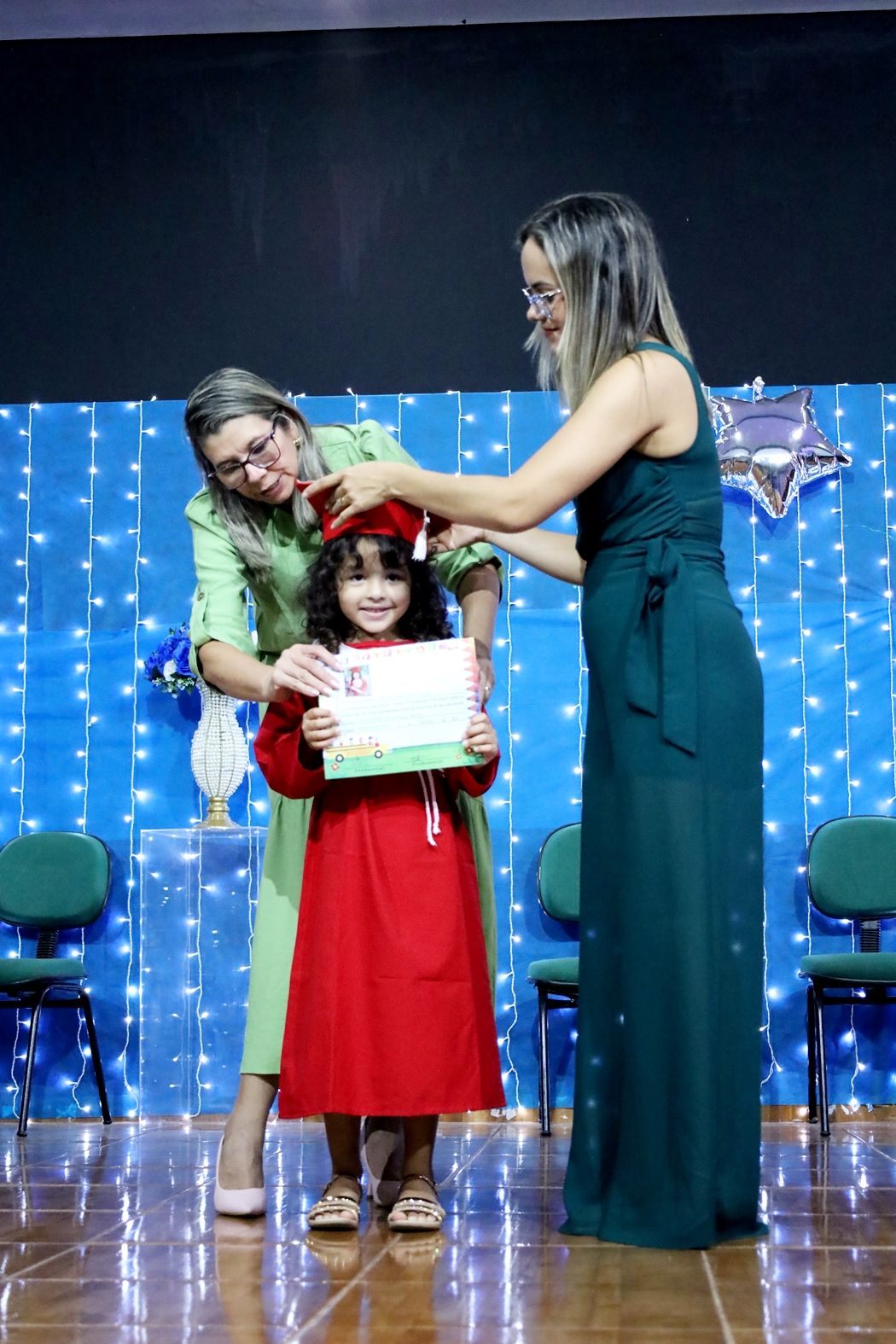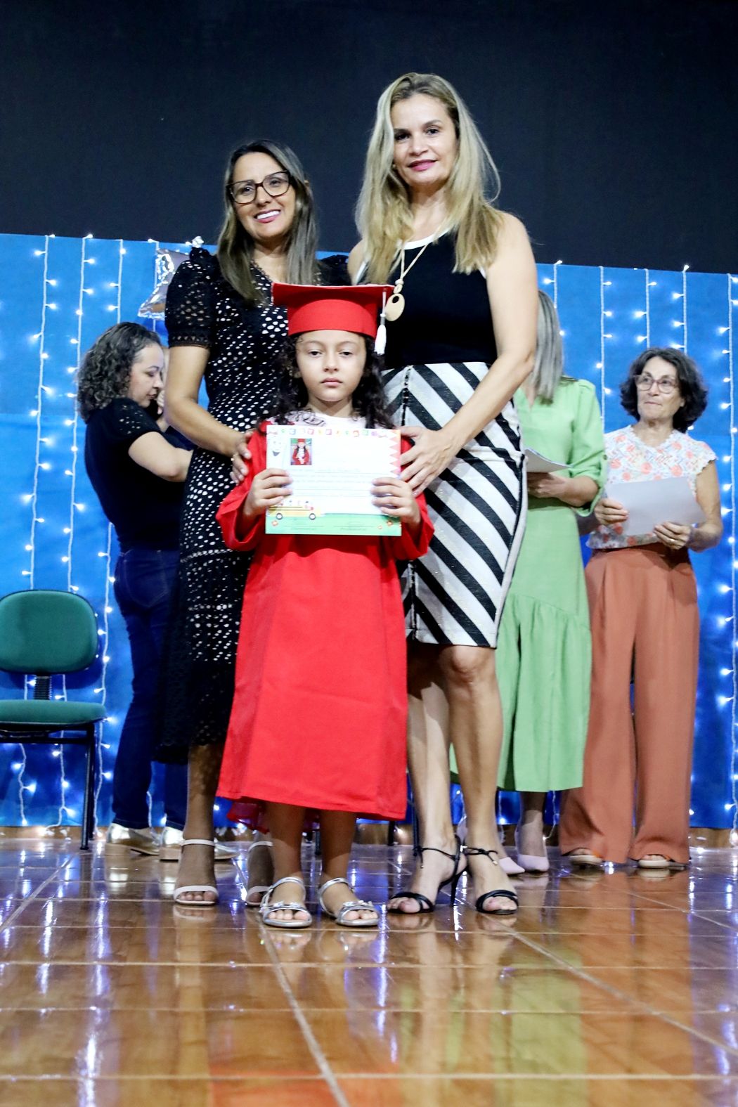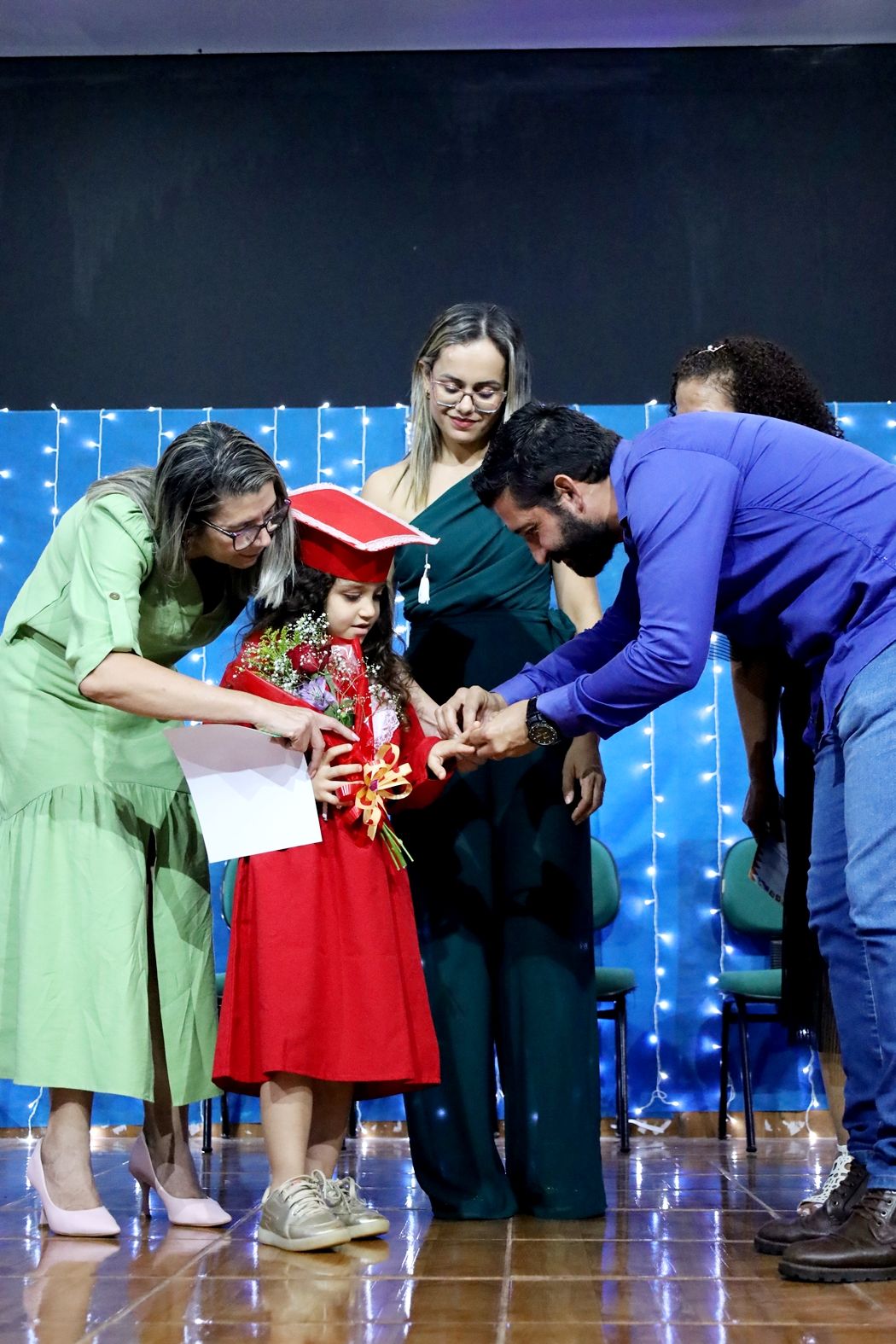 Na noite desta quinta-feira, 12 de dezembro, a Creche Betinho foi palco de uma emocionante cerimônia de formatura. O evento, que reuniu mais de 100 formandos, contou com a presença de familiares, amigos, professores e autoridades locais, incluindo a Secretária de Educação, Marcilene Rodrigues.