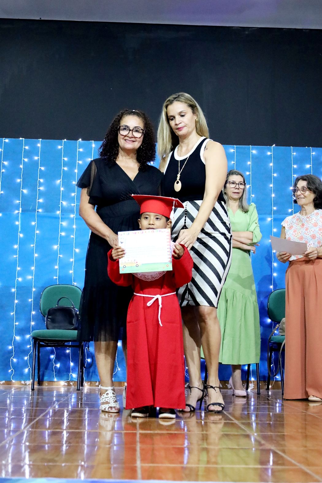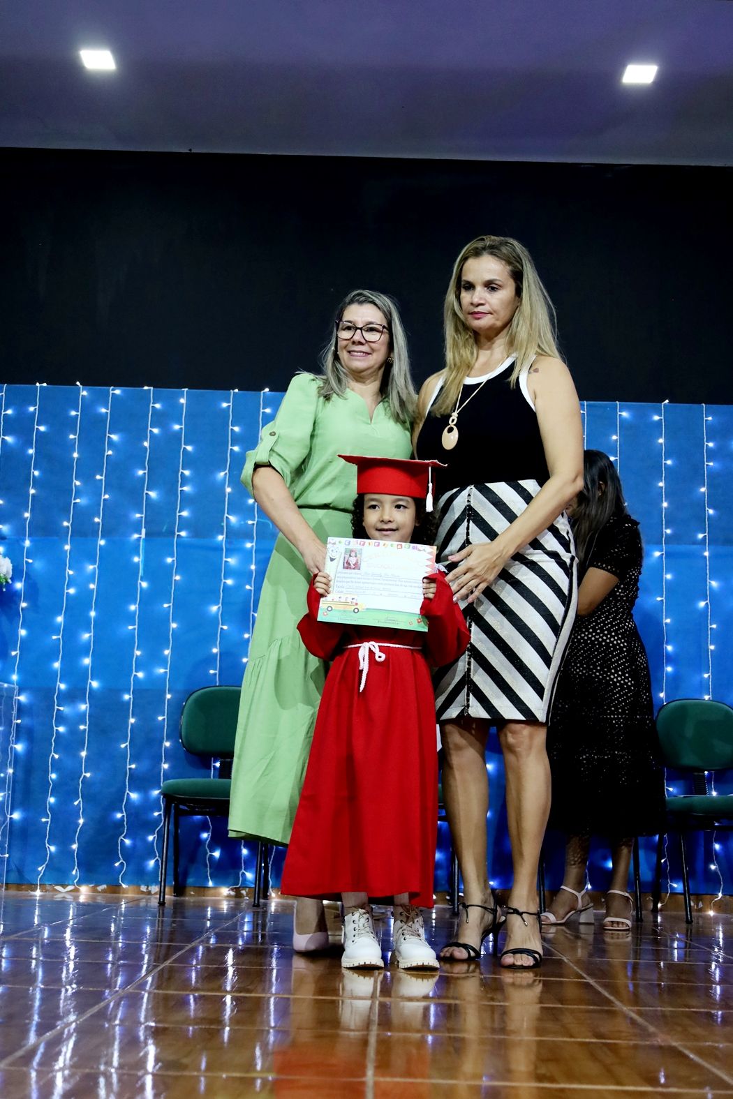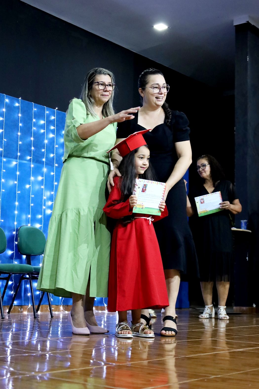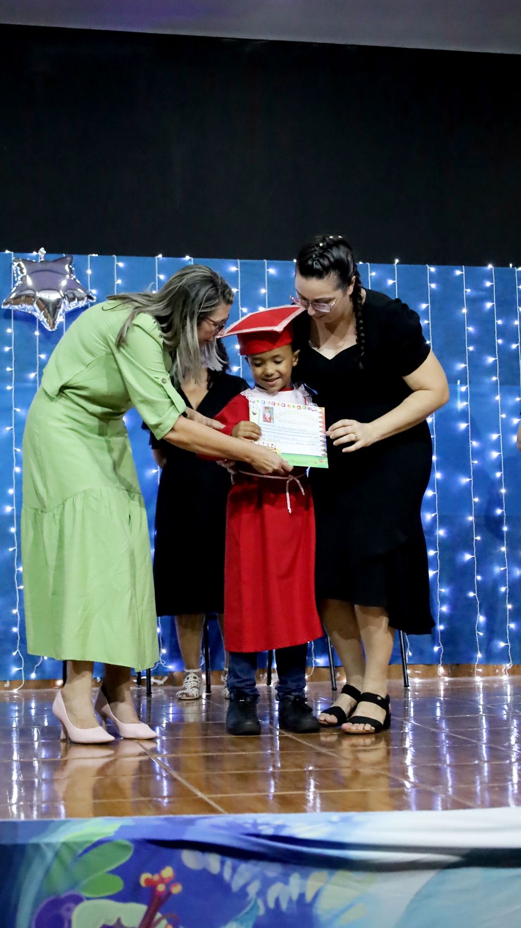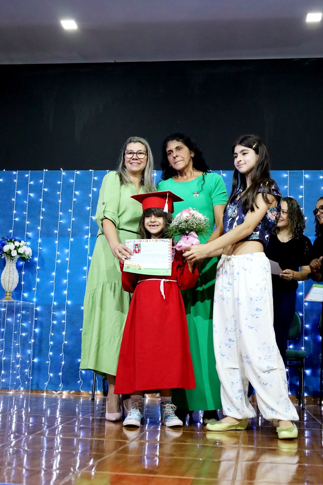 Na noite desta quinta-feira, 12 de dezembro, a Creche Betinho foi palco de uma emocionante cerimônia de formatura. O evento, que reuniu mais de 100 formandos, contou com a presença de familiares, amigos, professores e autoridades locais, incluindo a Secretária de Educação, Marcilene Rodrigues.