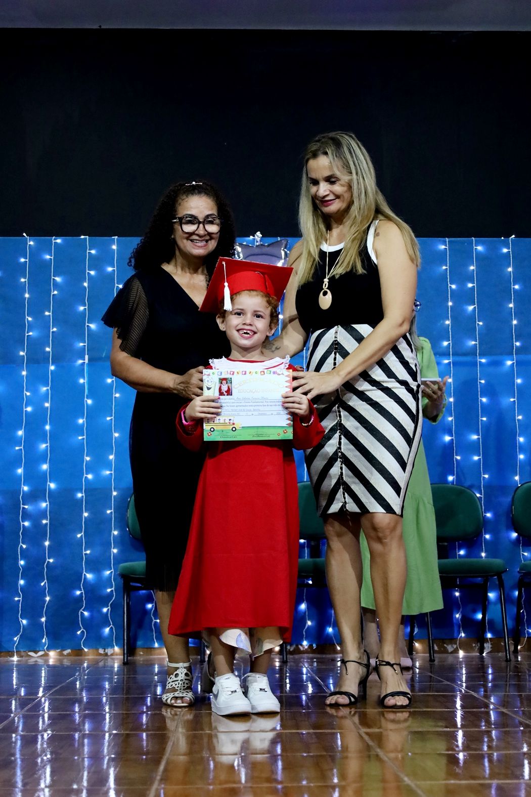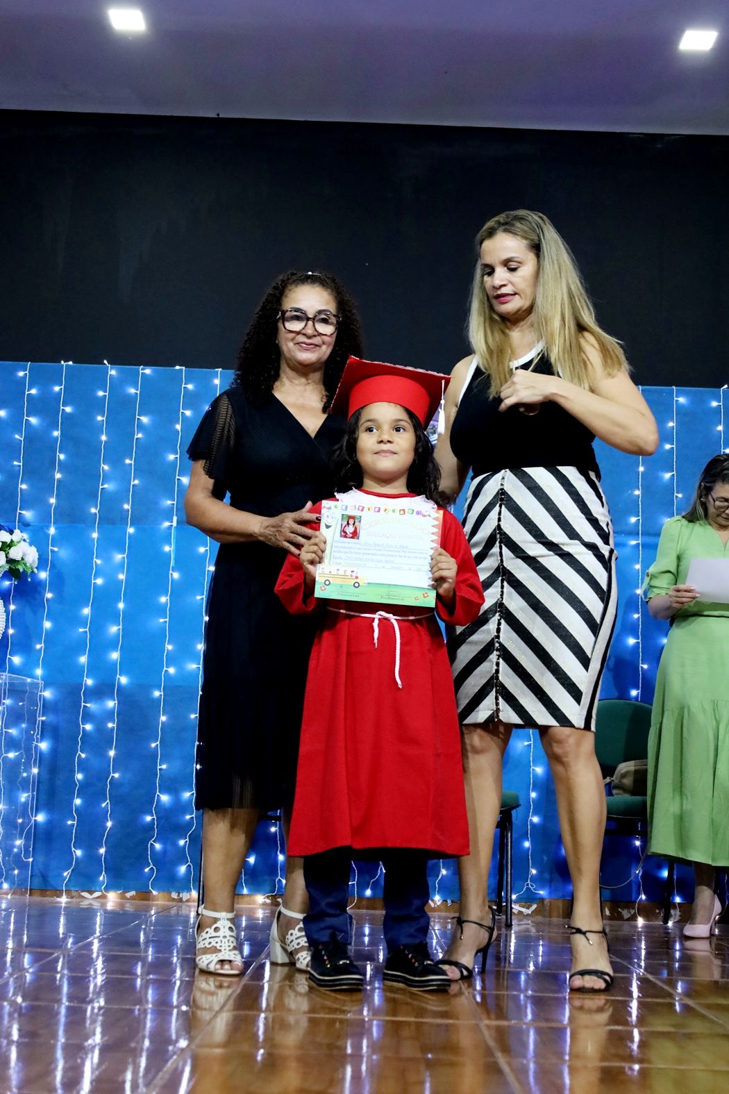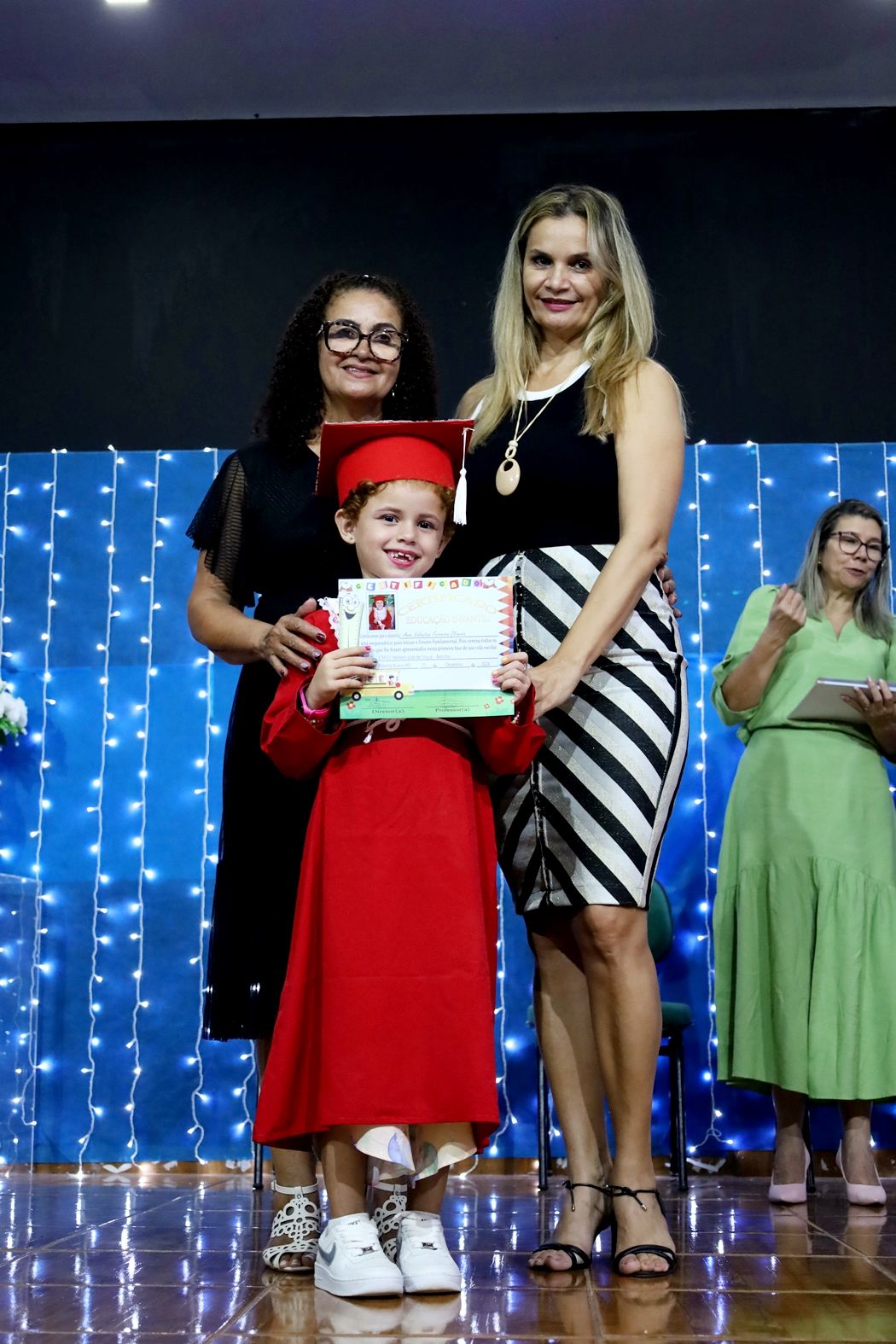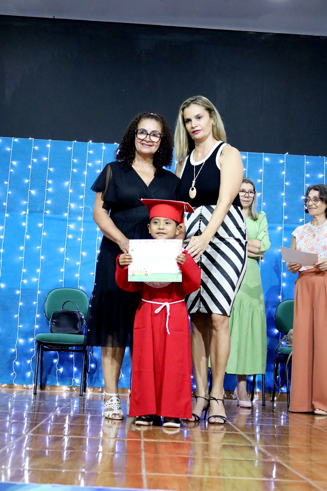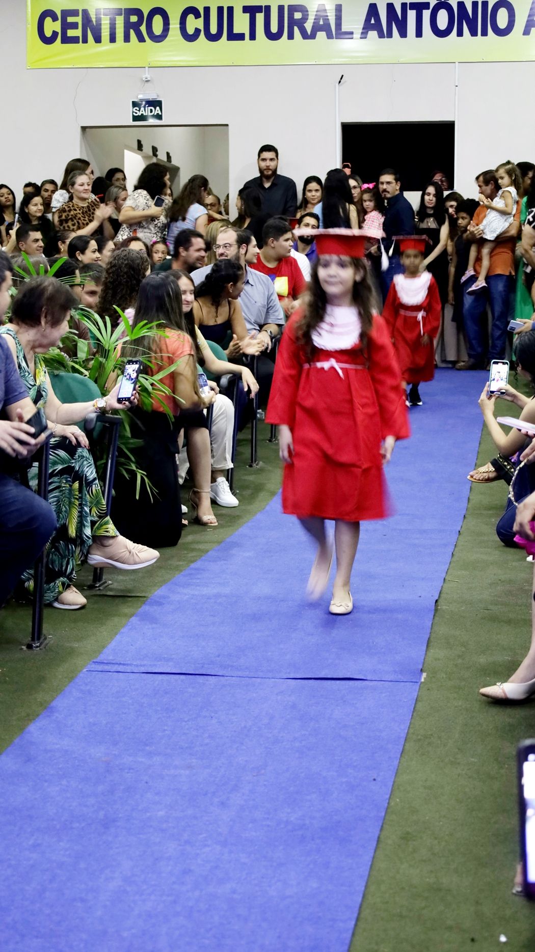 Na noite desta quinta-feira, 12 de dezembro, a Creche Betinho foi palco de uma emocionante cerimônia de formatura. O evento, que reuniu mais de 100 formandos, contou com a presença de familiares, amigos, professores e autoridades locais, incluindo a Secretária de Educação, Marcilene Rodrigues.