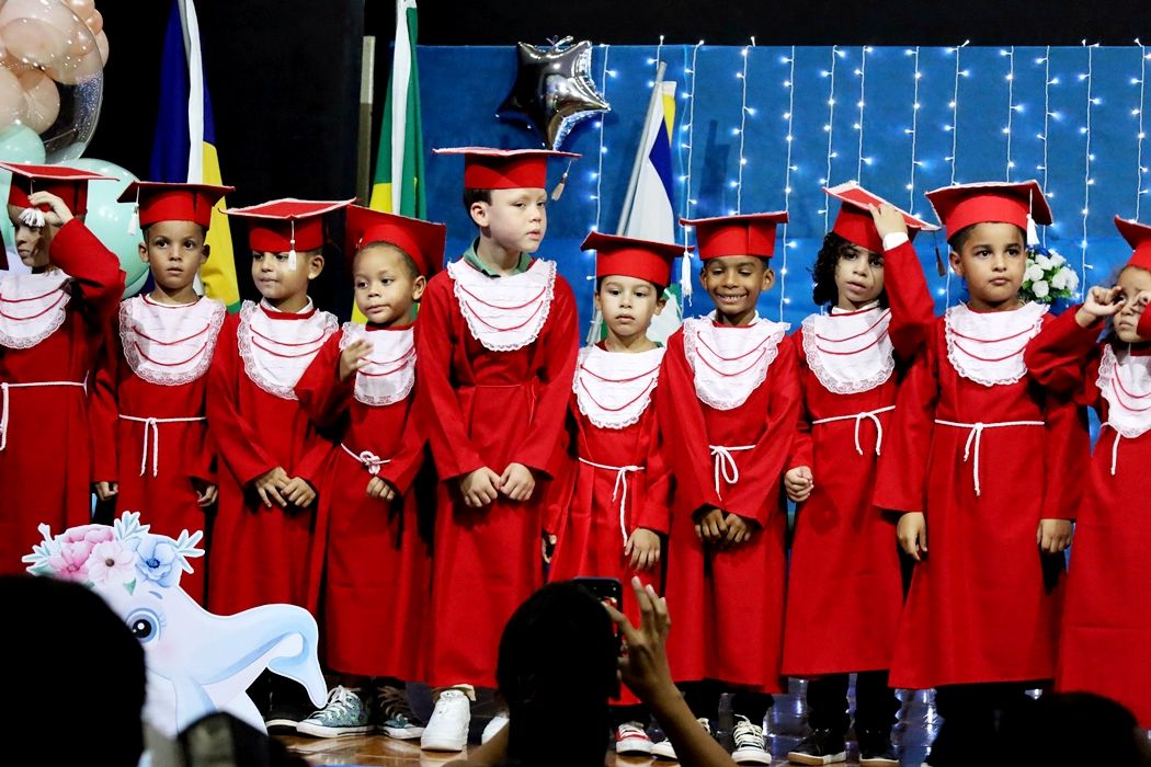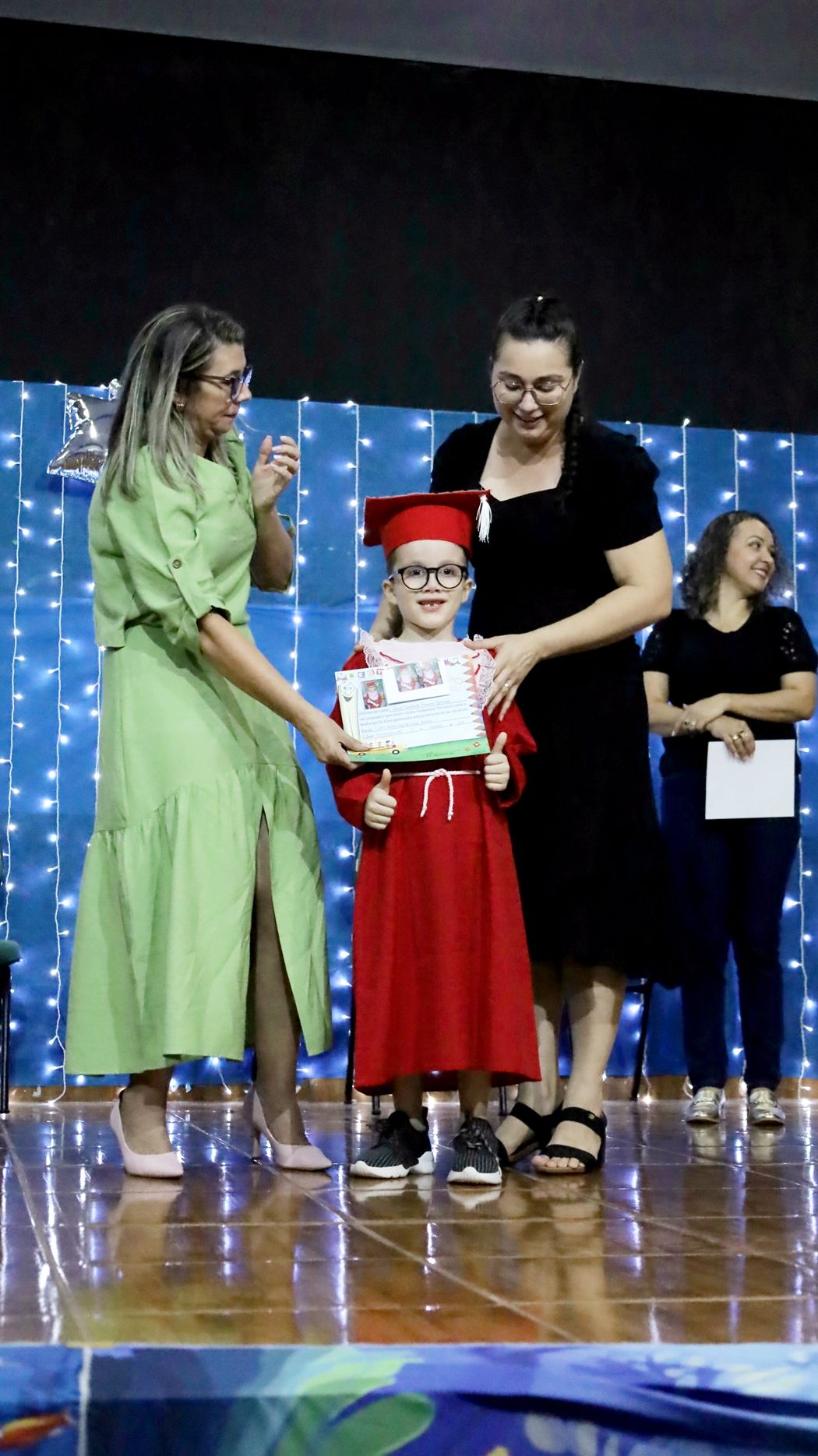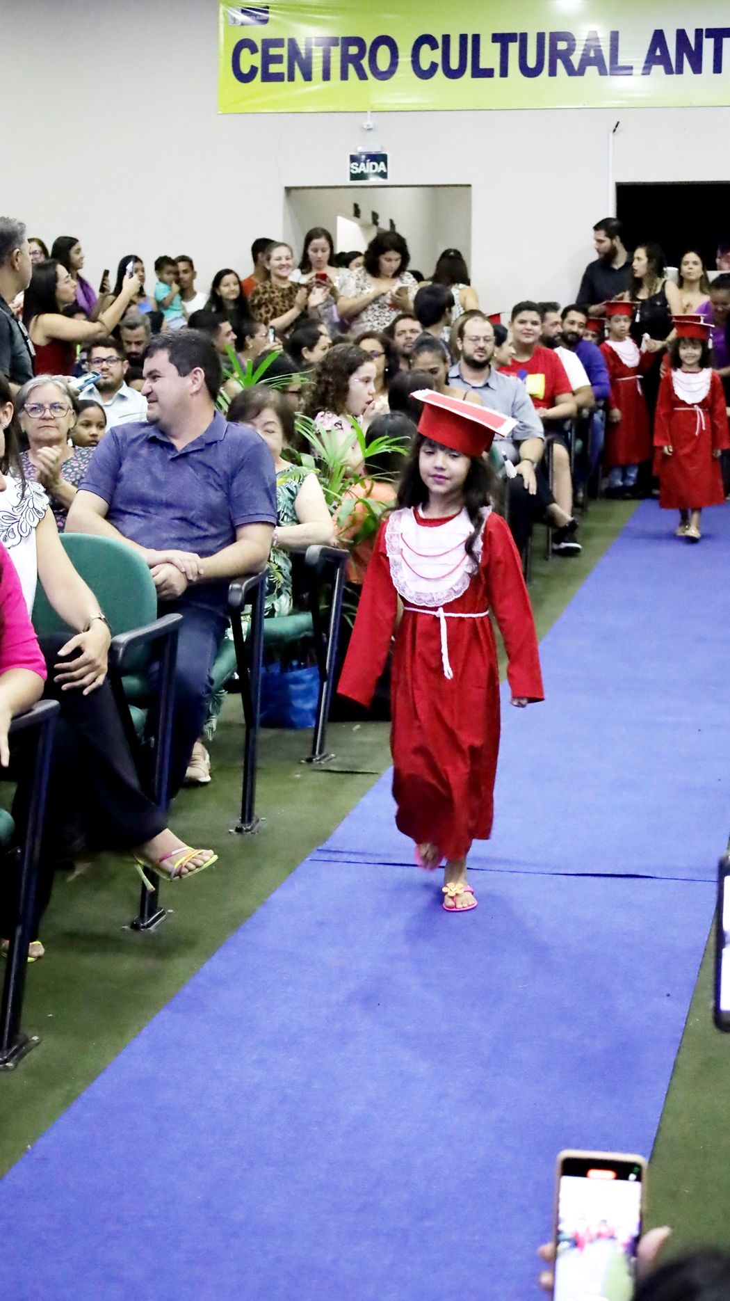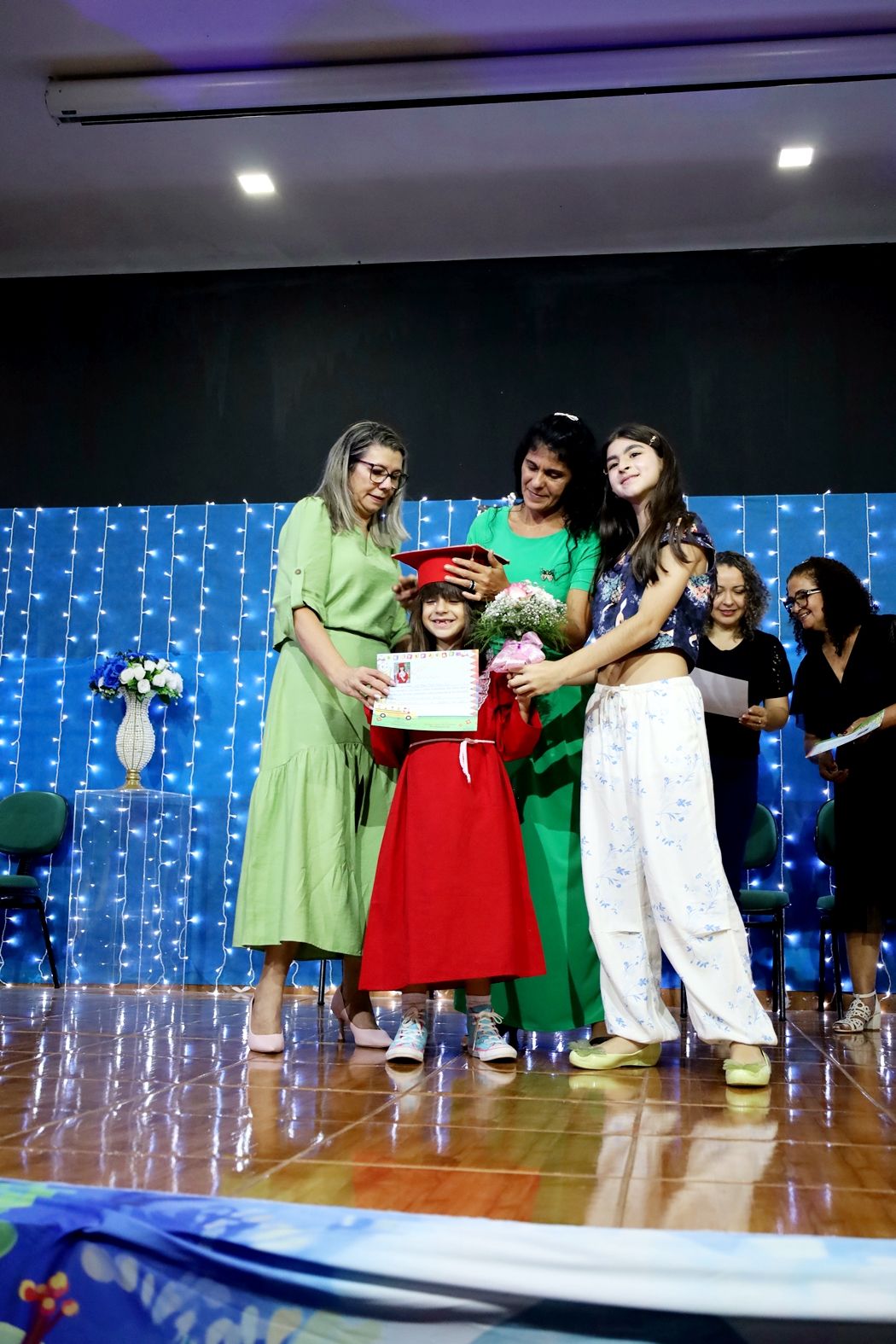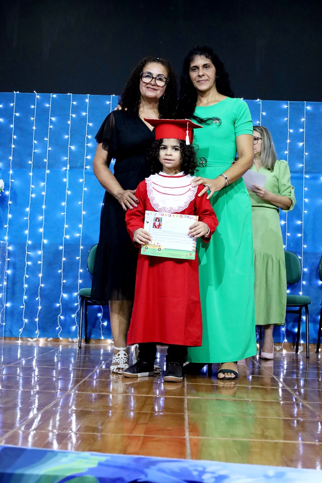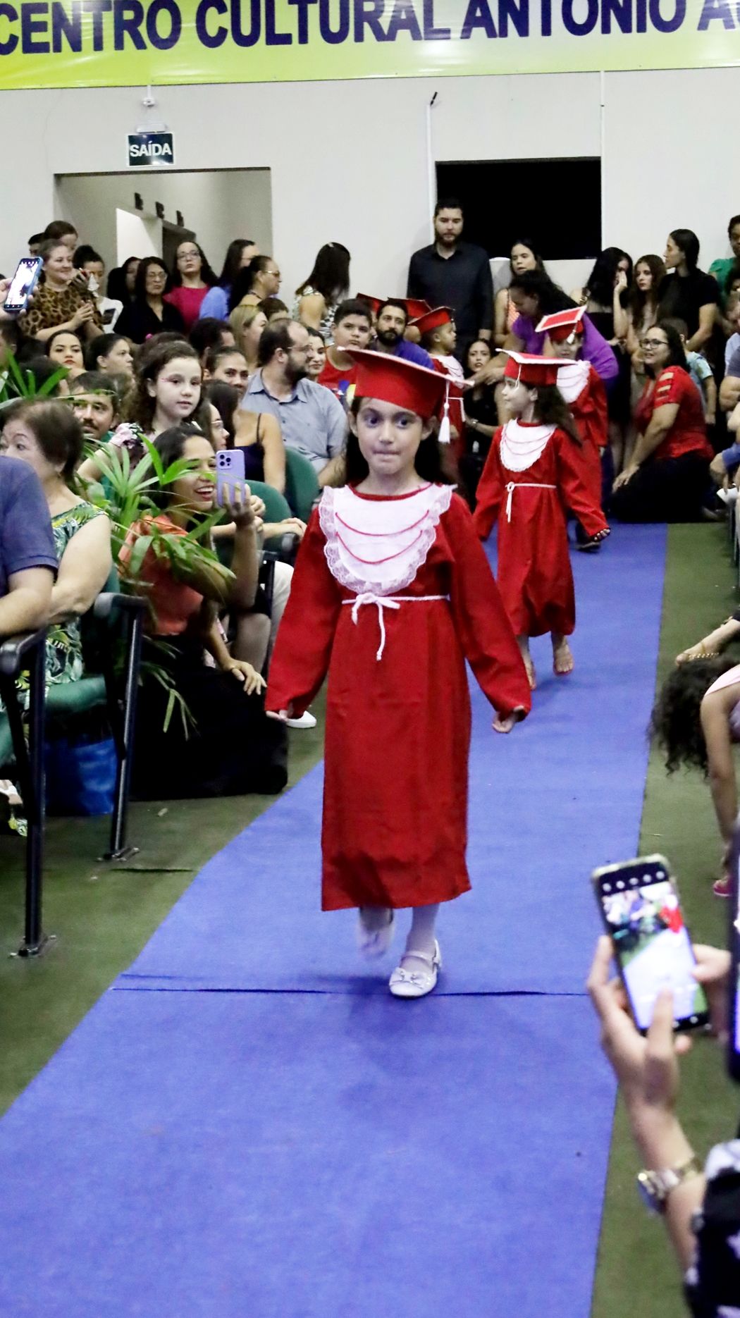 Na noite desta quinta-feira, 12 de dezembro, a Creche Betinho foi palco de uma emocionante cerimônia de formatura. O evento, que reuniu mais de 100 formandos, contou com a presença de familiares, amigos, professores e autoridades locais, incluindo a Secretária de Educação, Marcilene Rodrigues.