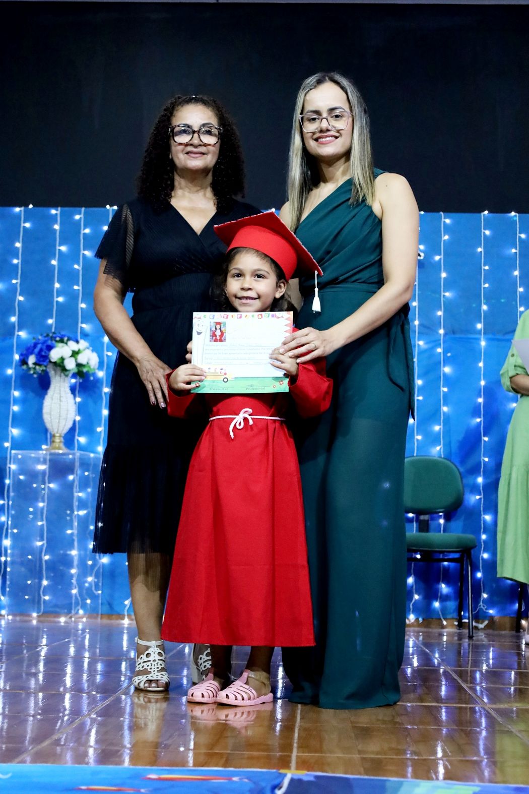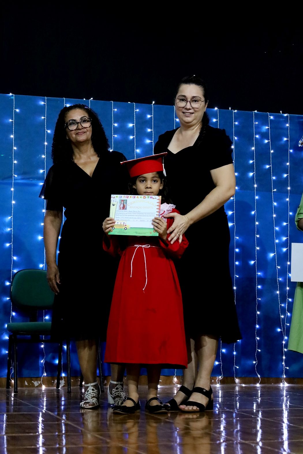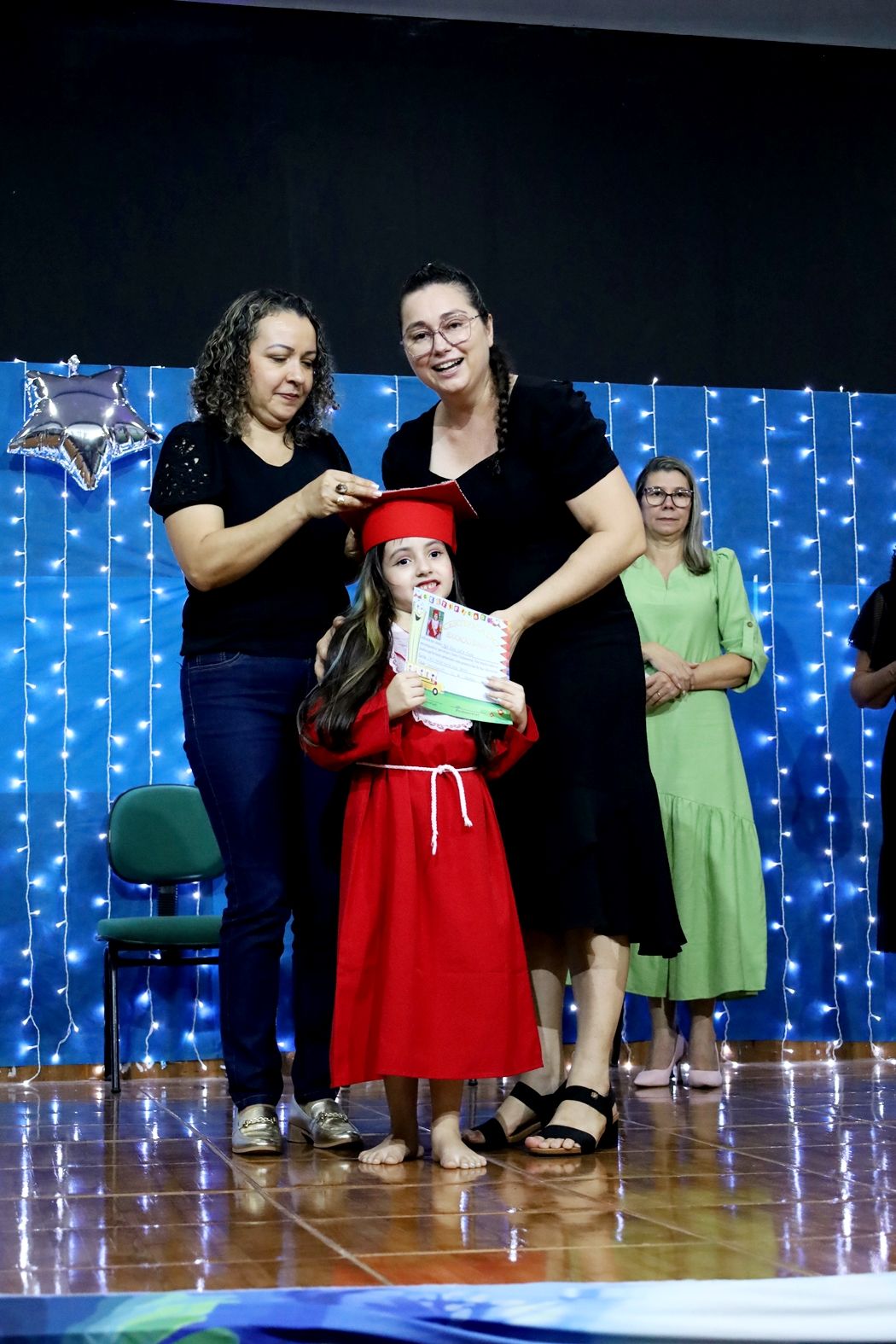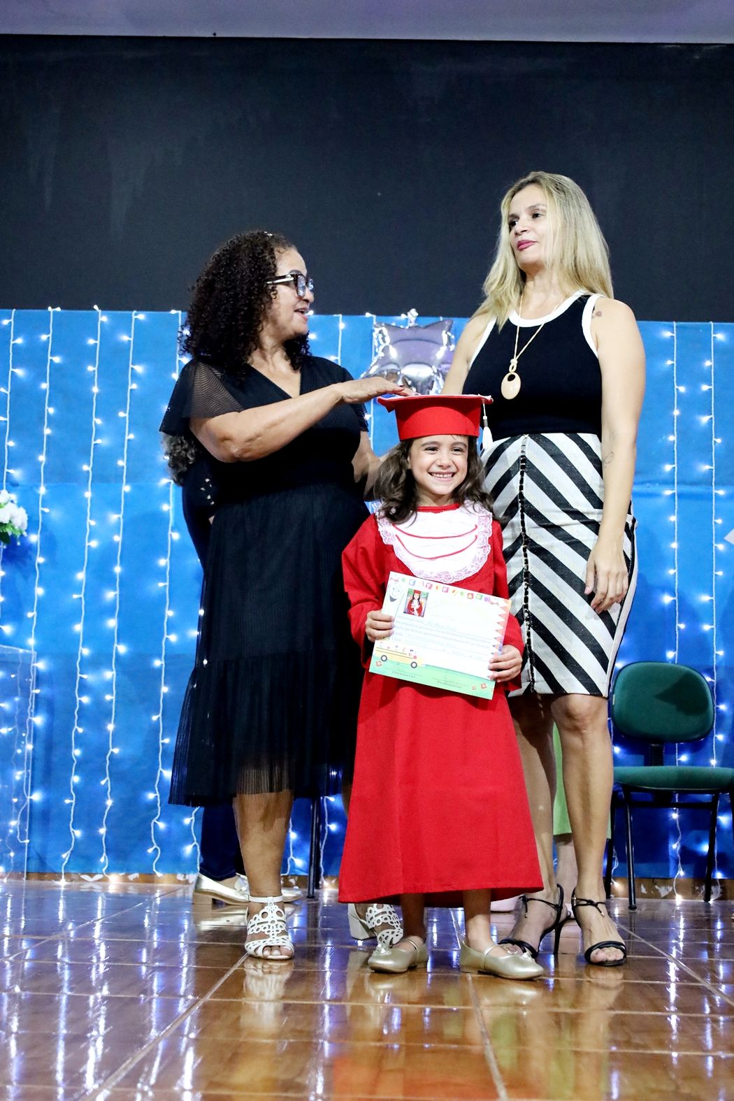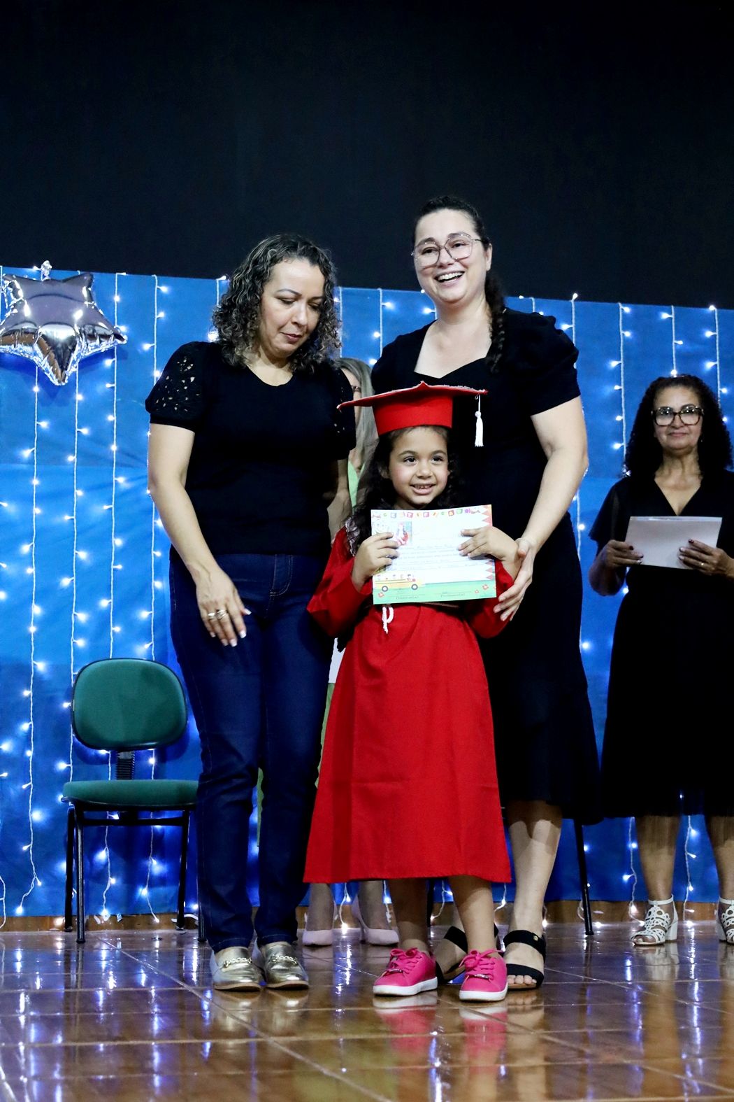 Na noite desta quinta-feira, 12 de dezembro, a Creche Betinho foi palco de uma emocionante cerimônia de formatura. O evento, que reuniu mais de 100 formandos, contou com a presença de familiares, amigos, professores e autoridades locais, incluindo a Secretária de Educação, Marcilene Rodrigues.