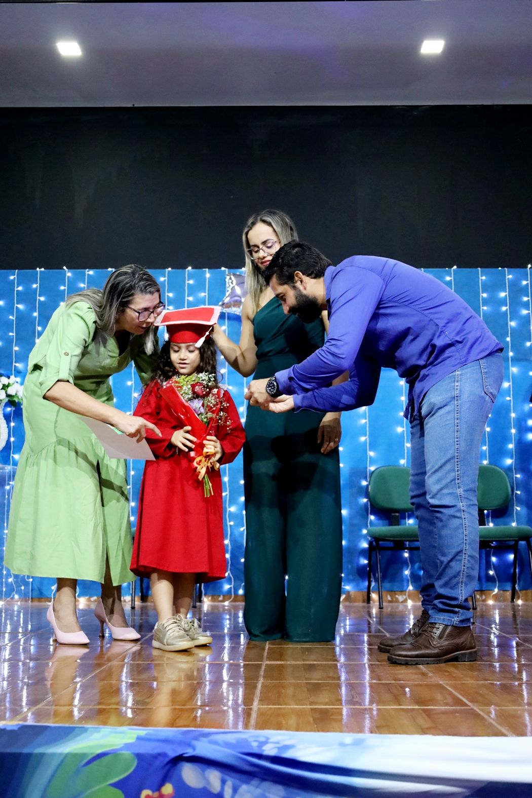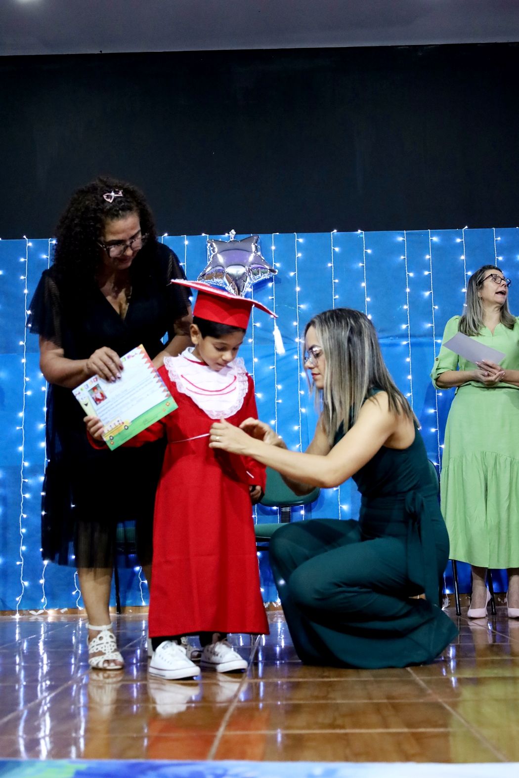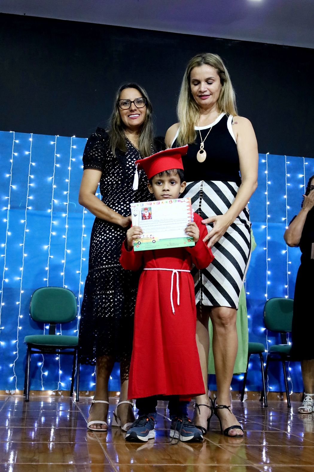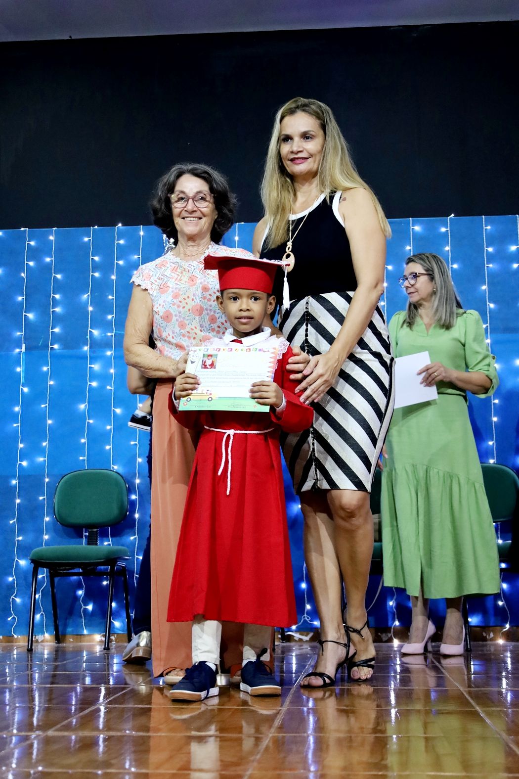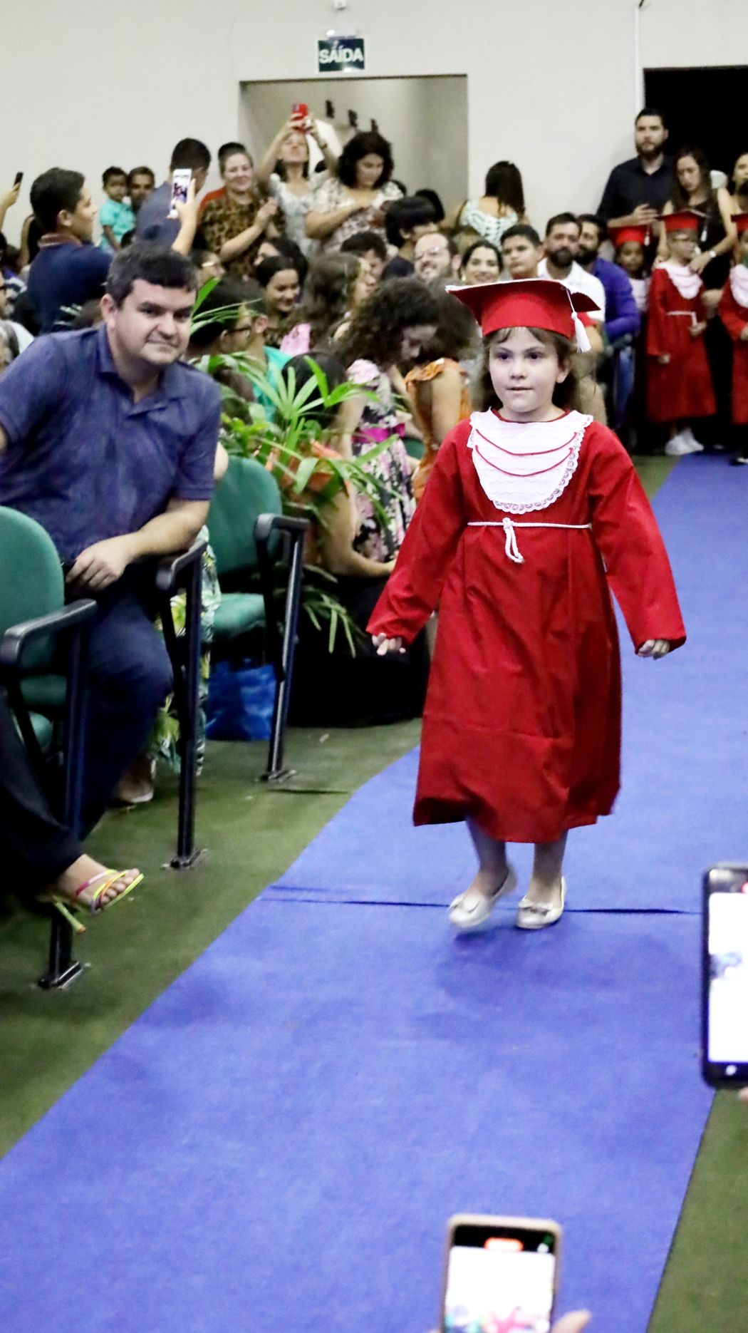 Na noite desta quinta-feira, 12 de dezembro, a Creche Betinho foi palco de uma emocionante cerimônia de formatura. O evento, que reuniu mais de 100 formandos, contou com a presença de familiares, amigos, professores e autoridades locais, incluindo a Secretária de Educação, Marcilene Rodrigues.