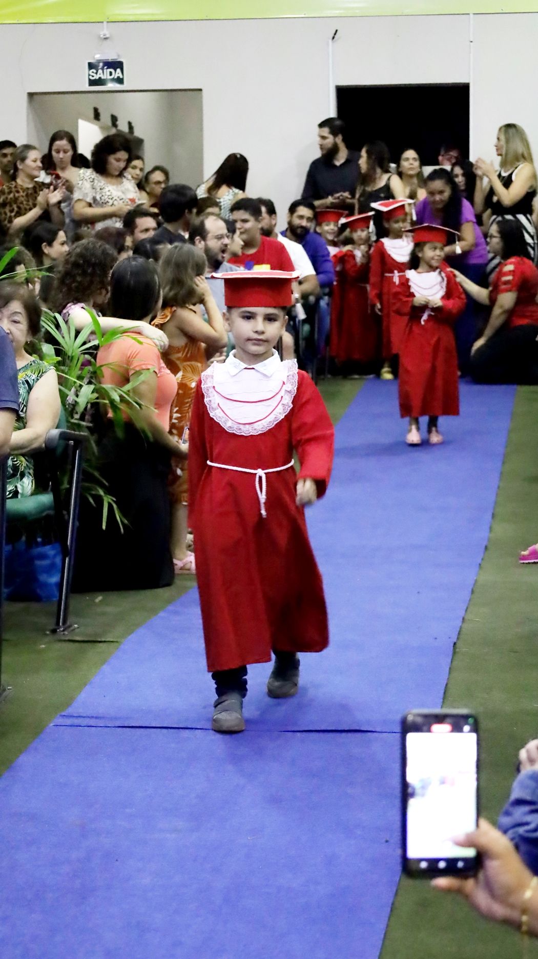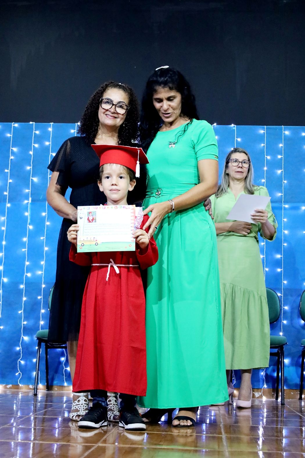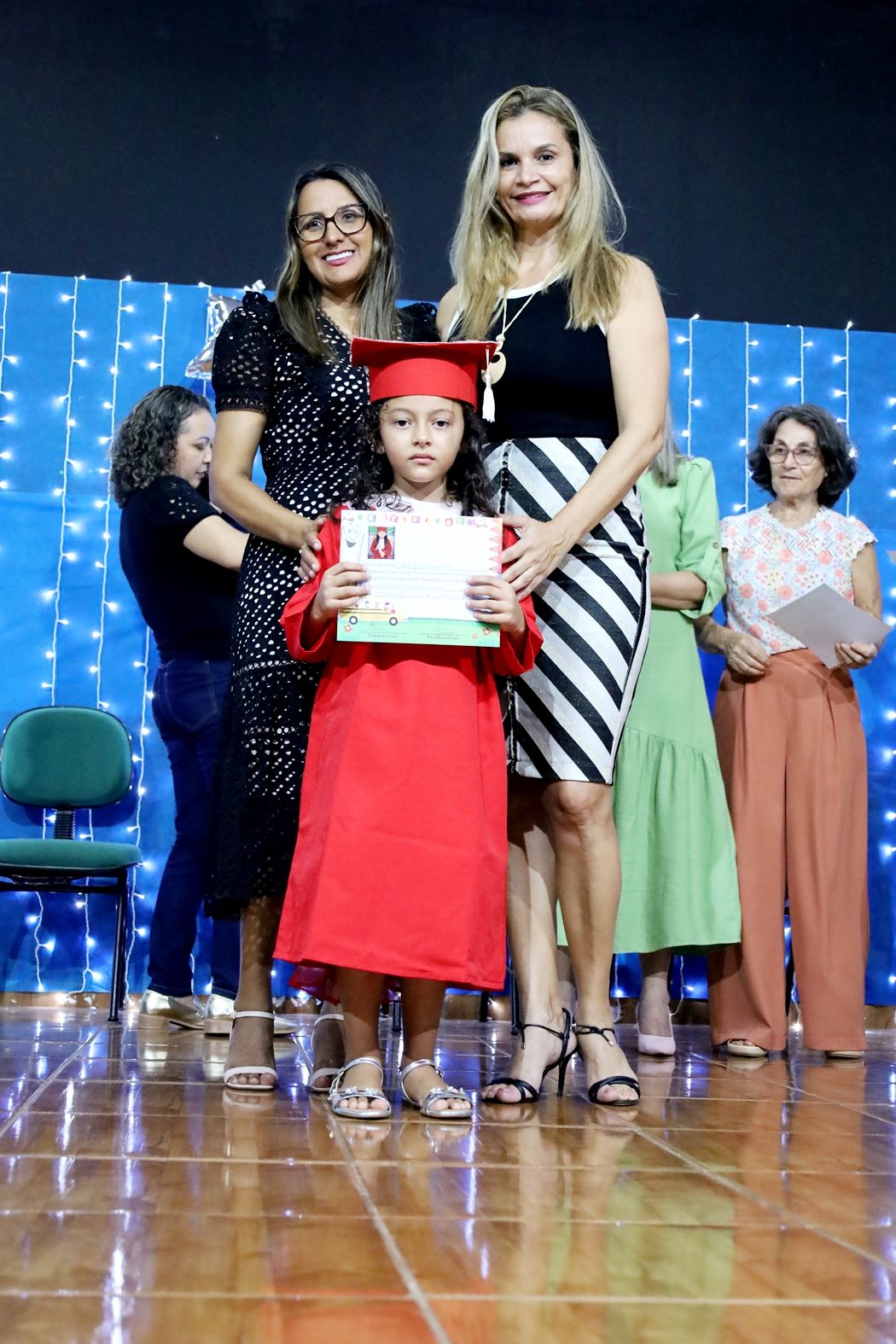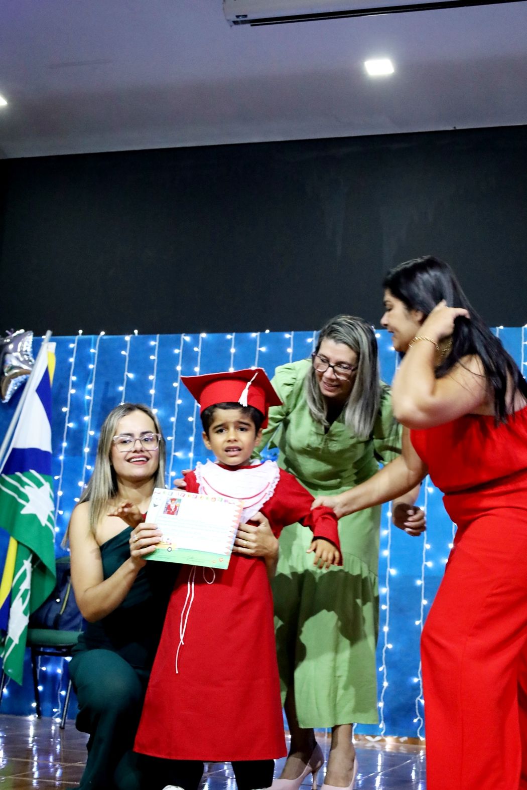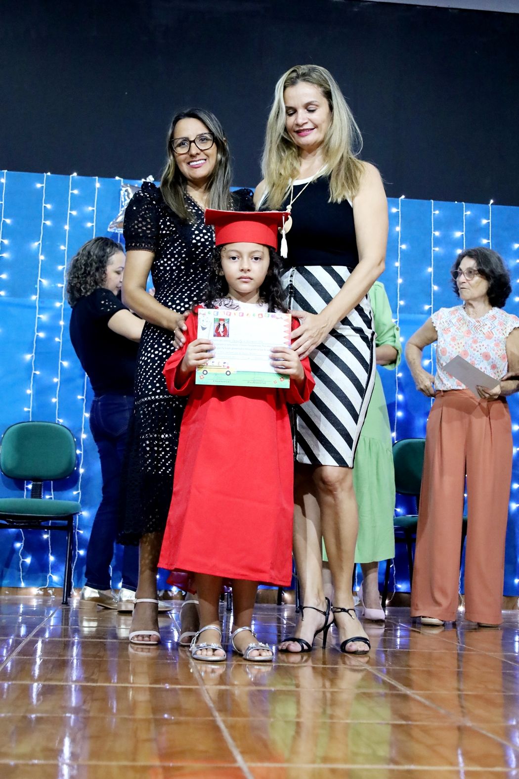 Na noite desta quinta-feira, 12 de dezembro, a Creche Betinho foi palco de uma emocionante cerimônia de formatura. O evento, que reuniu mais de 100 formandos, contou com a presença de familiares, amigos, professores e autoridades locais, incluindo a Secretária de Educação, Marcilene Rodrigues.