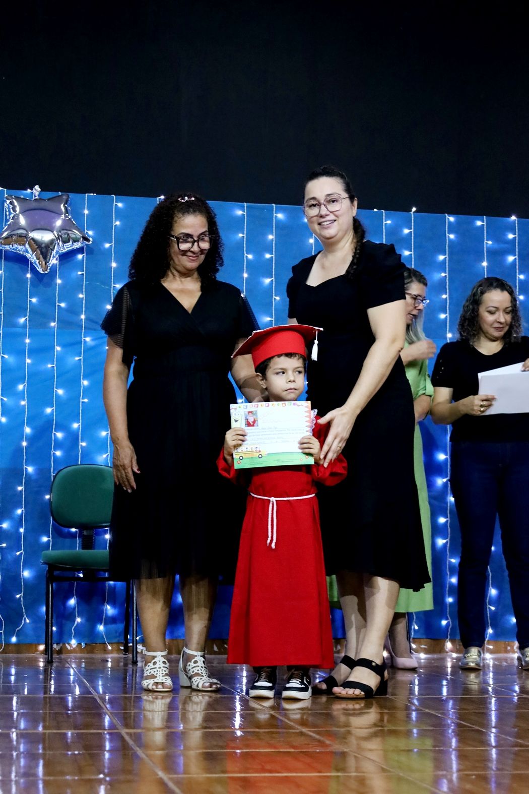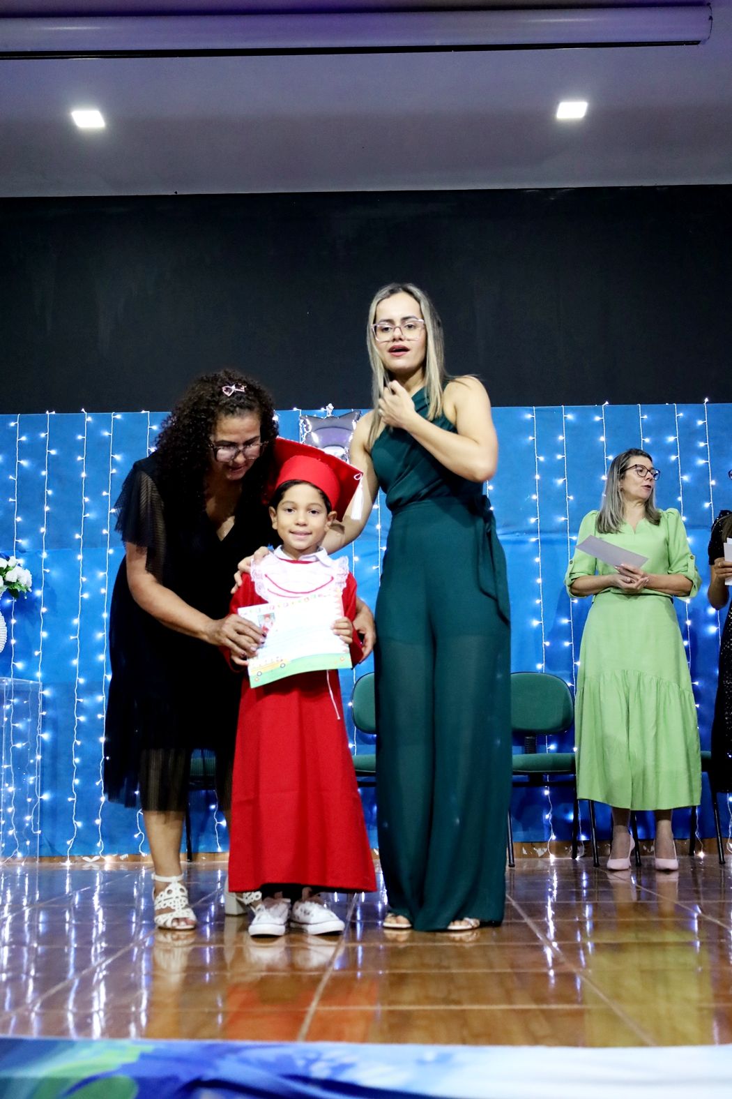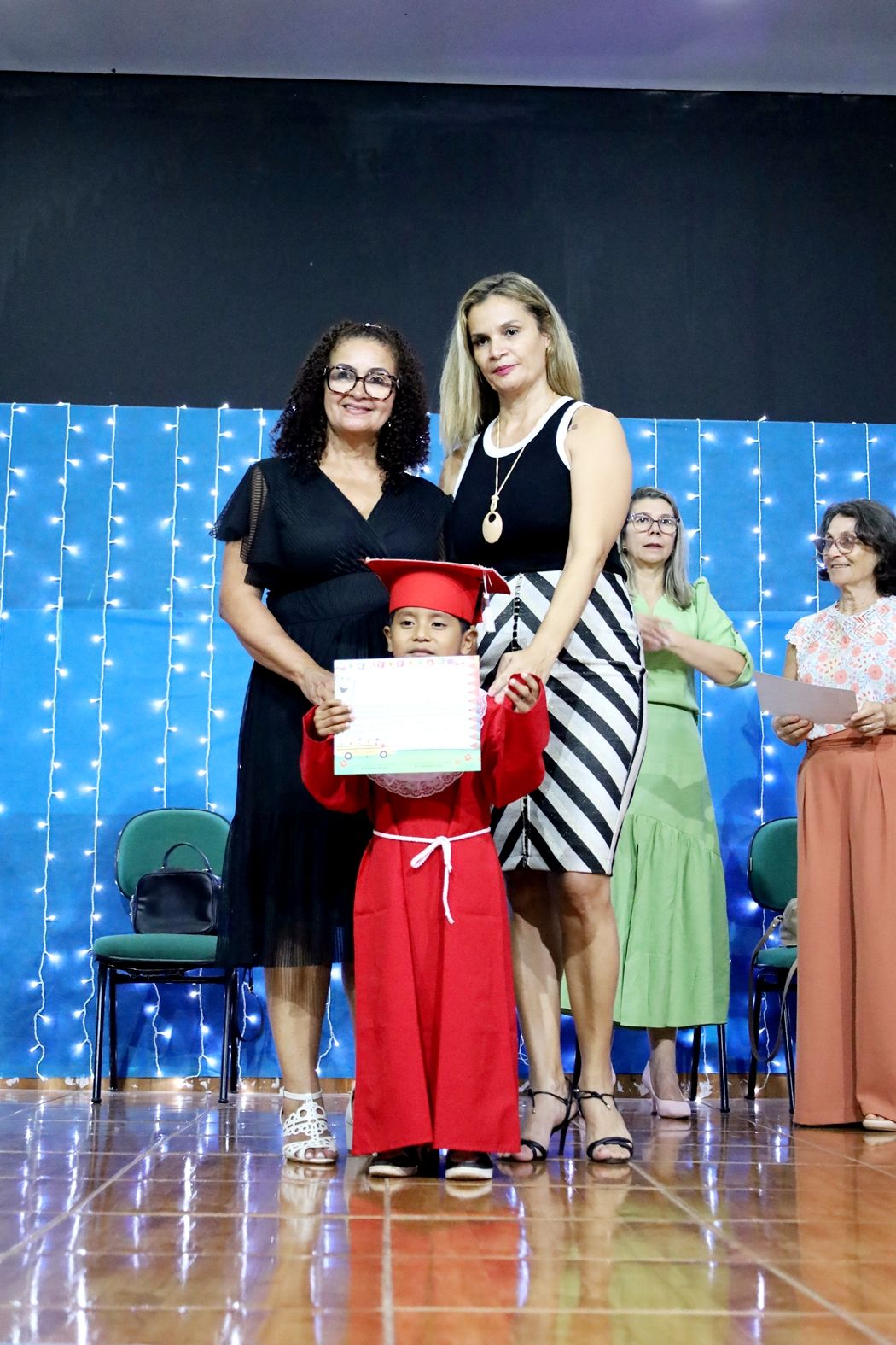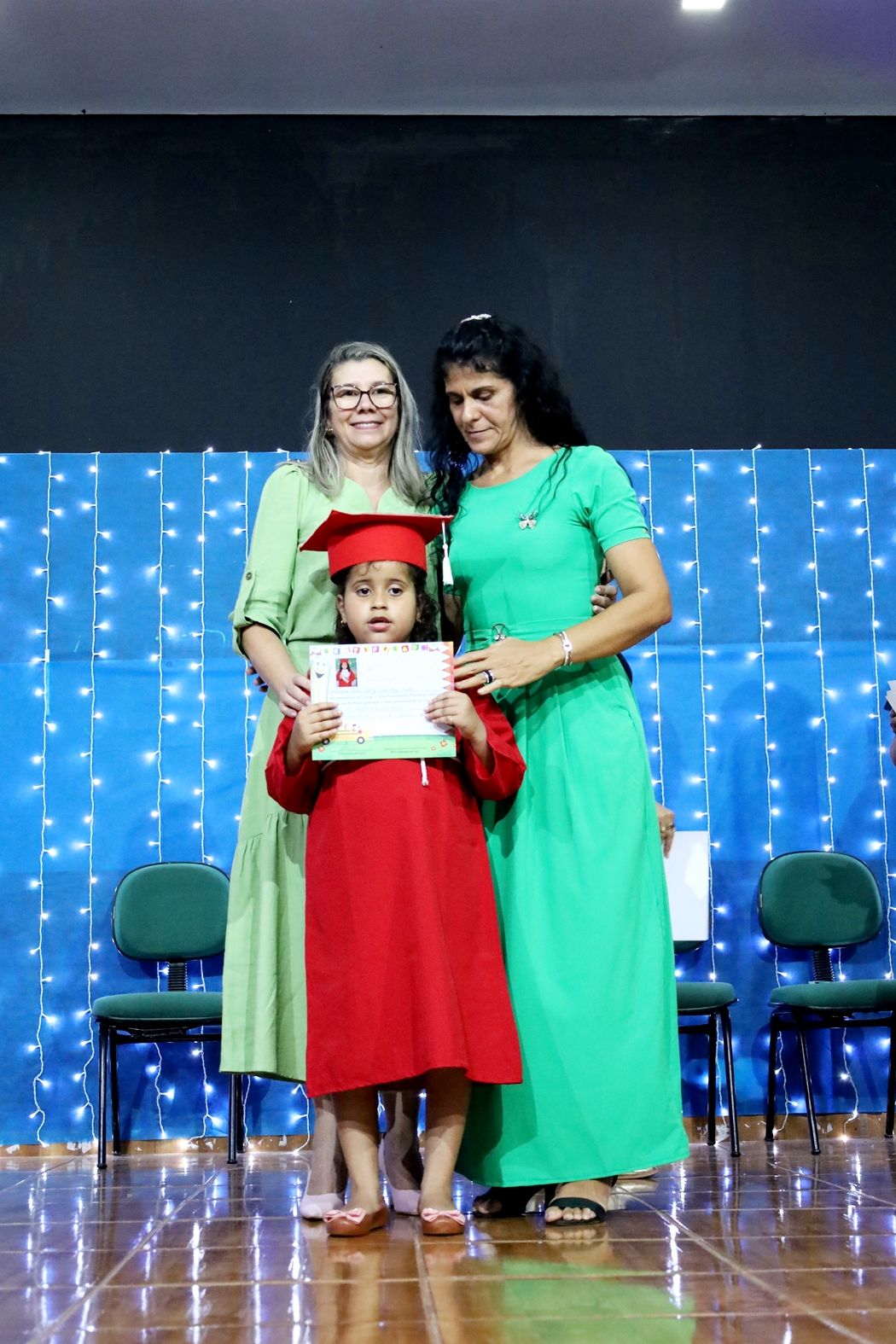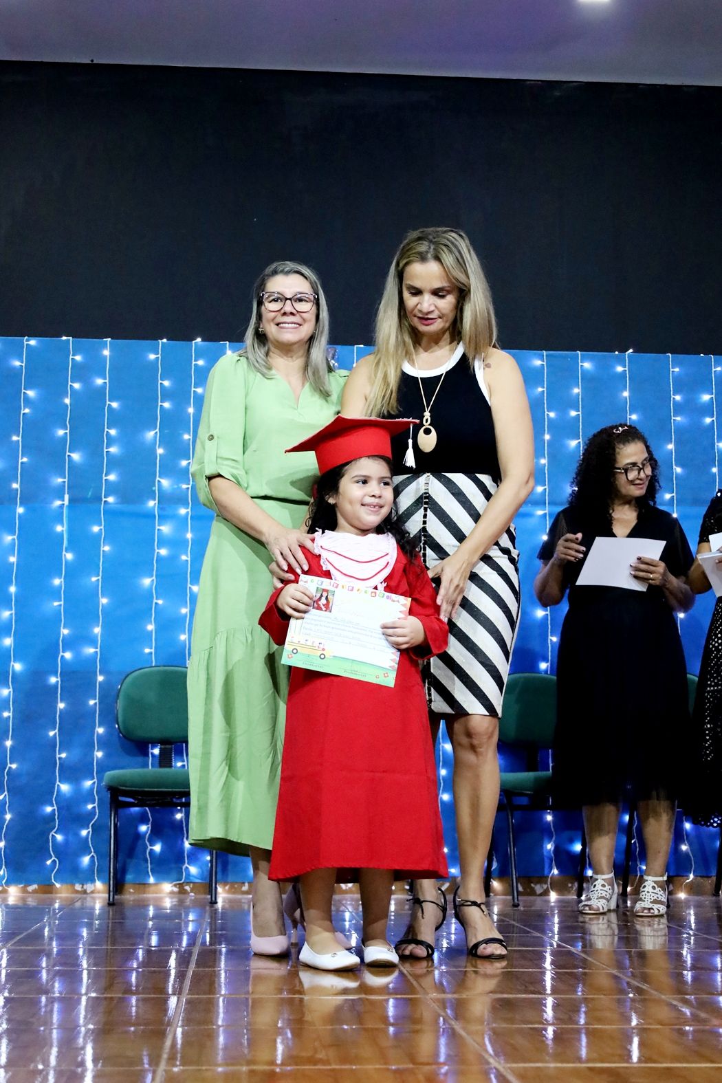 Na noite desta quinta-feira, 12 de dezembro, a Creche Betinho foi palco de uma emocionante cerimônia de formatura. O evento, que reuniu mais de 100 formandos, contou com a presença de familiares, amigos, professores e autoridades locais, incluindo a Secretária de Educação, Marcilene Rodrigues.