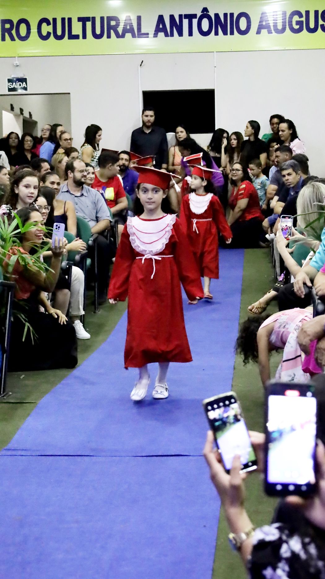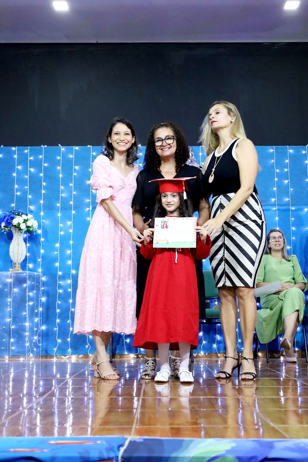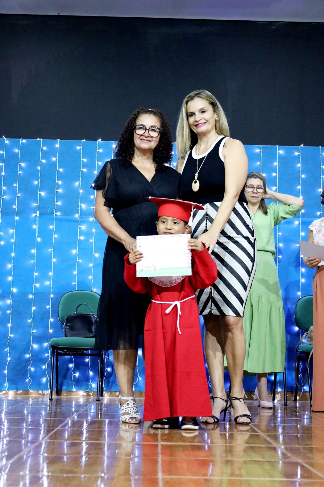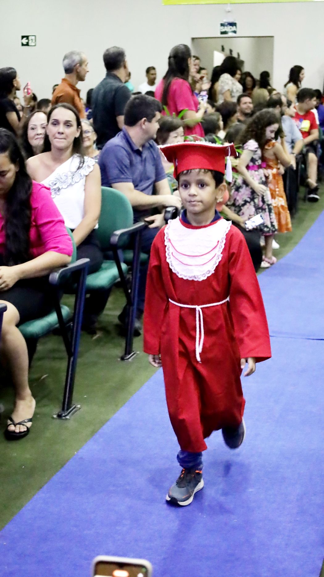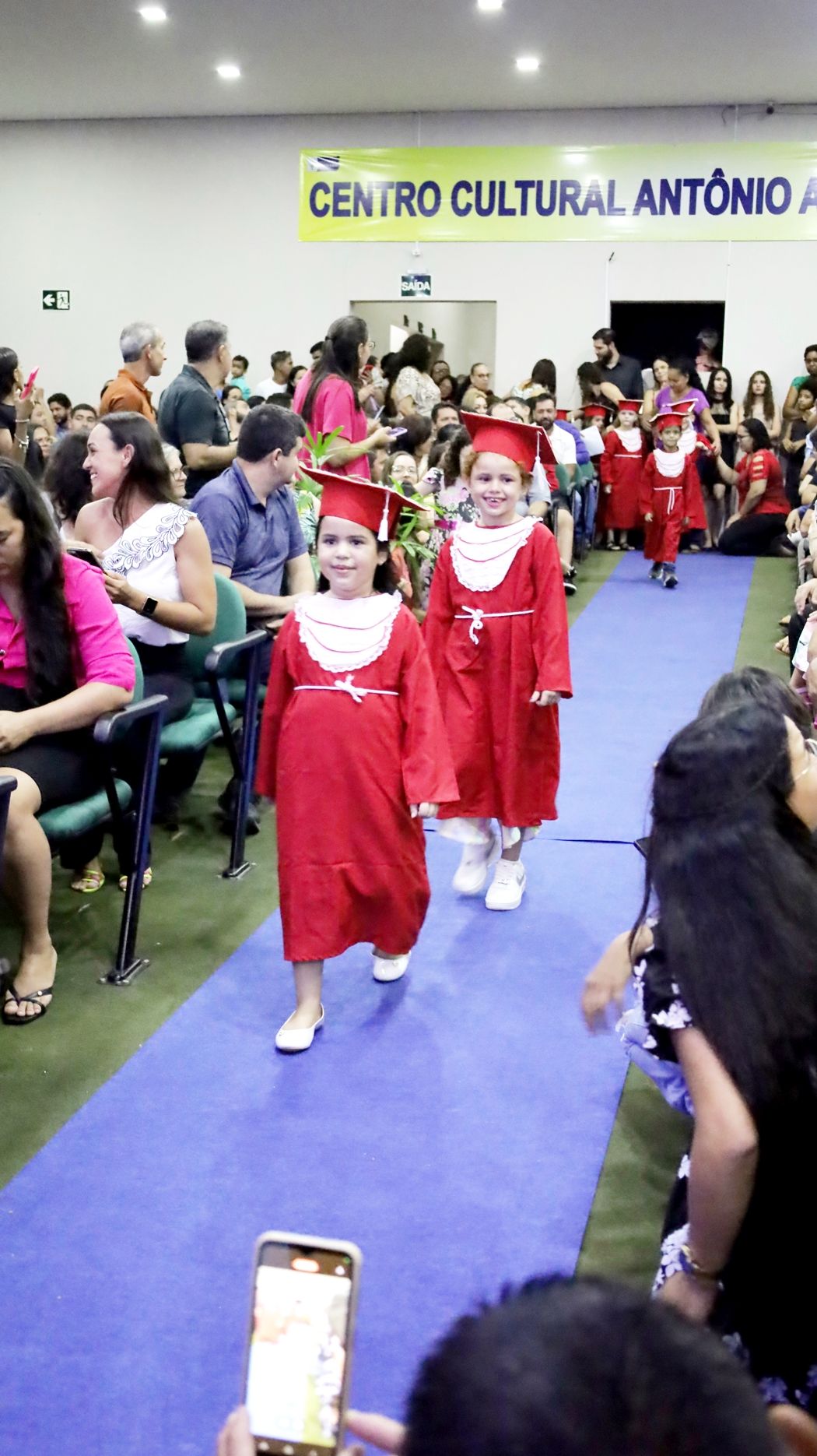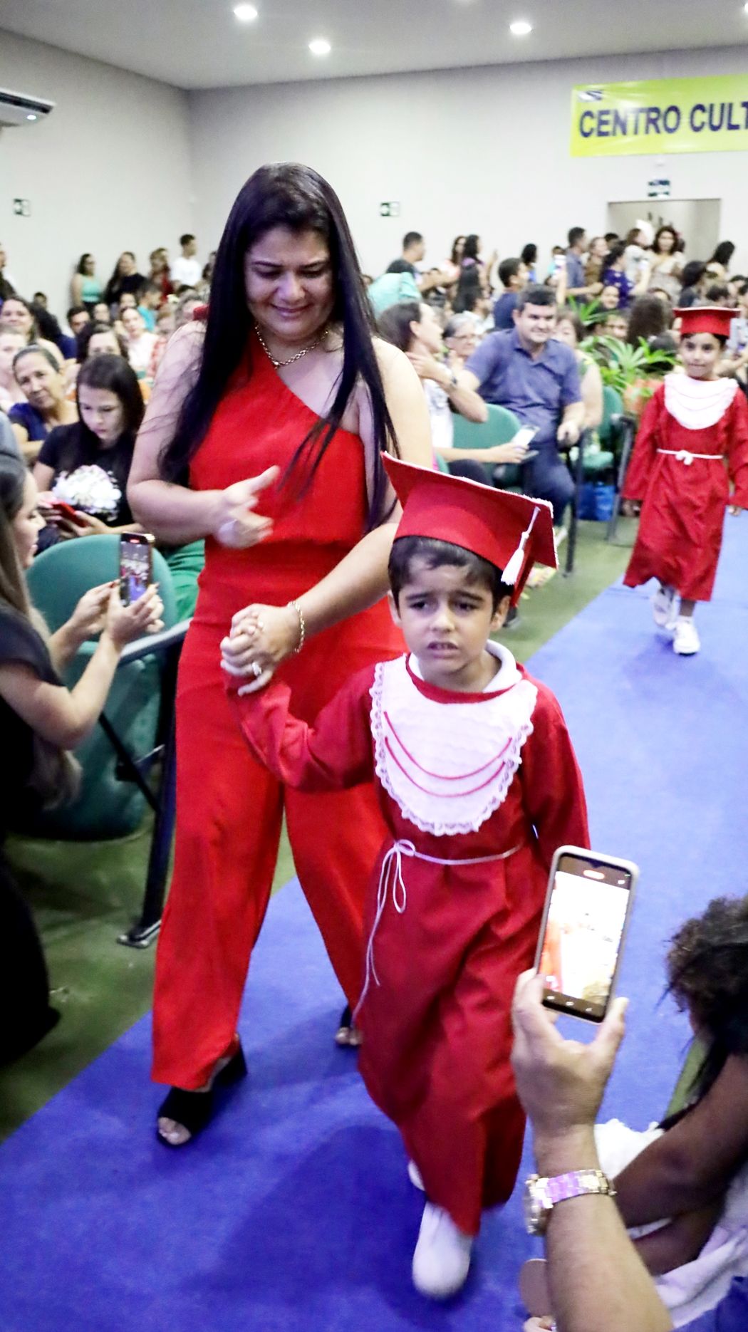 Na noite desta quinta-feira, 12 de dezembro, a Creche Betinho foi palco de uma emocionante cerimônia de formatura. O evento, que reuniu mais de 100 formandos, contou com a presença de familiares, amigos, professores e autoridades locais, incluindo a Secretária de Educação, Marcilene Rodrigues.