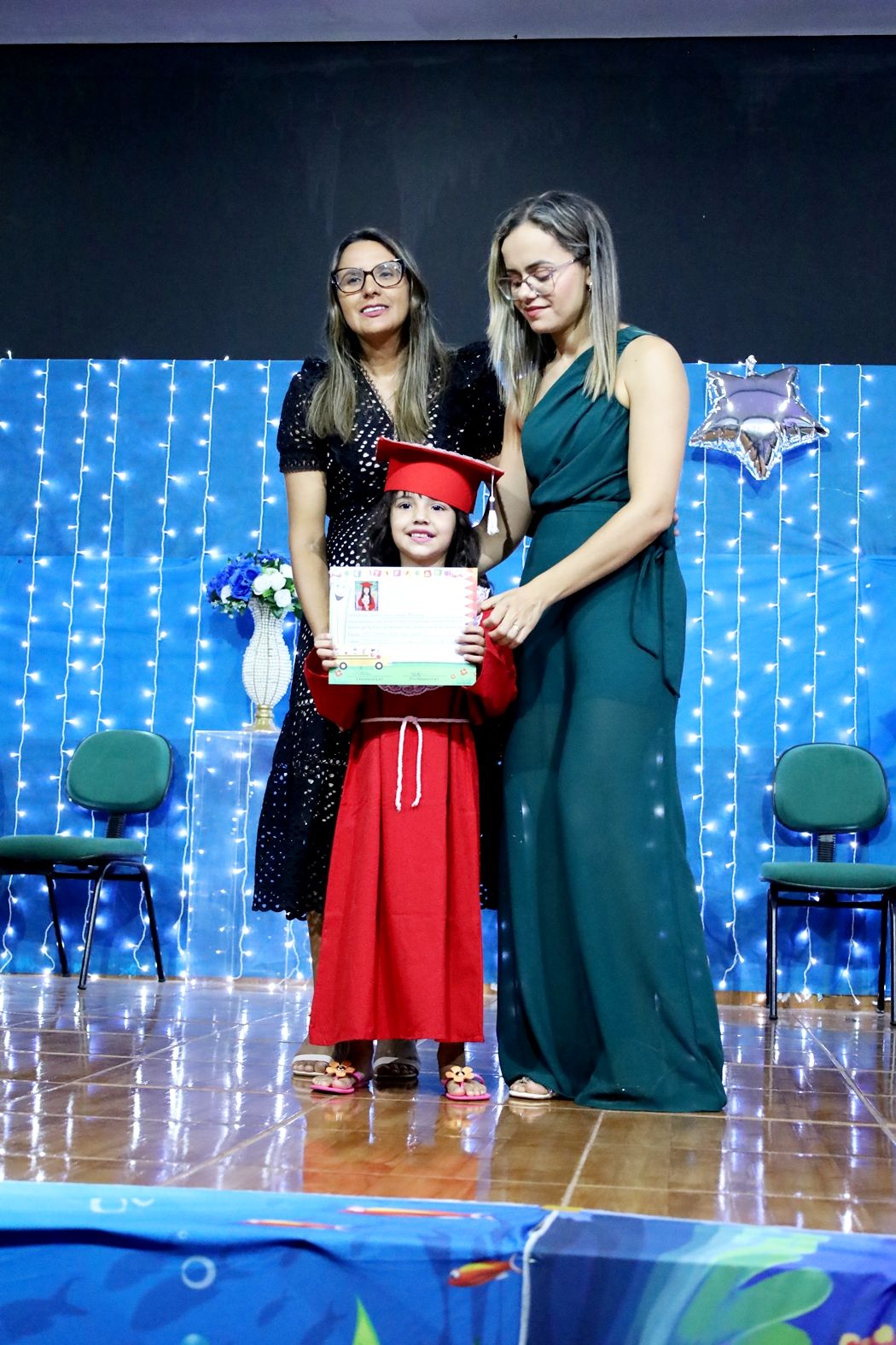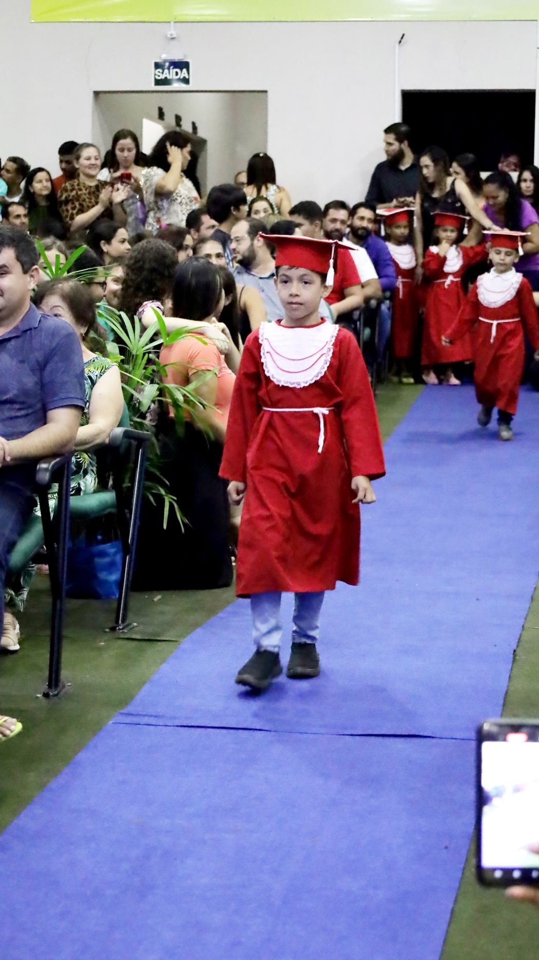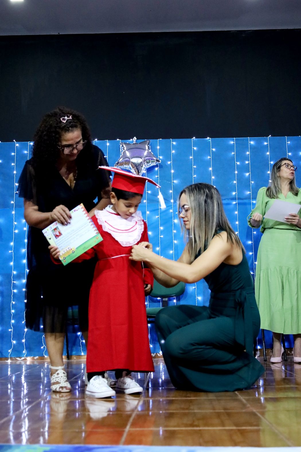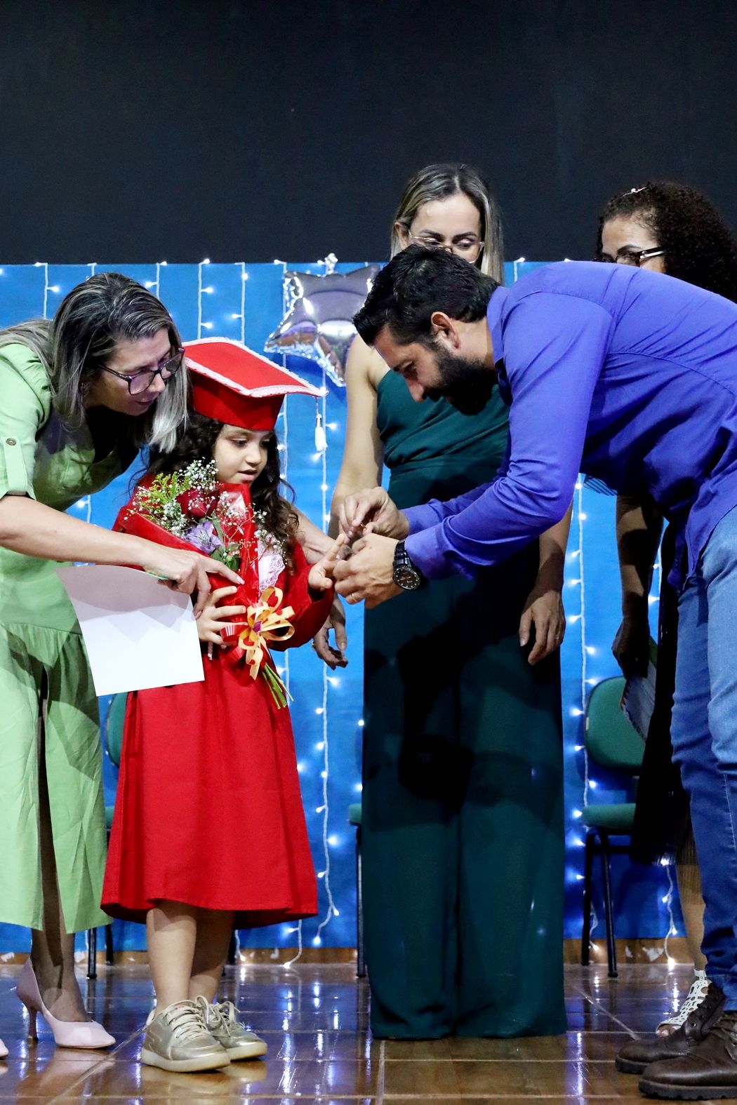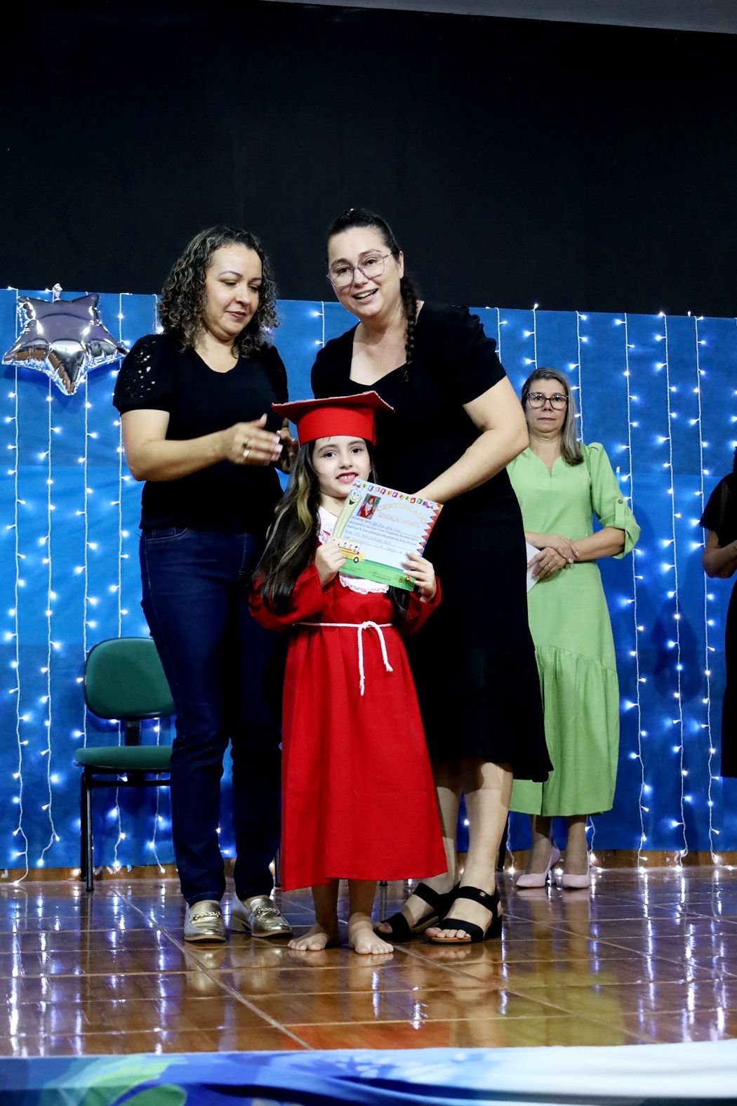 Na noite desta quinta-feira, 12 de dezembro, a Creche Betinho foi palco de uma emocionante cerimônia de formatura. O evento, que reuniu mais de 100 formandos, contou com a presença de familiares, amigos, professores e autoridades locais, incluindo a Secretária de Educação, Marcilene Rodrigues.