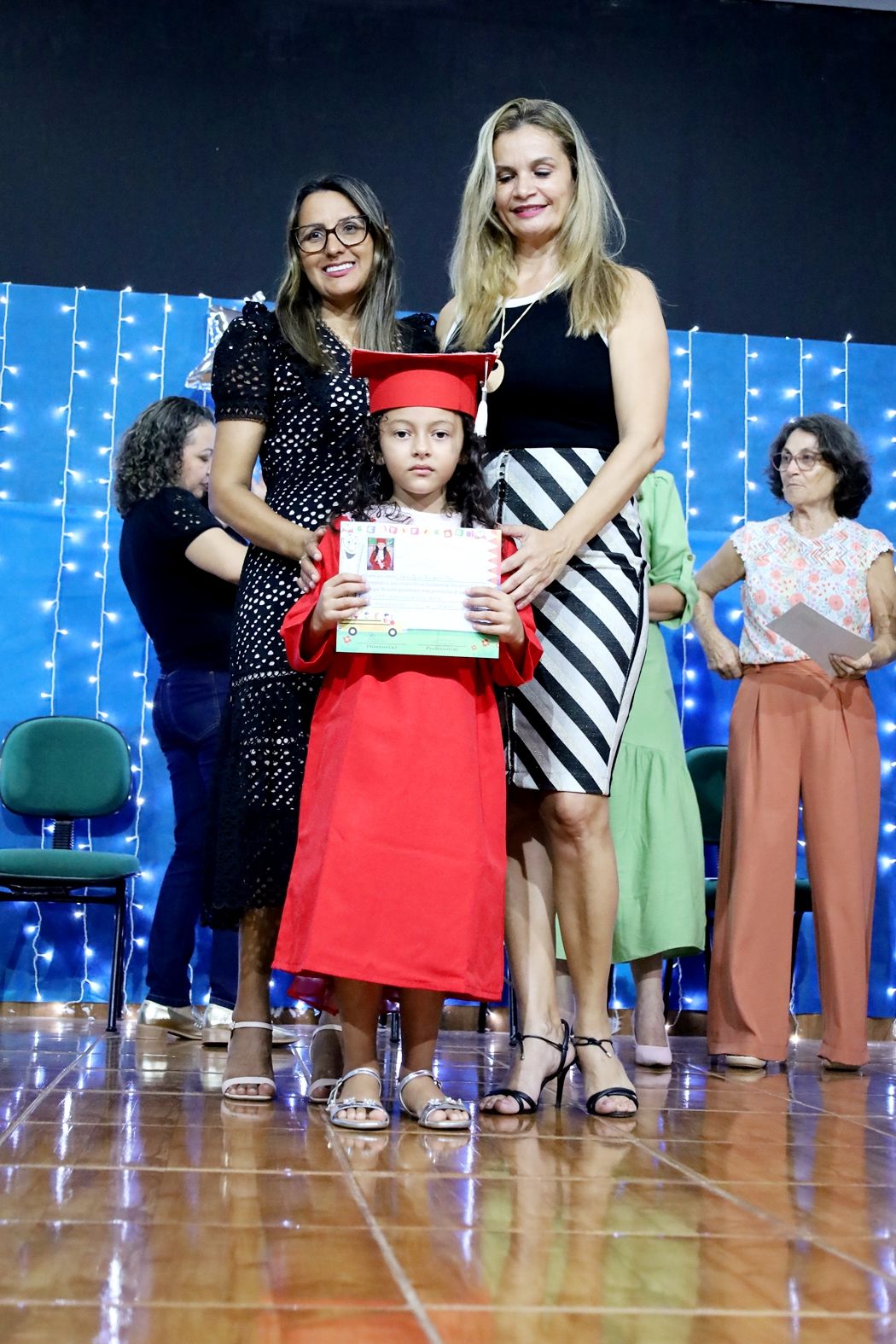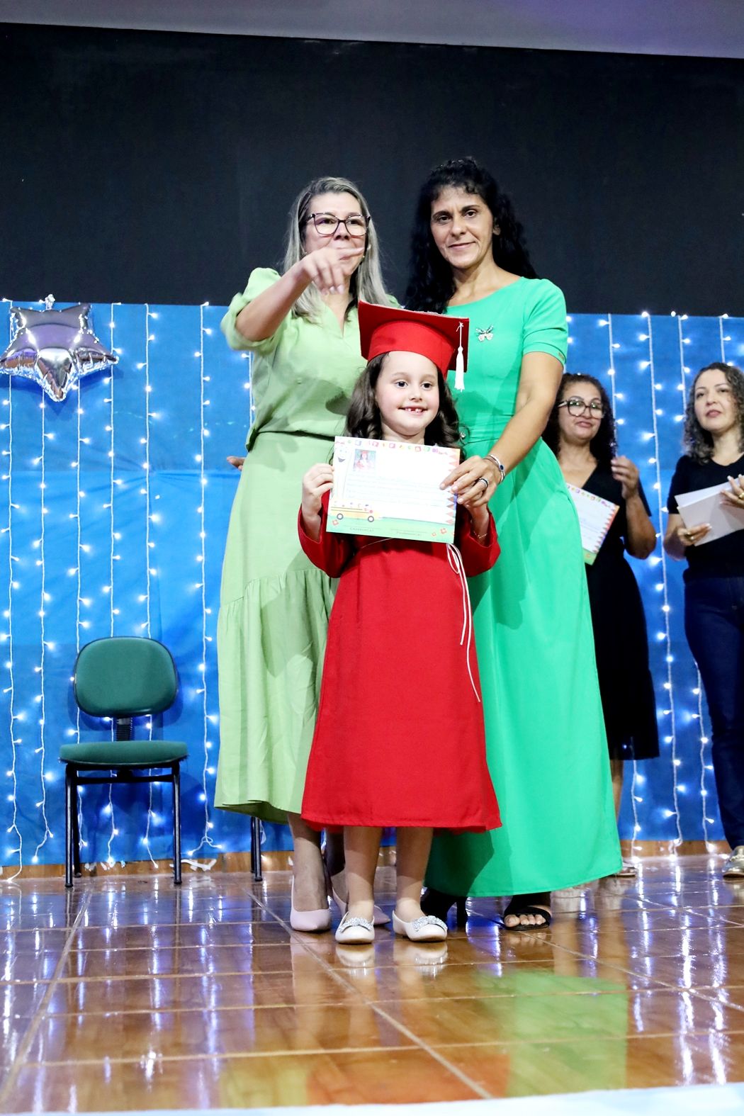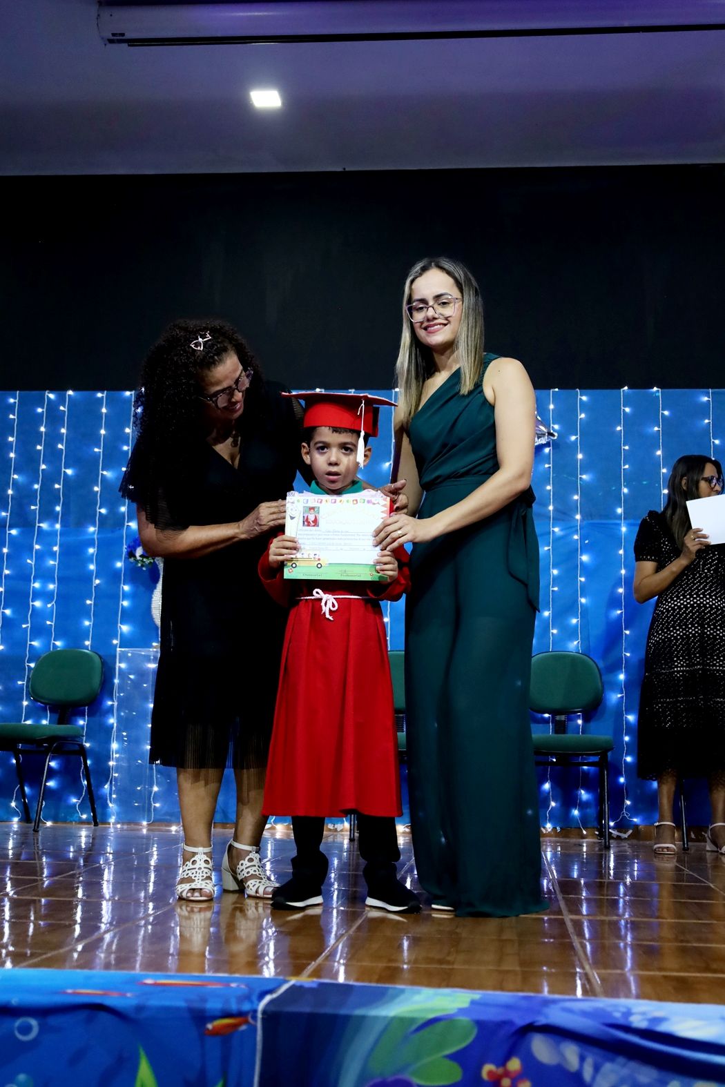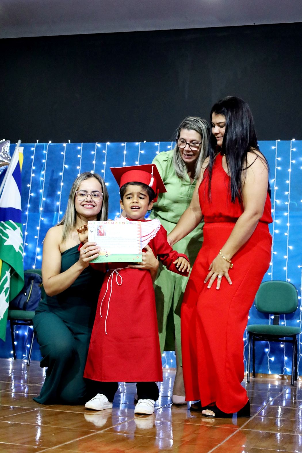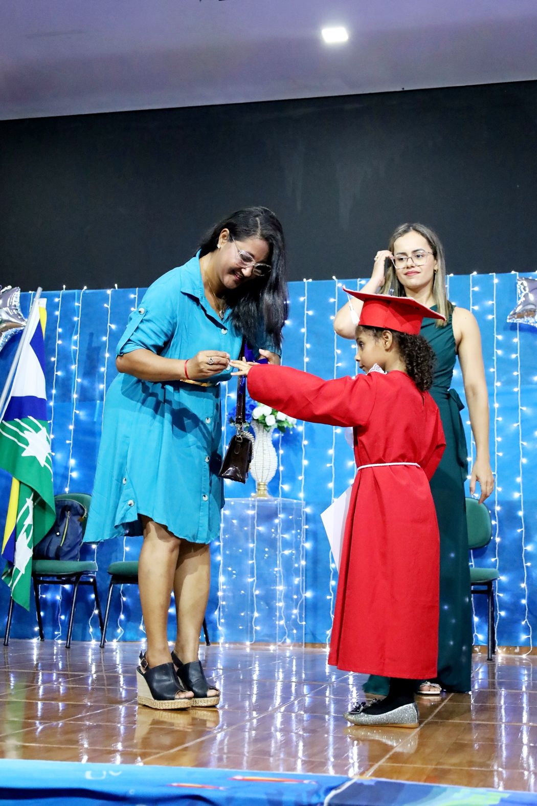 Na noite desta quinta-feira, 12 de dezembro, a Creche Betinho foi palco de uma emocionante cerimônia de formatura. O evento, que reuniu mais de 100 formandos, contou com a presença de familiares, amigos, professores e autoridades locais, incluindo a Secretária de Educação, Marcilene Rodrigues.