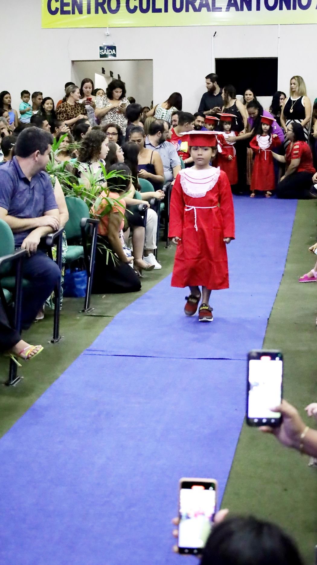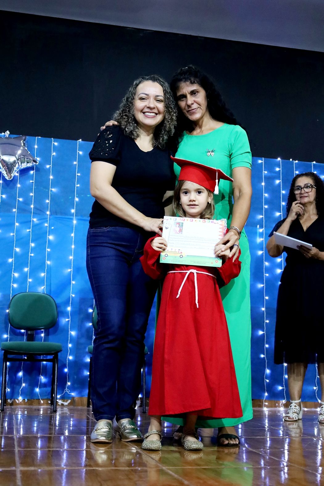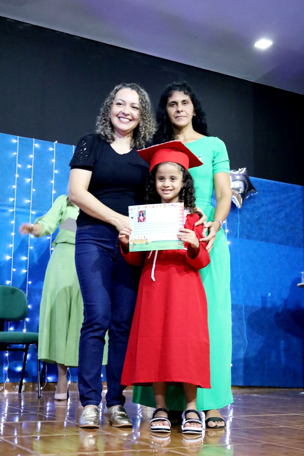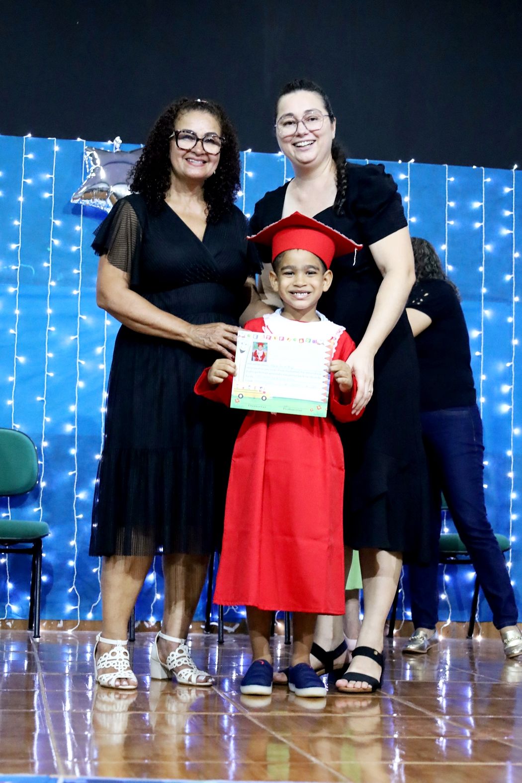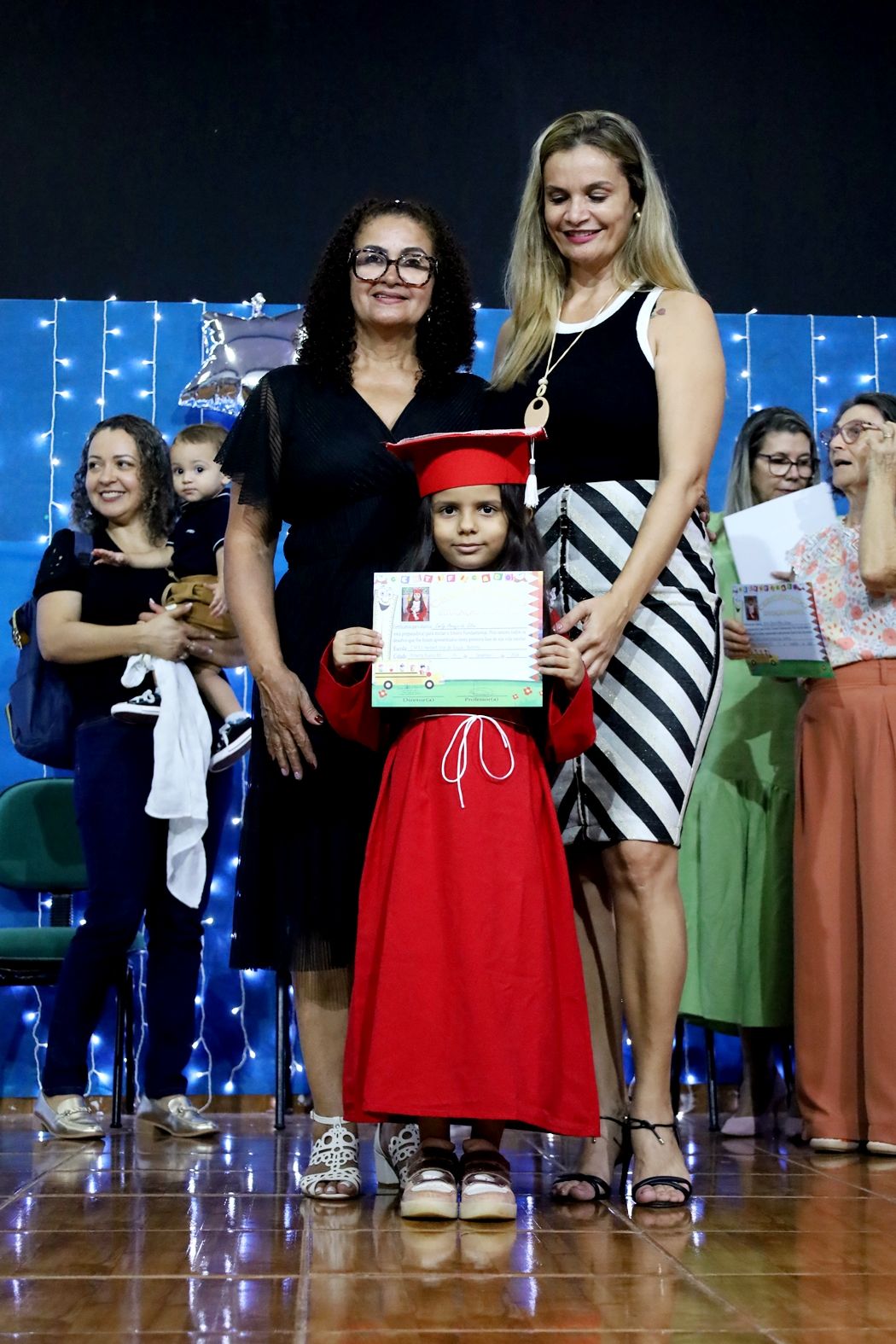 Na noite desta quinta-feira, 12 de dezembro, a Creche Betinho foi palco de uma emocionante cerimônia de formatura. O evento, que reuniu mais de 100 formandos, contou com a presença de familiares, amigos, professores e autoridades locais, incluindo a Secretária de Educação, Marcilene Rodrigues.