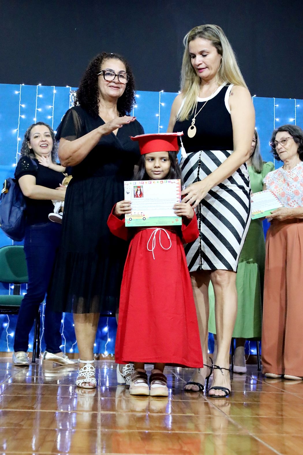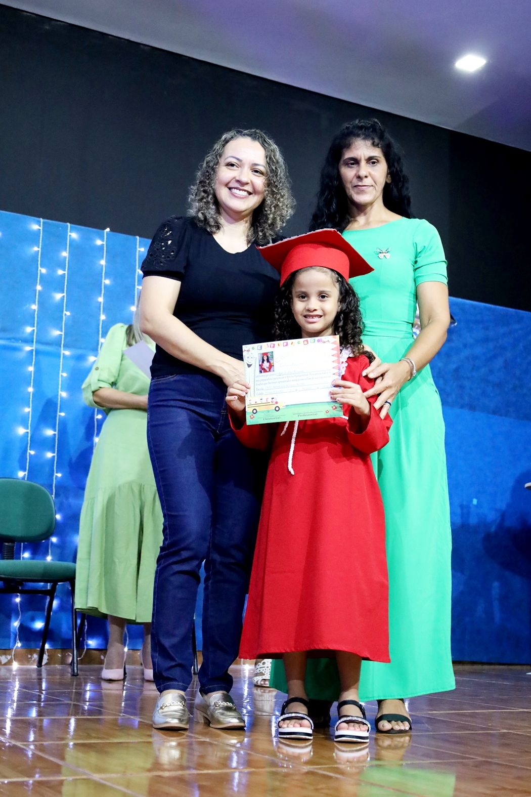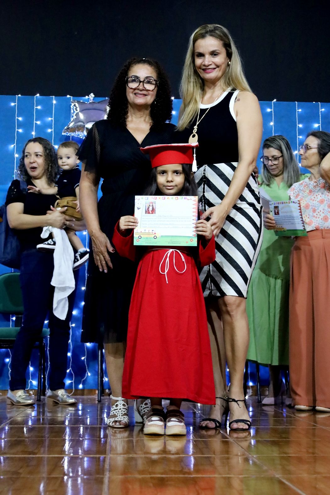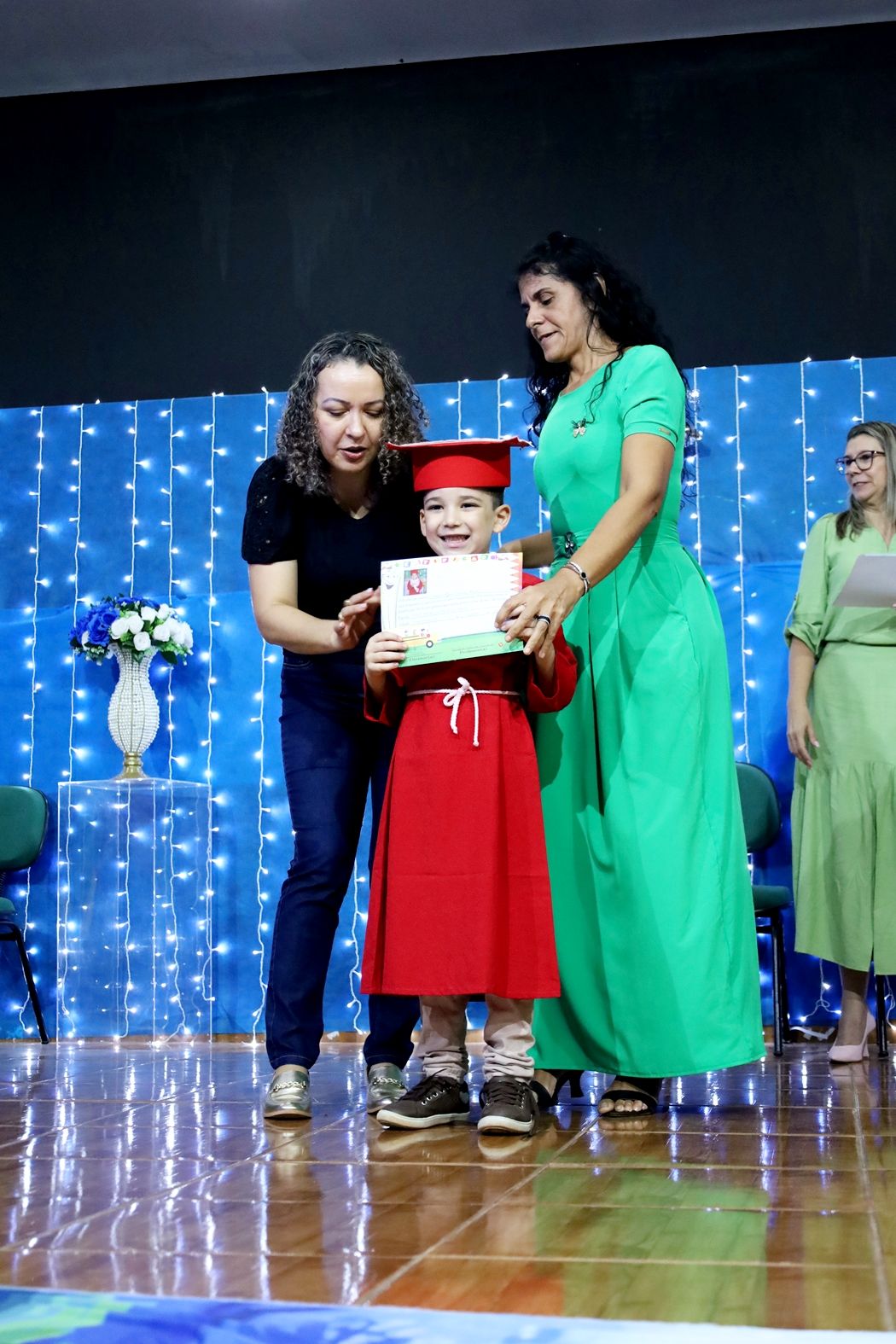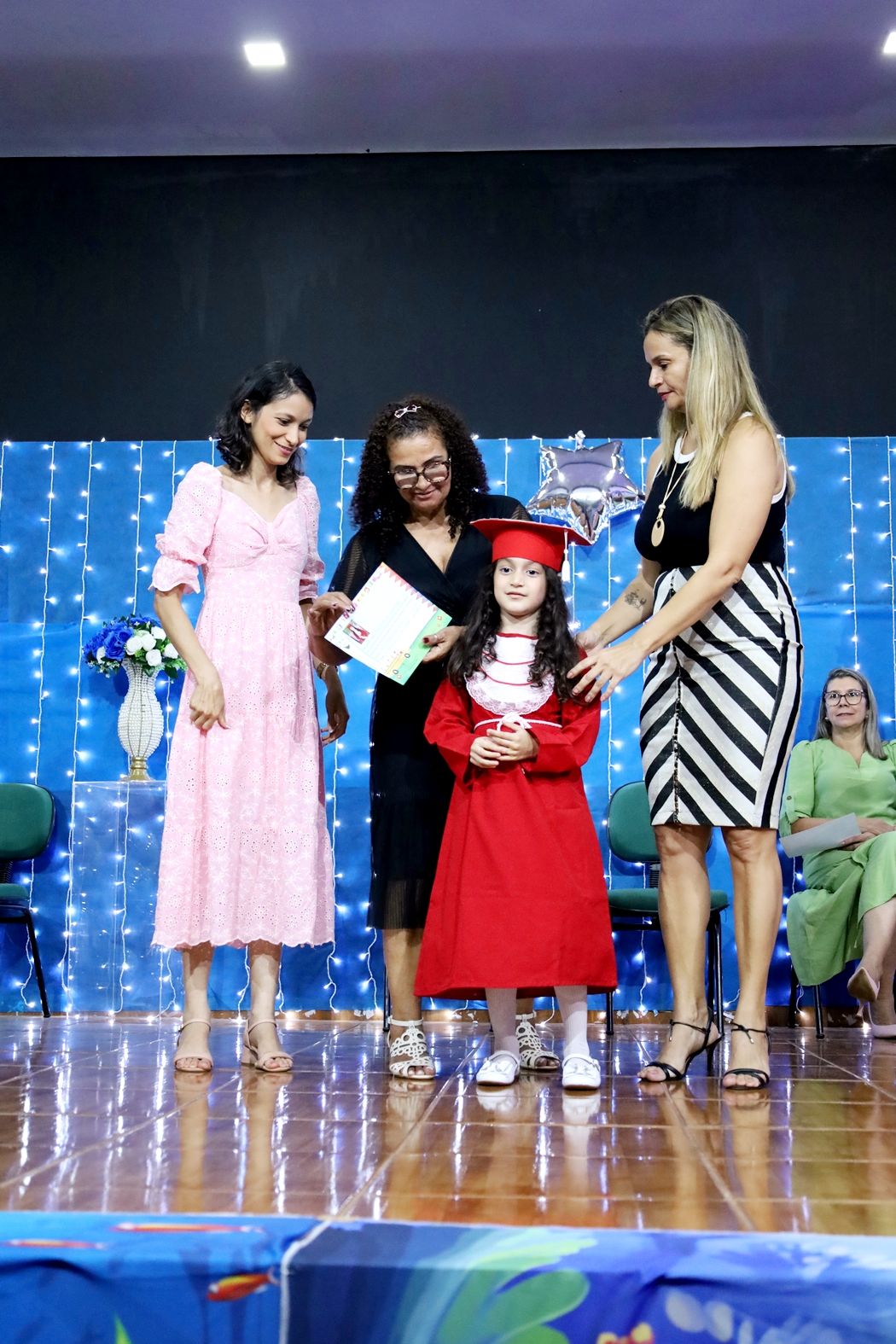 Na noite desta quinta-feira, 12 de dezembro, a Creche Betinho foi palco de uma emocionante cerimônia de formatura. O evento, que reuniu mais de 100 formandos, contou com a presença de familiares, amigos, professores e autoridades locais, incluindo a Secretária de Educação, Marcilene Rodrigues.