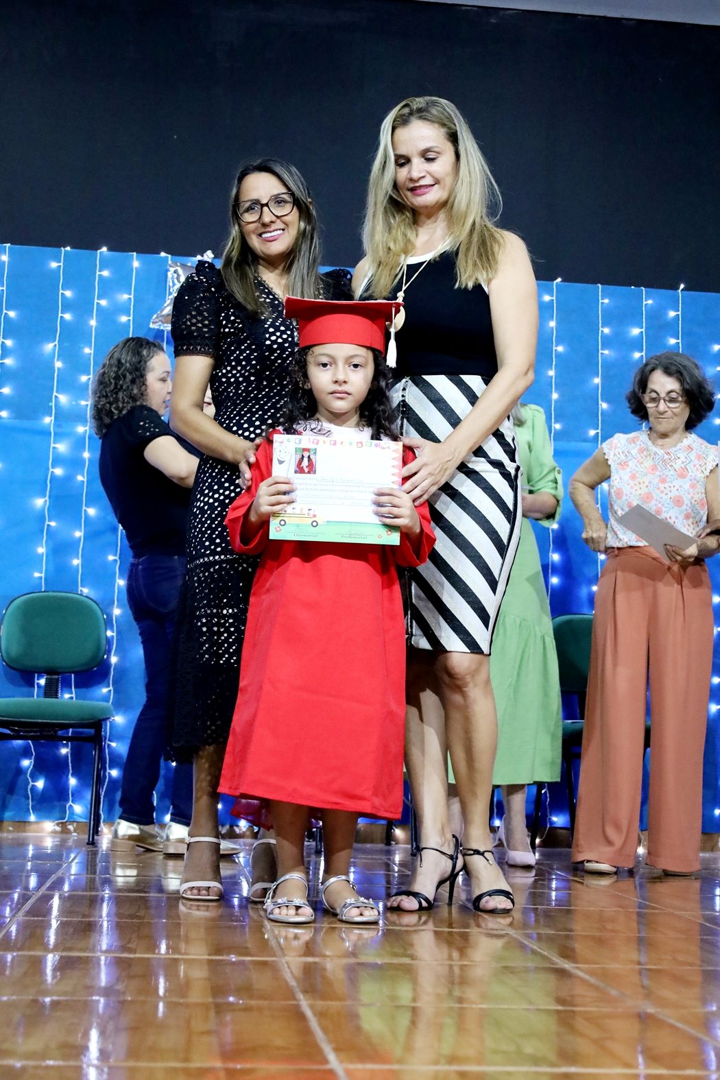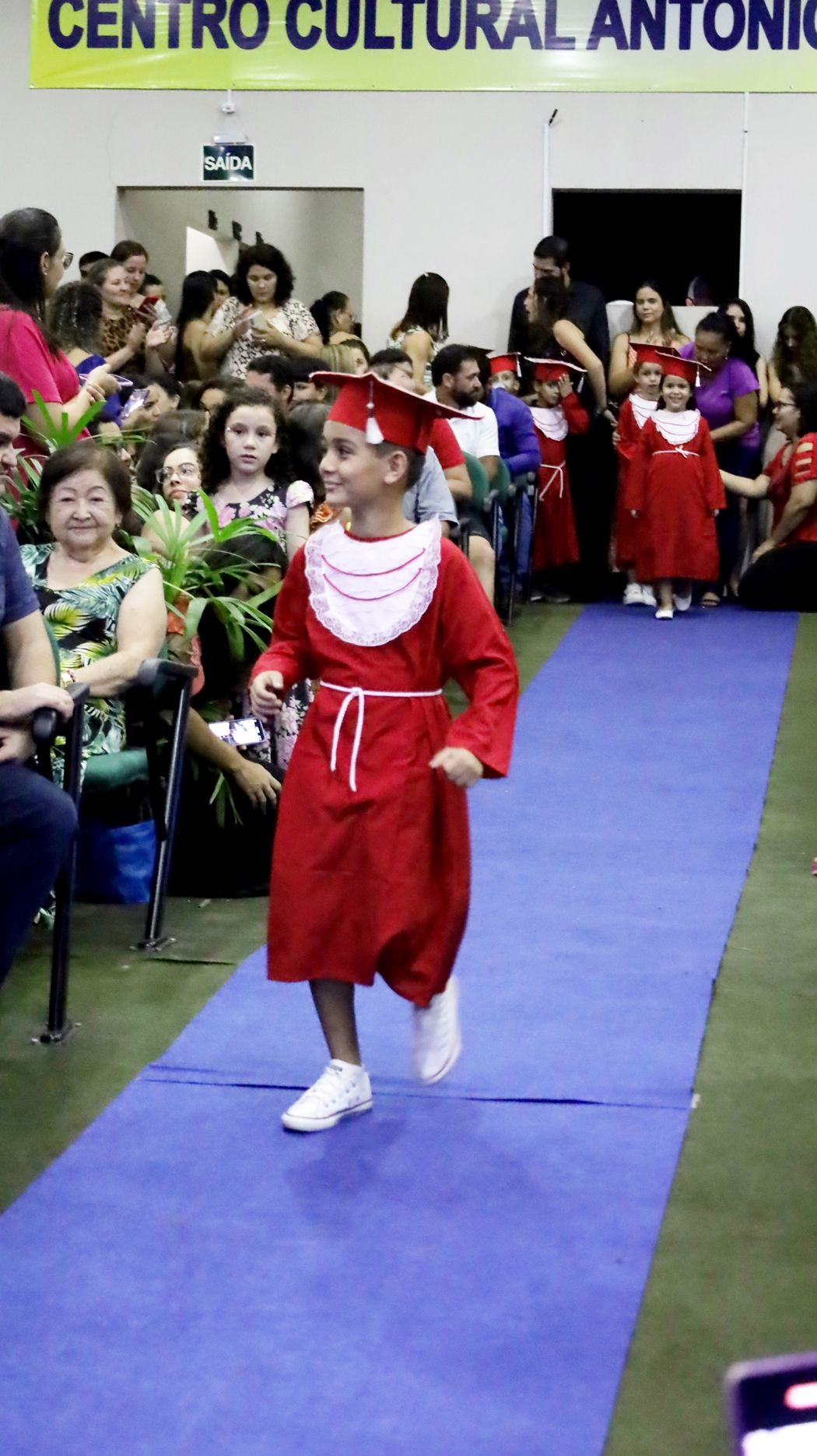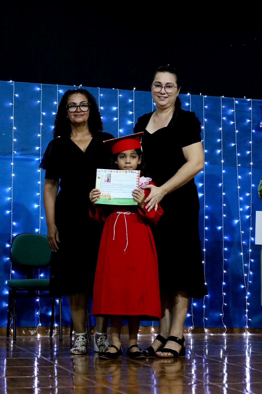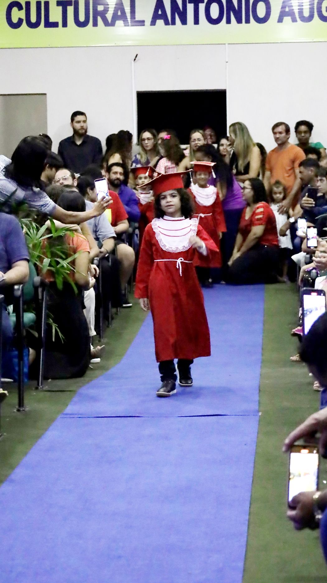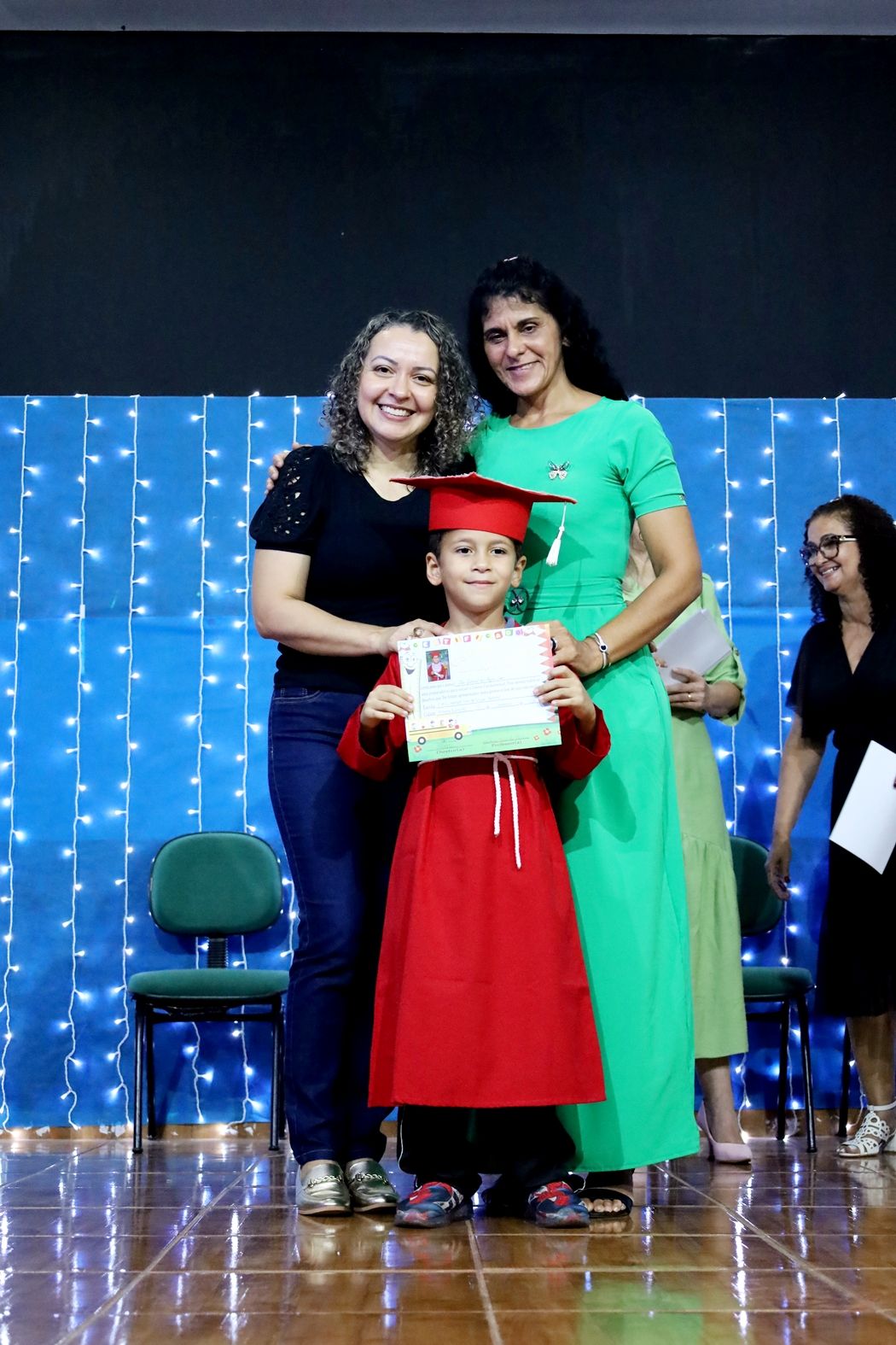 Na noite desta quinta-feira, 12 de dezembro, a Creche Betinho foi palco de uma emocionante cerimônia de formatura. O evento, que reuniu mais de 100 formandos, contou com a presença de familiares, amigos, professores e autoridades locais, incluindo a Secretária de Educação, Marcilene Rodrigues.