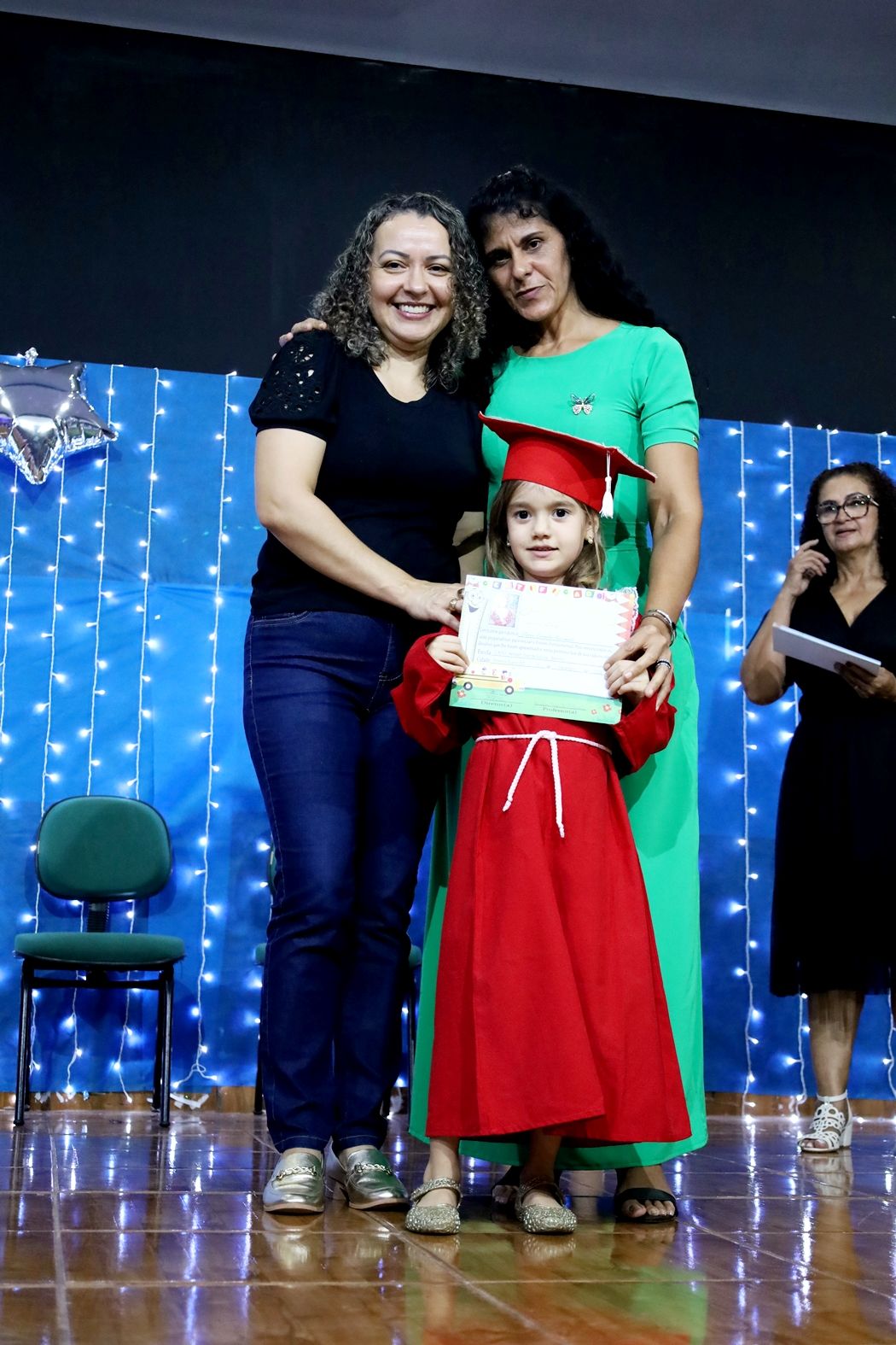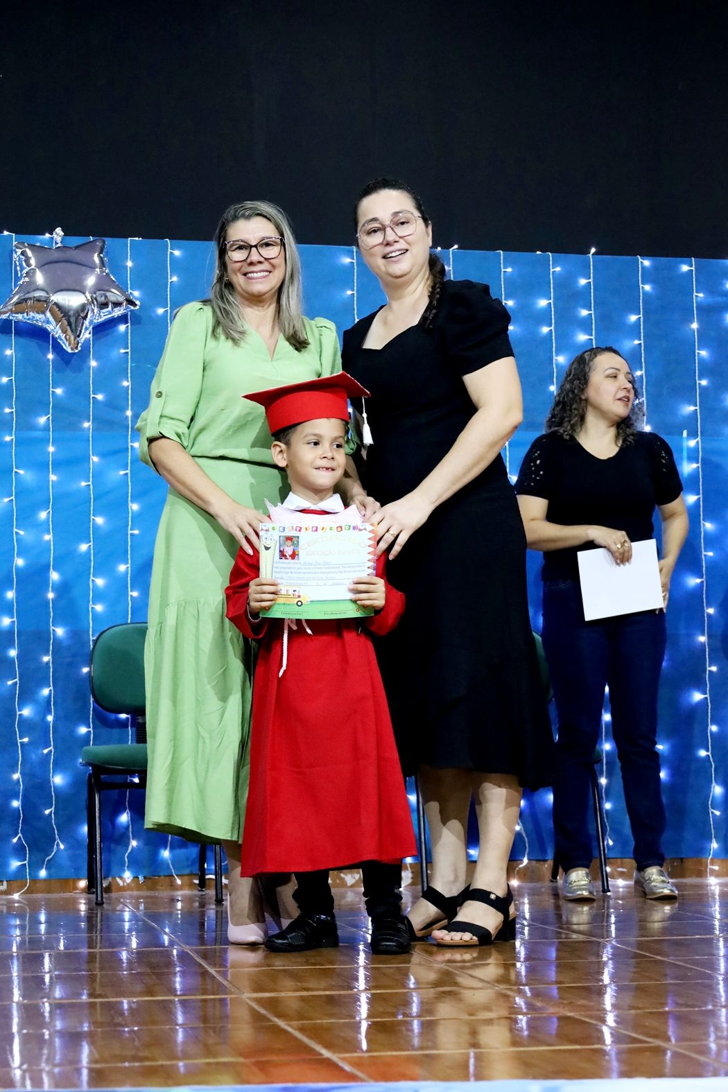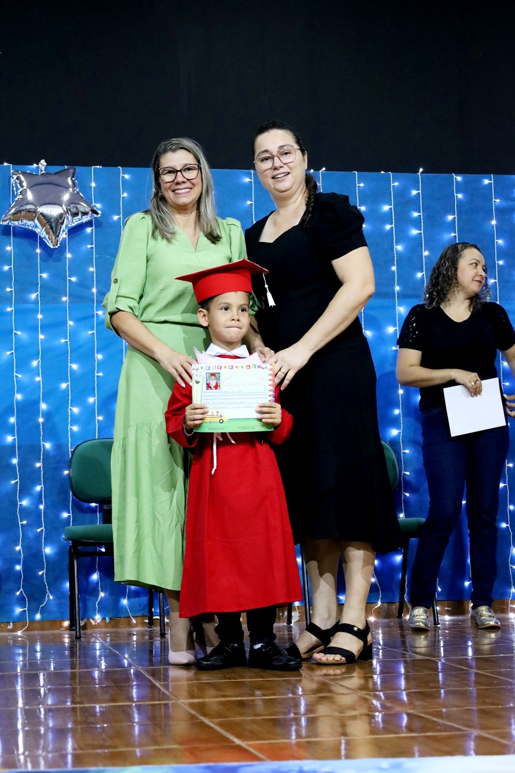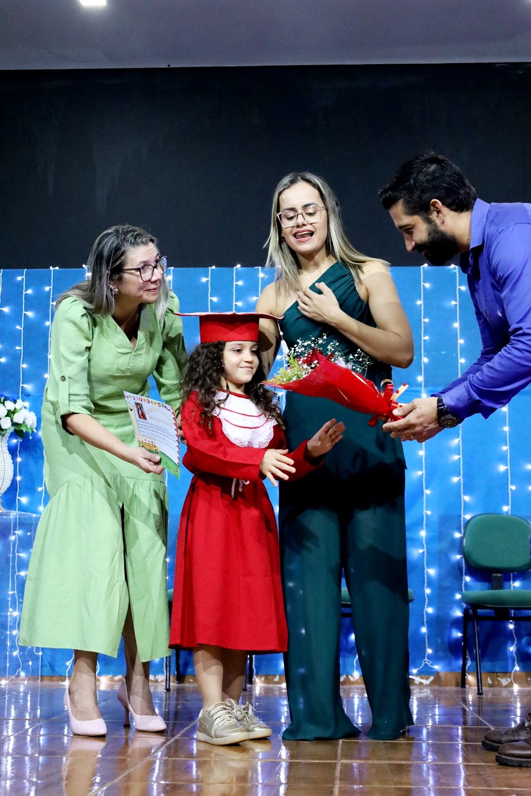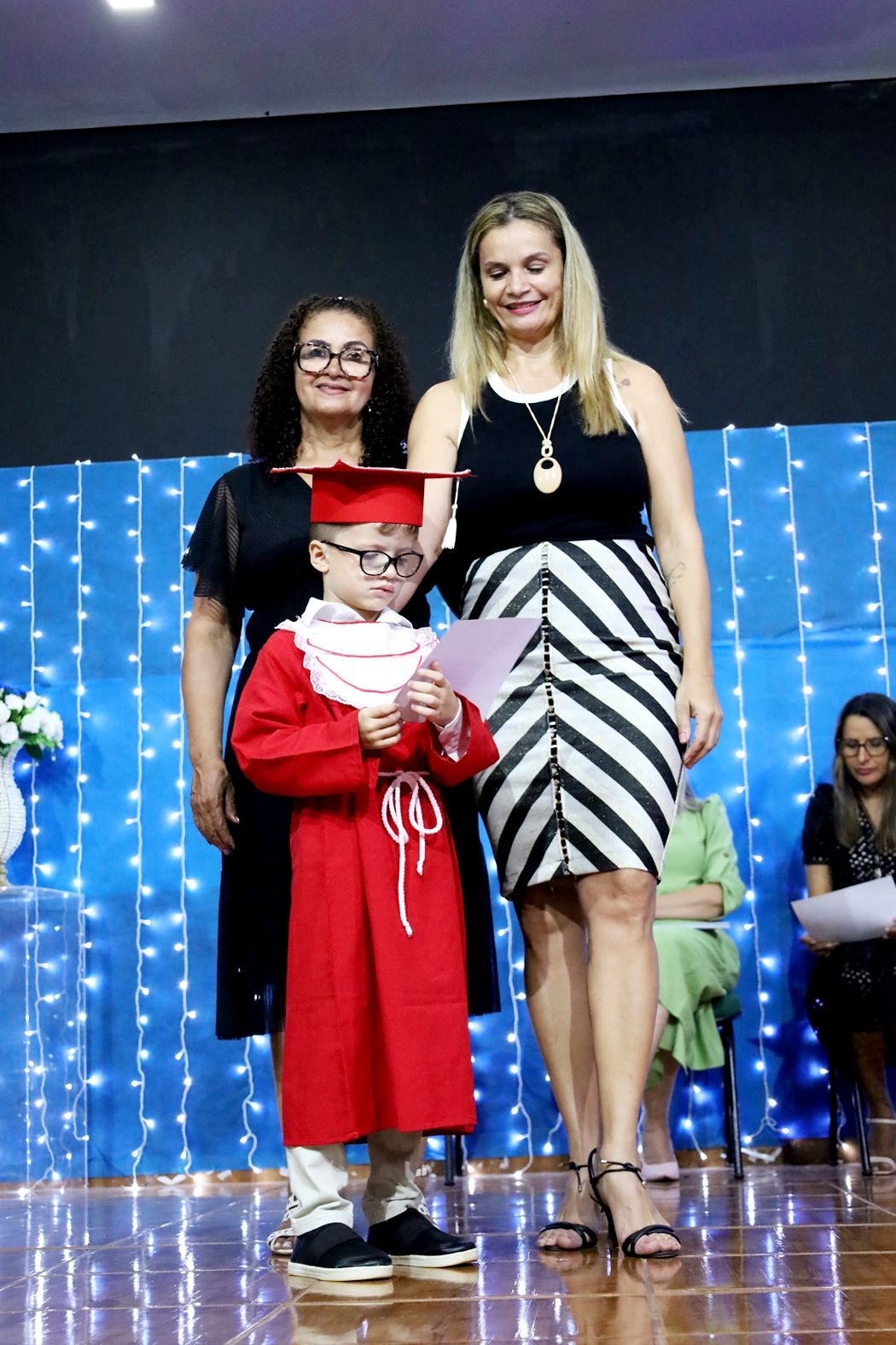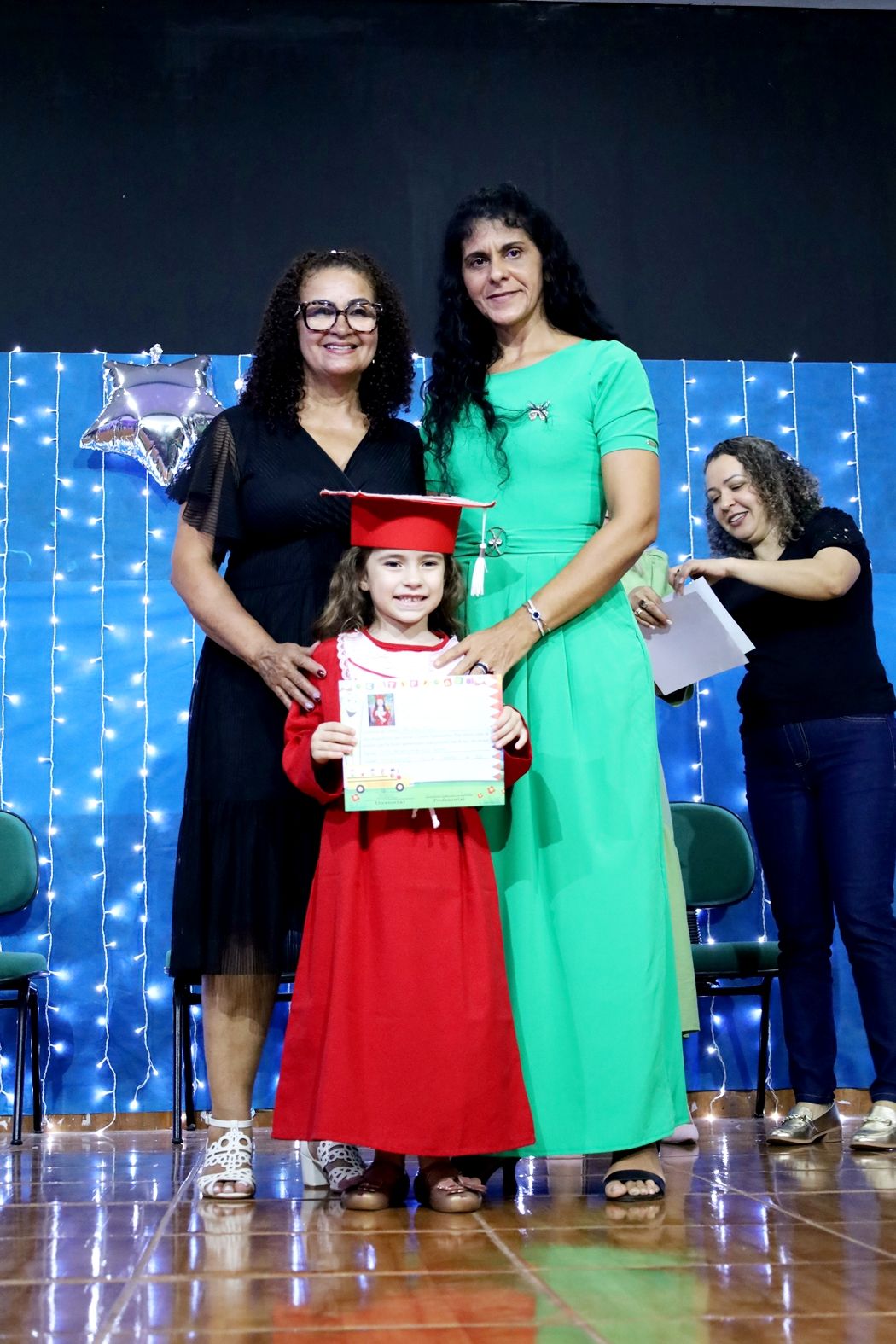 Na noite desta quinta-feira, 12 de dezembro, a Creche Betinho foi palco de uma emocionante cerimônia de formatura. O evento, que reuniu mais de 100 formandos, contou com a presença de familiares, amigos, professores e autoridades locais, incluindo a Secretária de Educação, Marcilene Rodrigues.