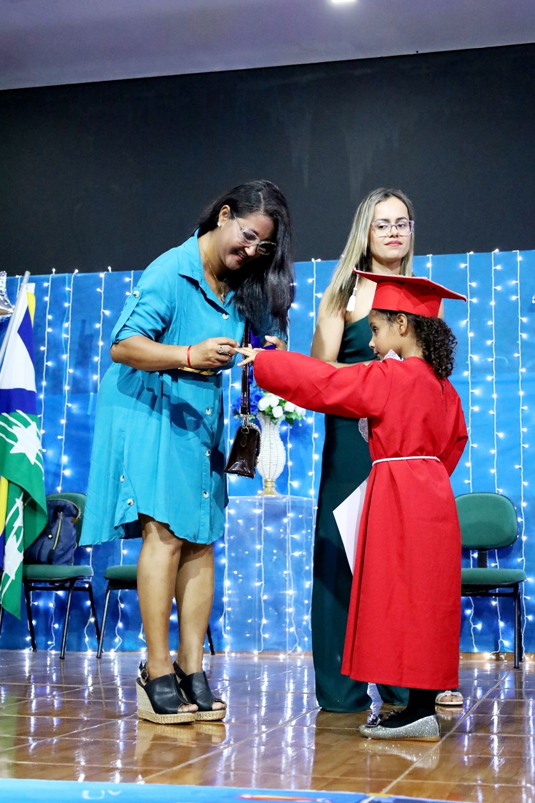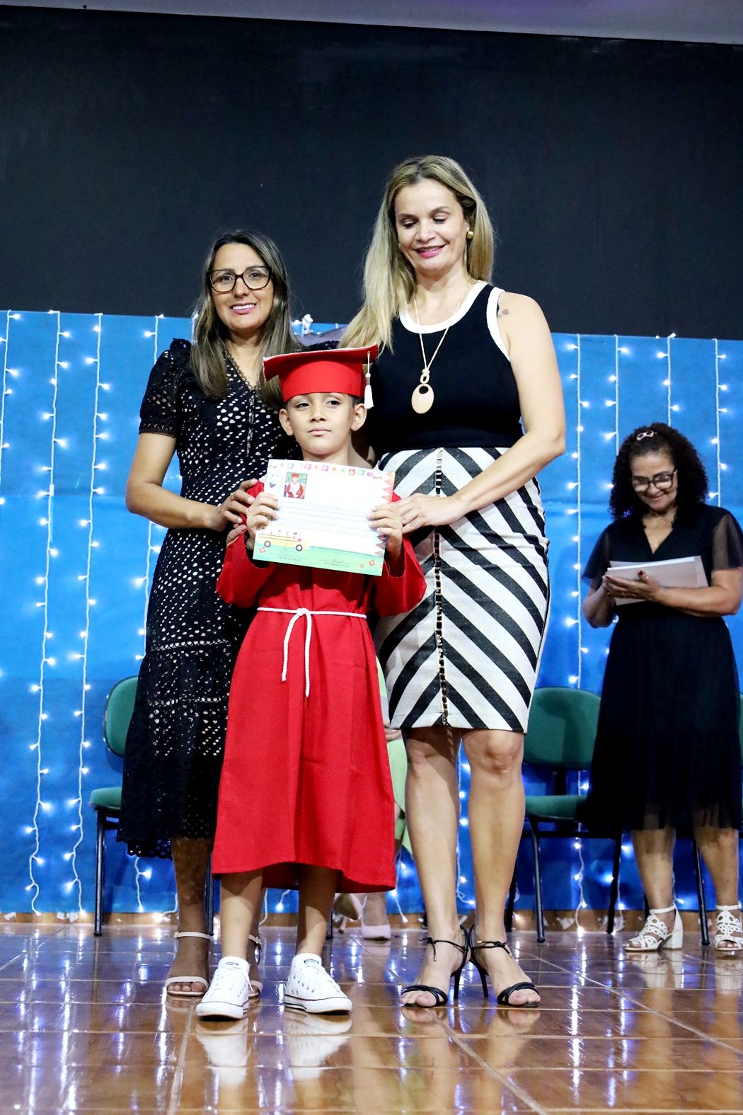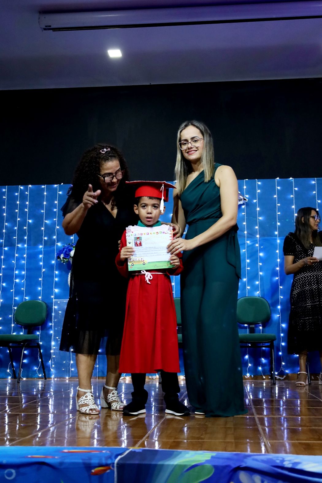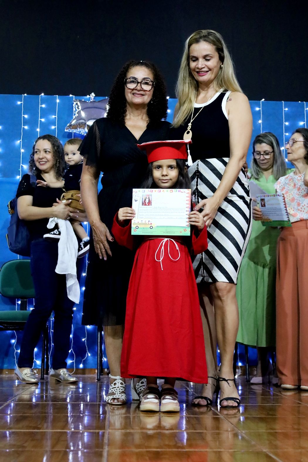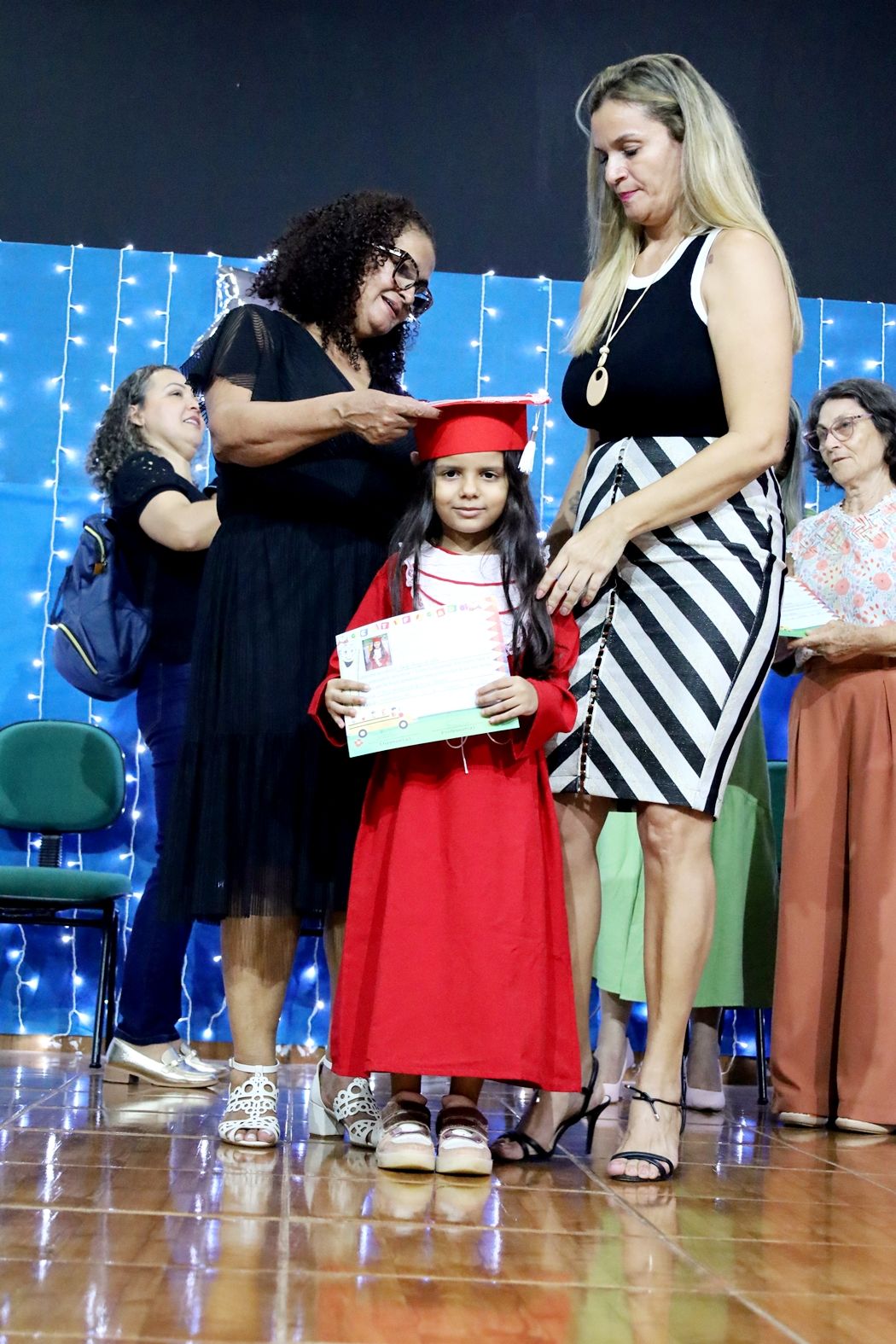 Na noite desta quinta-feira, 12 de dezembro, a Creche Betinho foi palco de uma emocionante cerimônia de formatura. O evento, que reuniu mais de 100 formandos, contou com a presença de familiares, amigos, professores e autoridades locais, incluindo a Secretária de Educação, Marcilene Rodrigues.