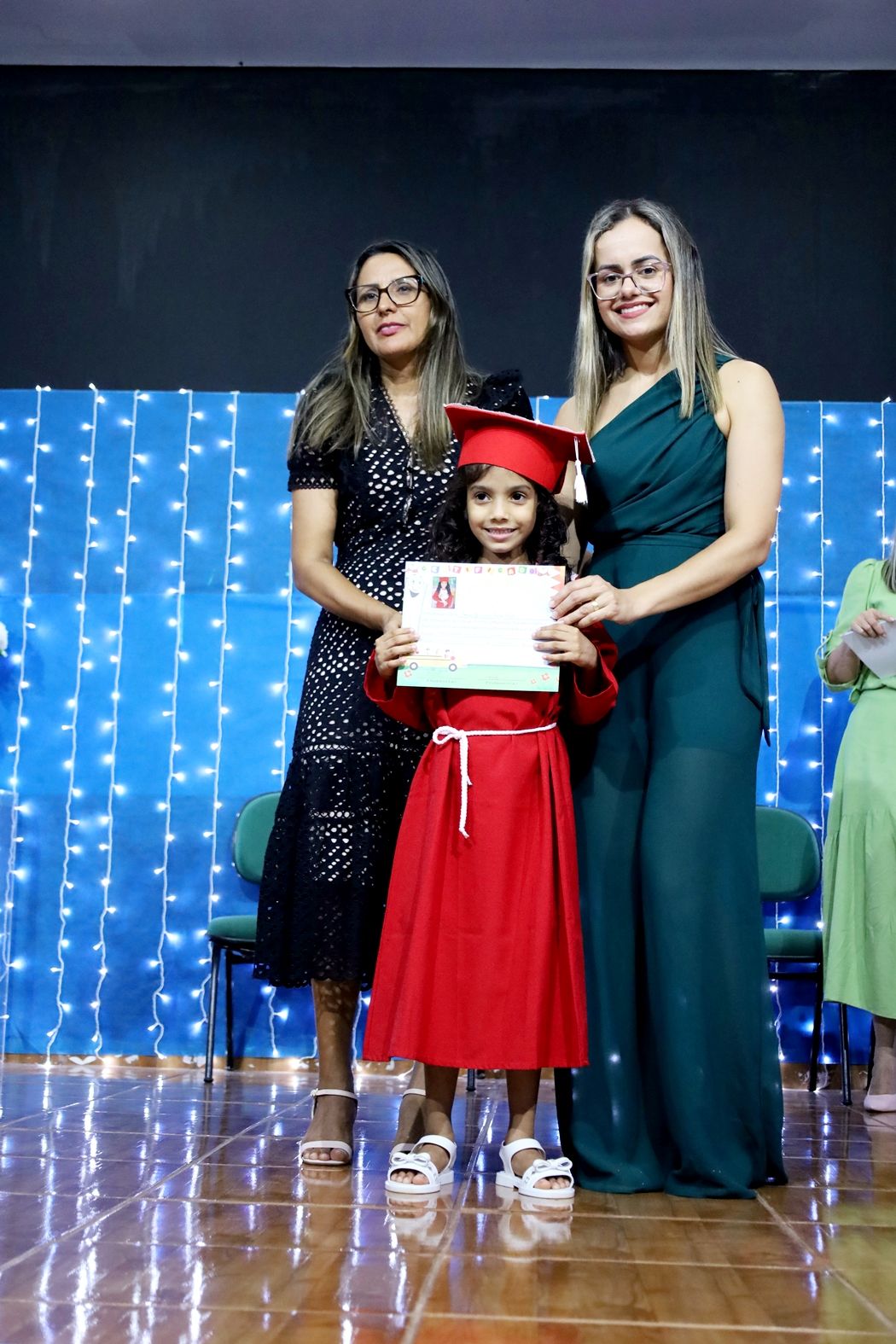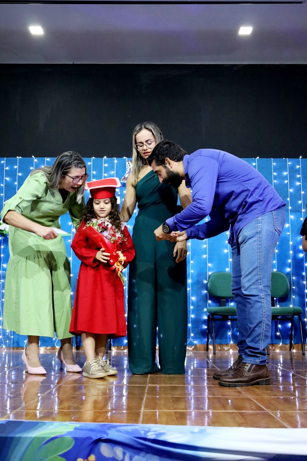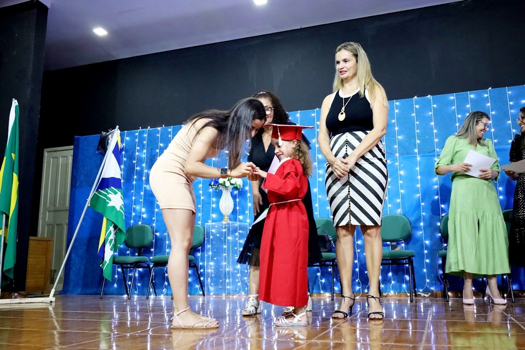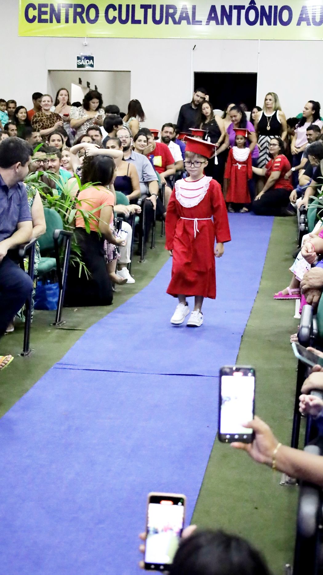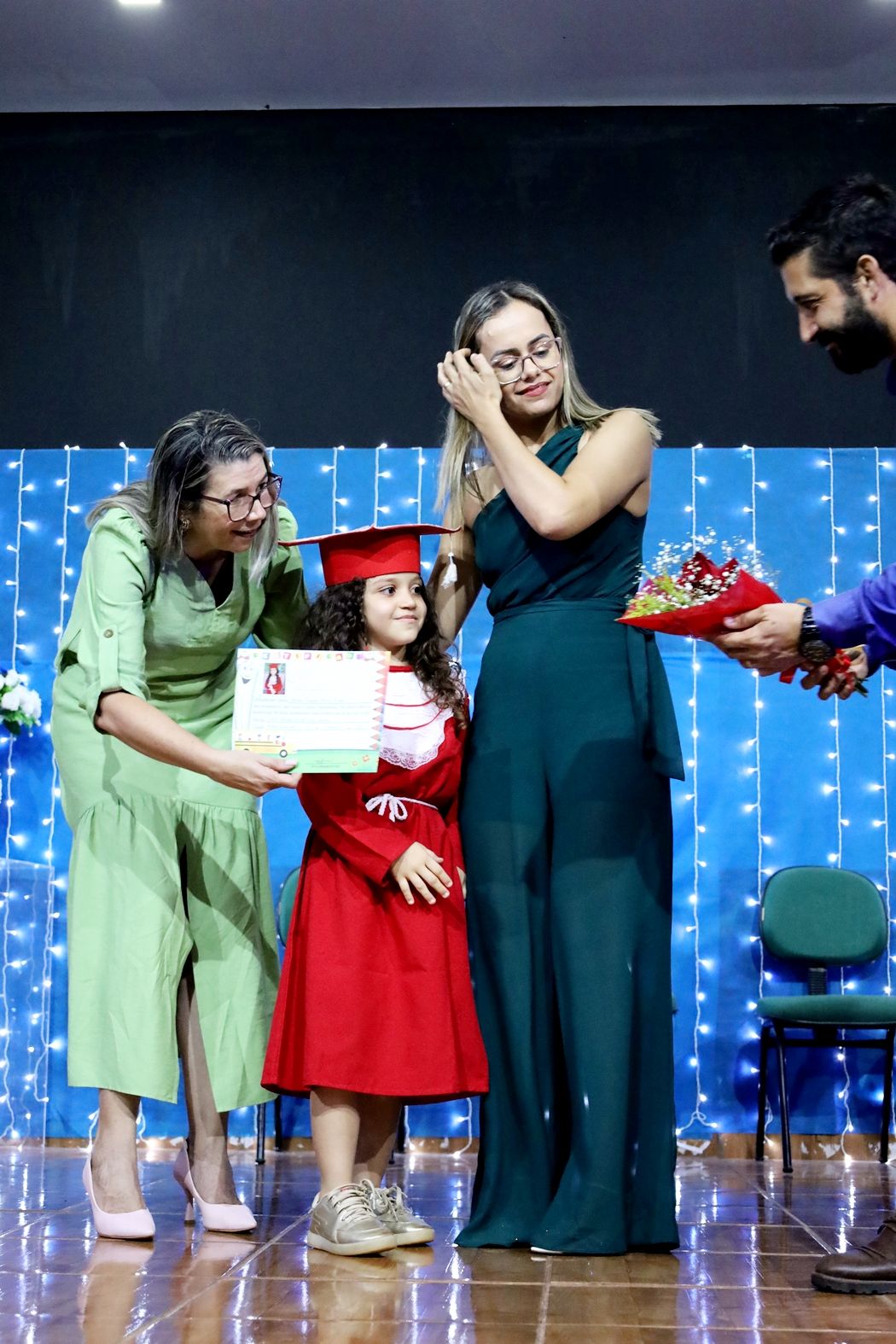Na noite desta quinta-feira, 12 de dezembro, a Creche Betinho foi palco de uma emocionante cerimônia de formatura. O evento, que reuniu mais de 100 formandos, contou com a presença de familiares, amigos, professores e autoridades locais, incluindo a Secretária de Educação, Marcilene Rodrigues.
