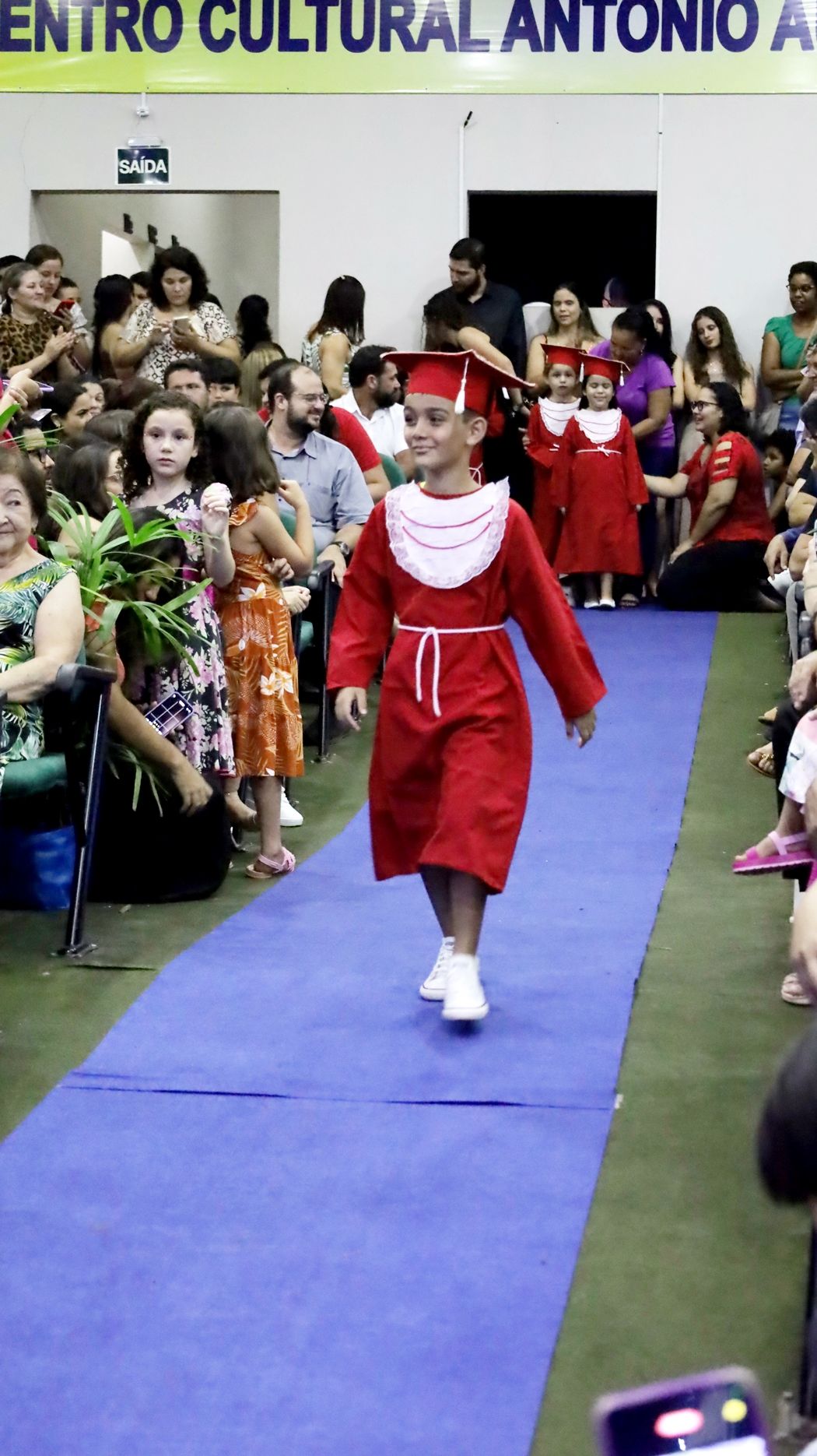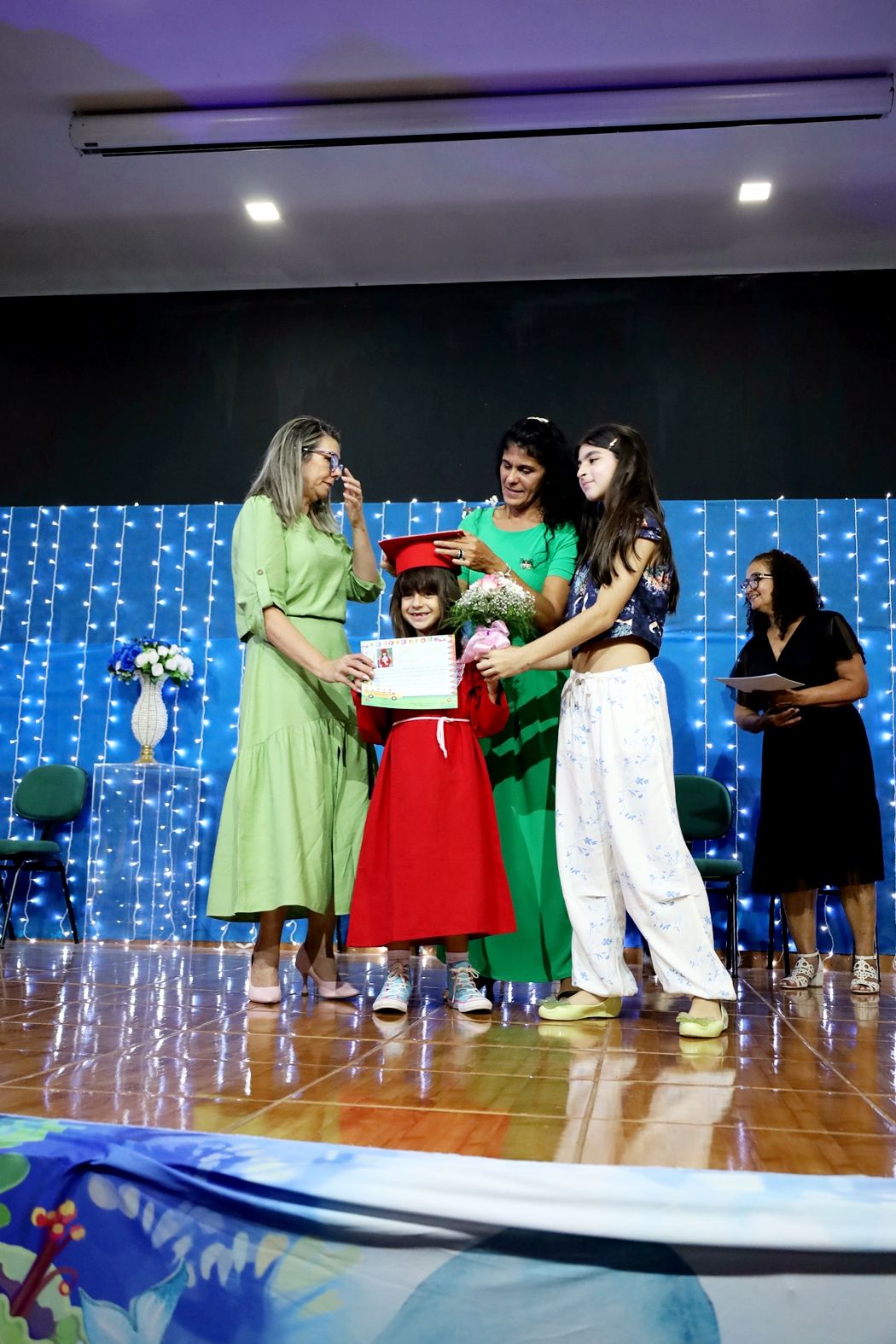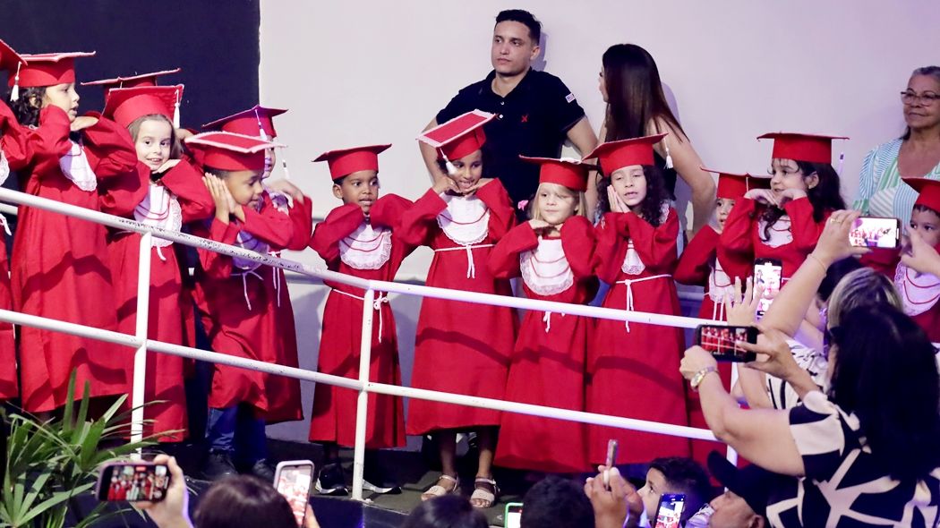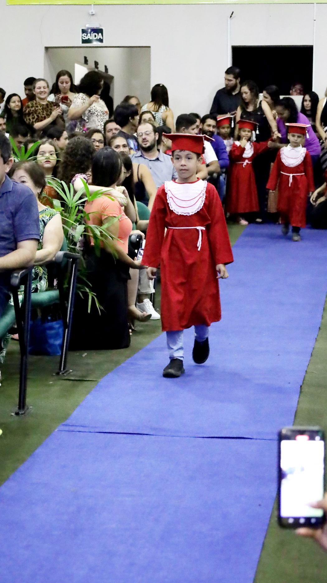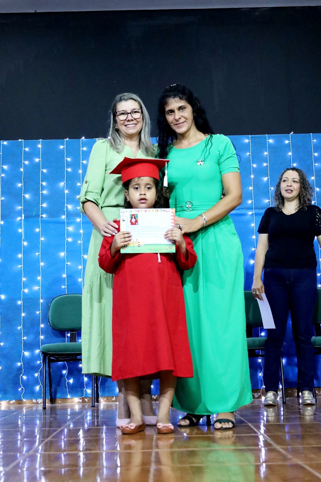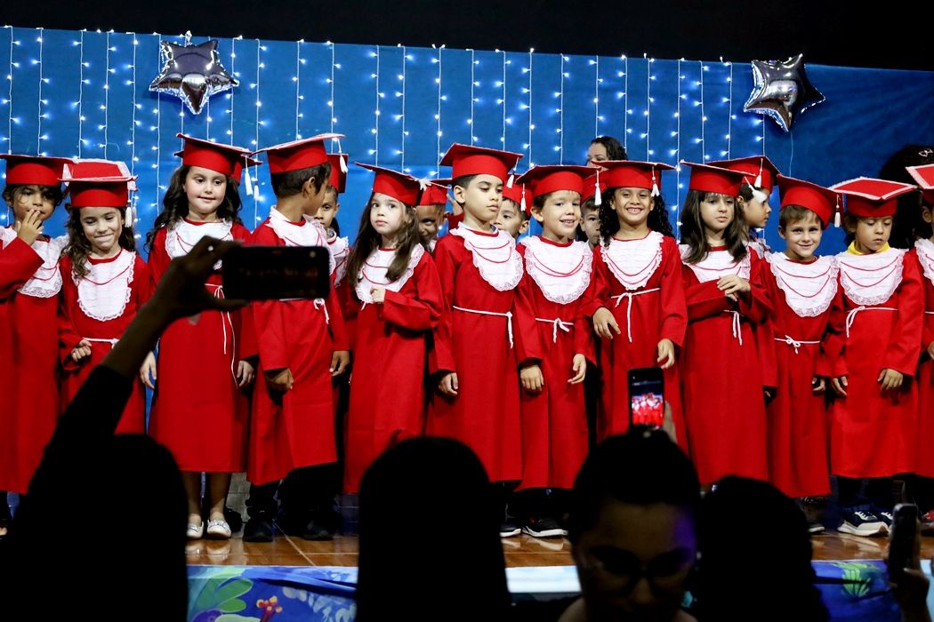 Na noite desta quinta-feira, 12 de dezembro, a Creche Betinho foi palco de uma emocionante cerimônia de formatura. O evento, que reuniu mais de 100 formandos, contou com a presença de familiares, amigos, professores e autoridades locais, incluindo a Secretária de Educação, Marcilene Rodrigues.