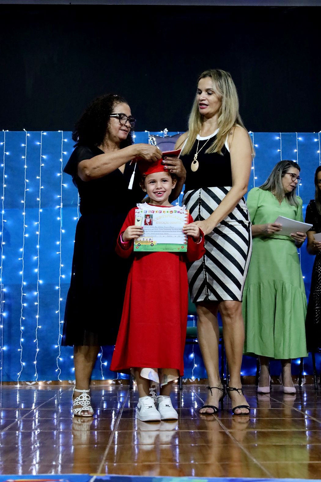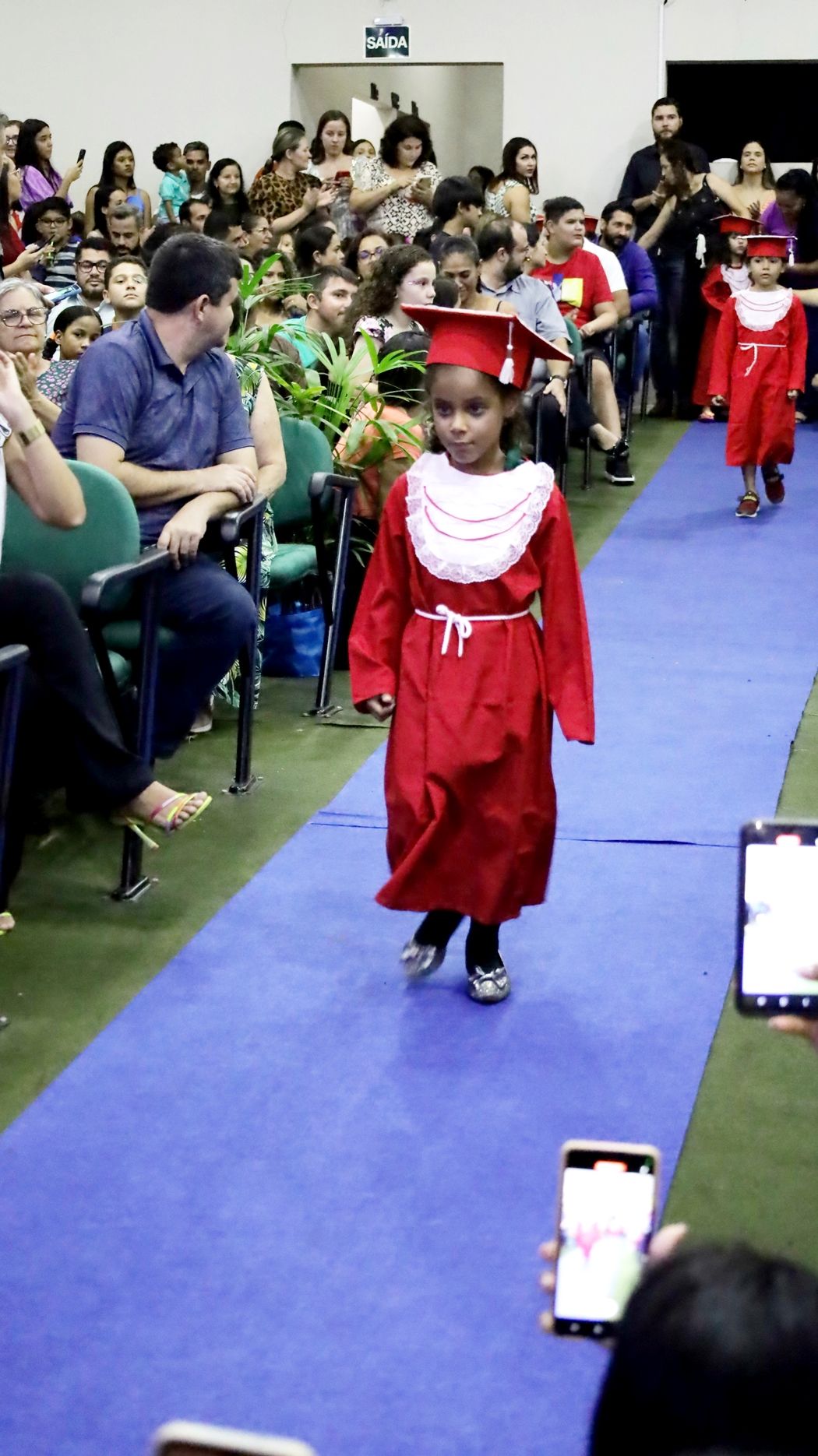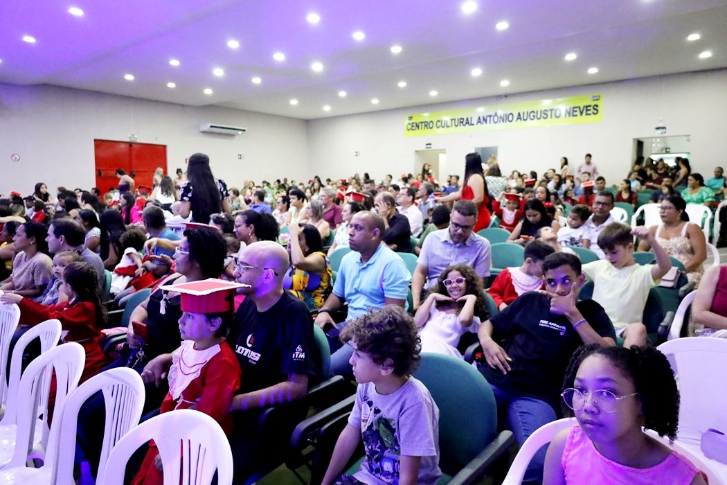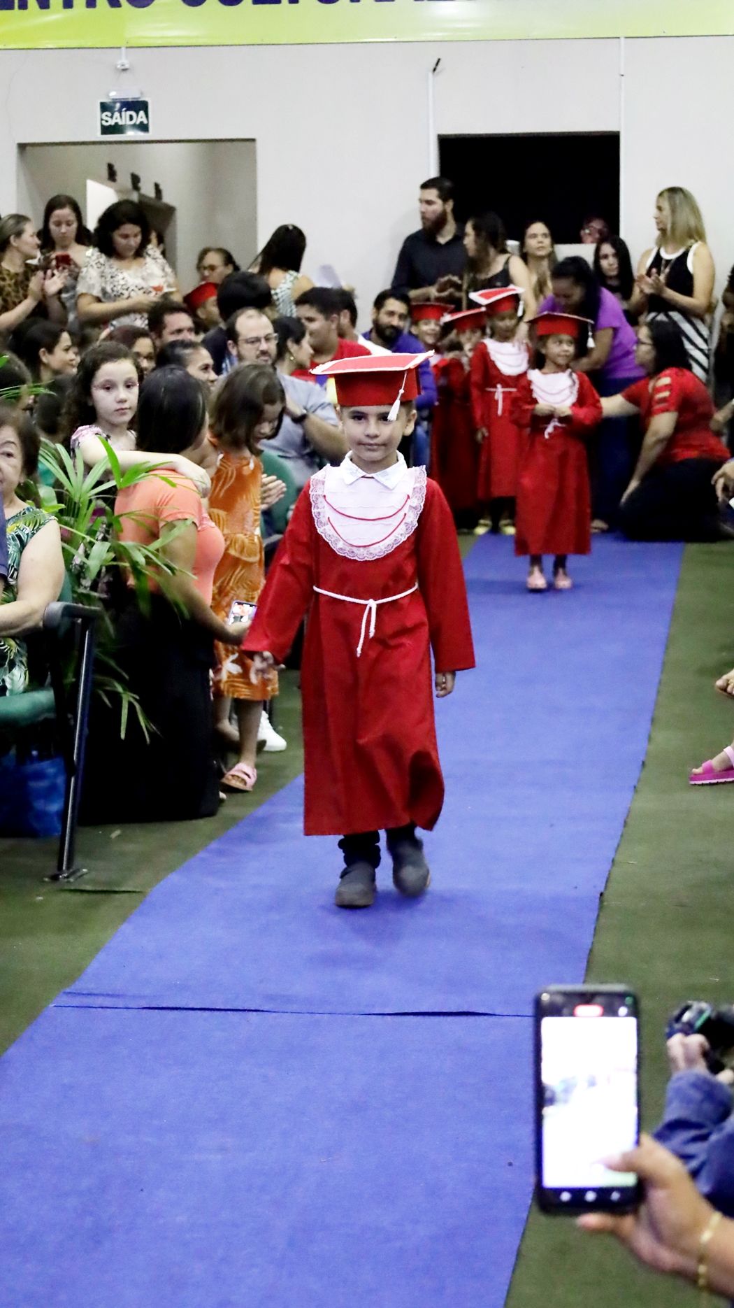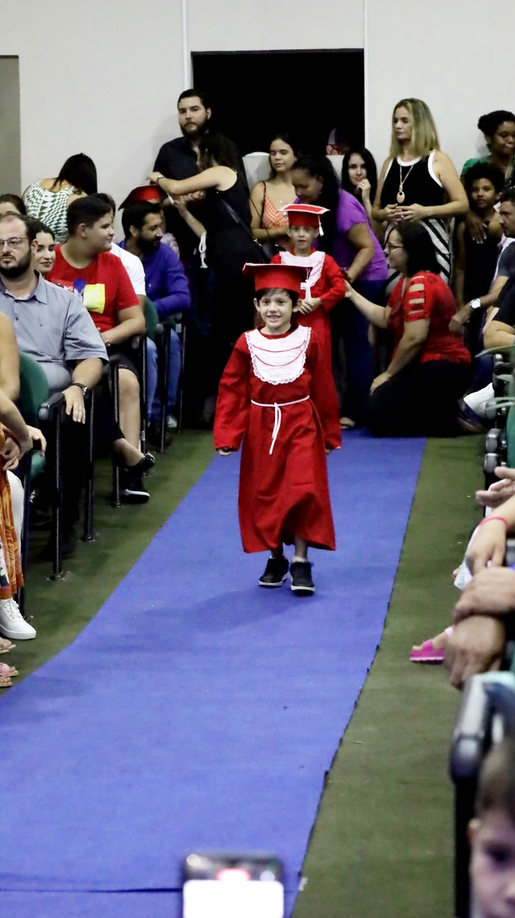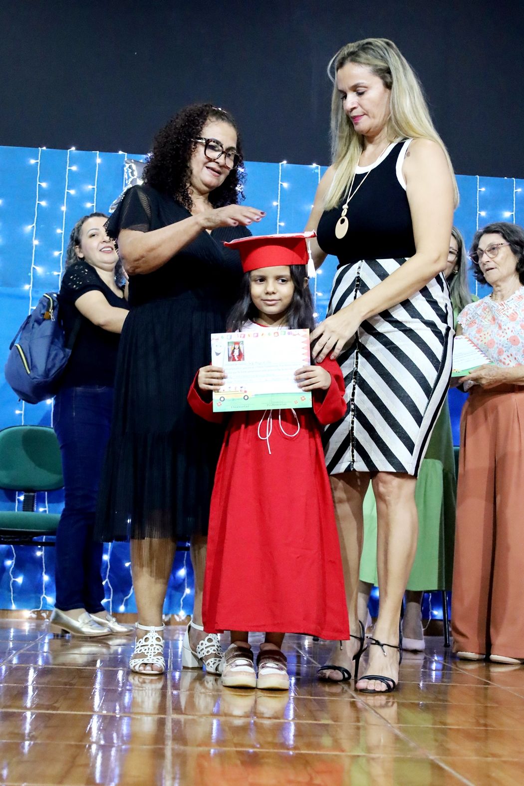 Na noite desta quinta-feira, 12 de dezembro, a Creche Betinho foi palco de uma emocionante cerimônia de formatura. O evento, que reuniu mais de 100 formandos, contou com a presença de familiares, amigos, professores e autoridades locais, incluindo a Secretária de Educação, Marcilene Rodrigues.