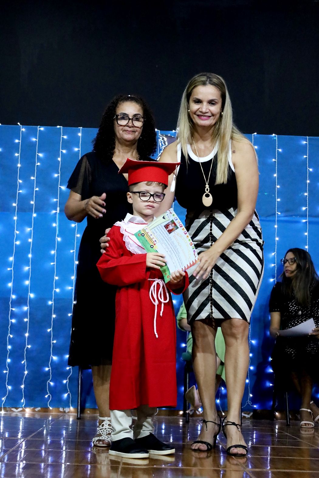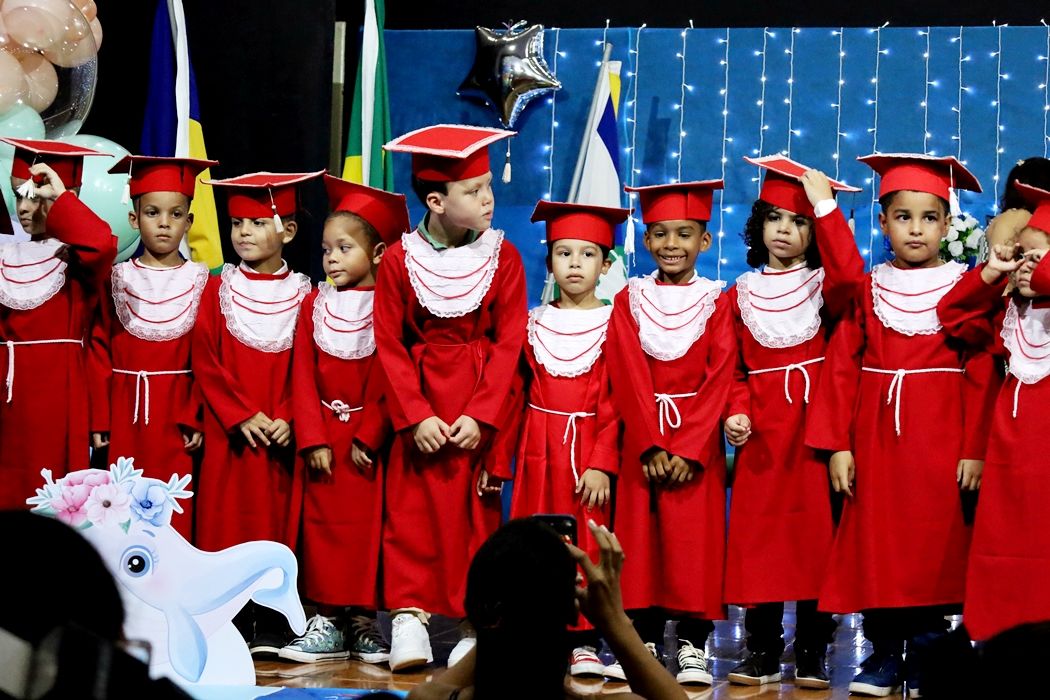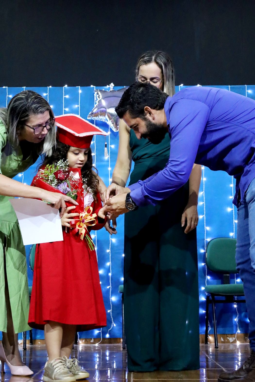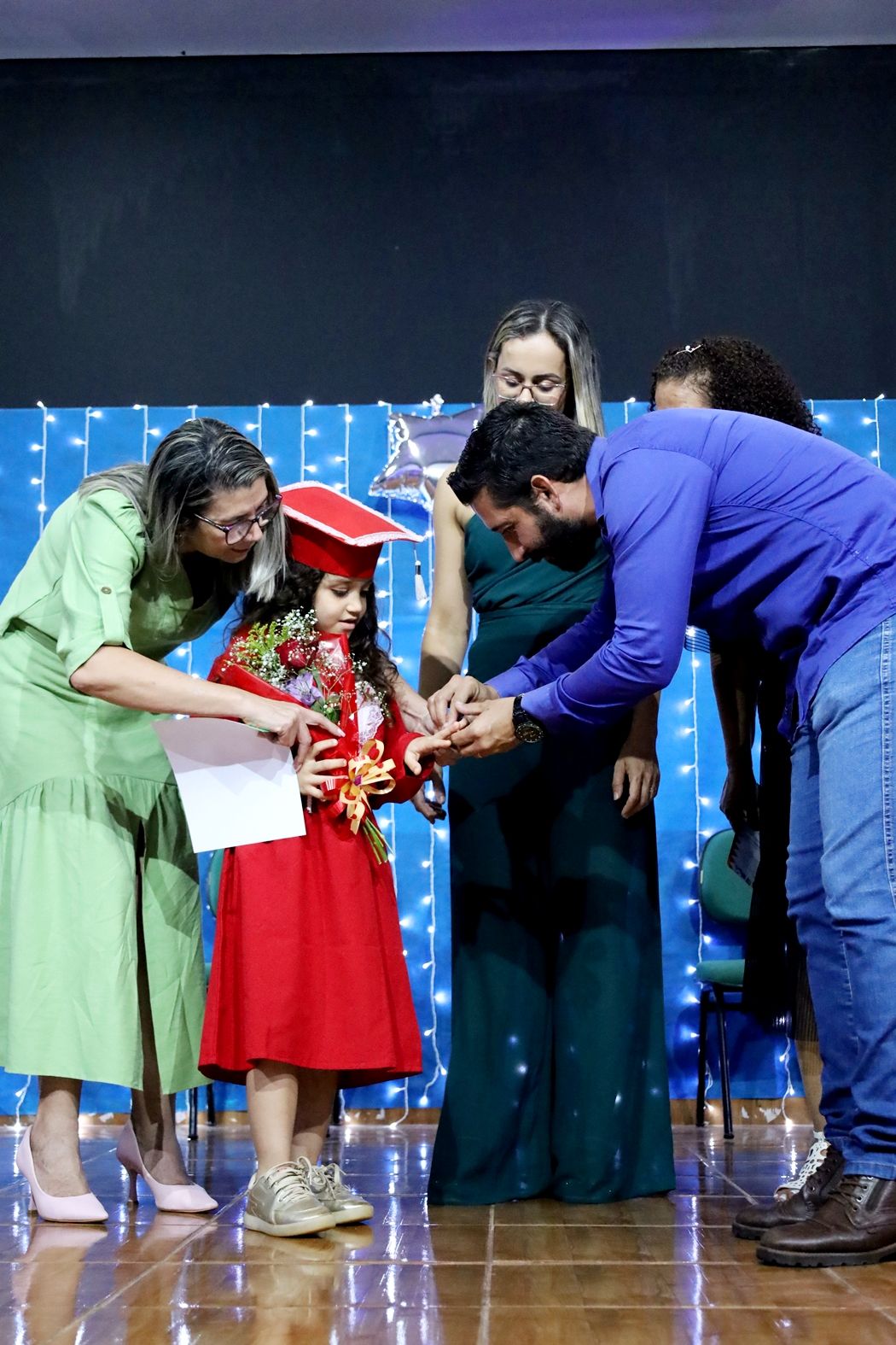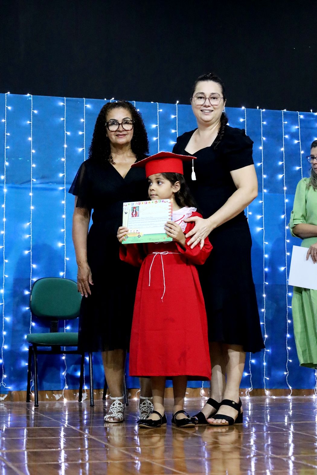 Na noite desta quinta-feira, 12 de dezembro, a Creche Betinho foi palco de uma emocionante cerimônia de formatura. O evento, que reuniu mais de 100 formandos, contou com a presença de familiares, amigos, professores e autoridades locais, incluindo a Secretária de Educação, Marcilene Rodrigues.