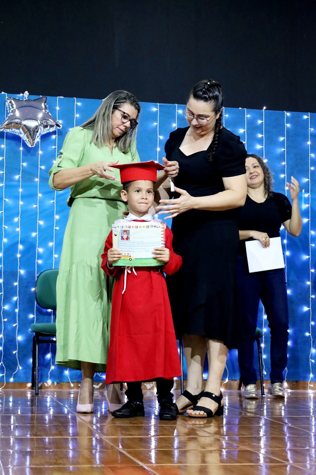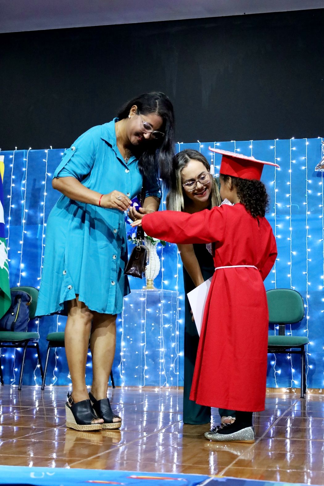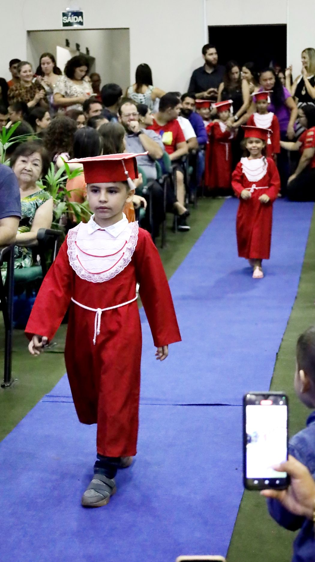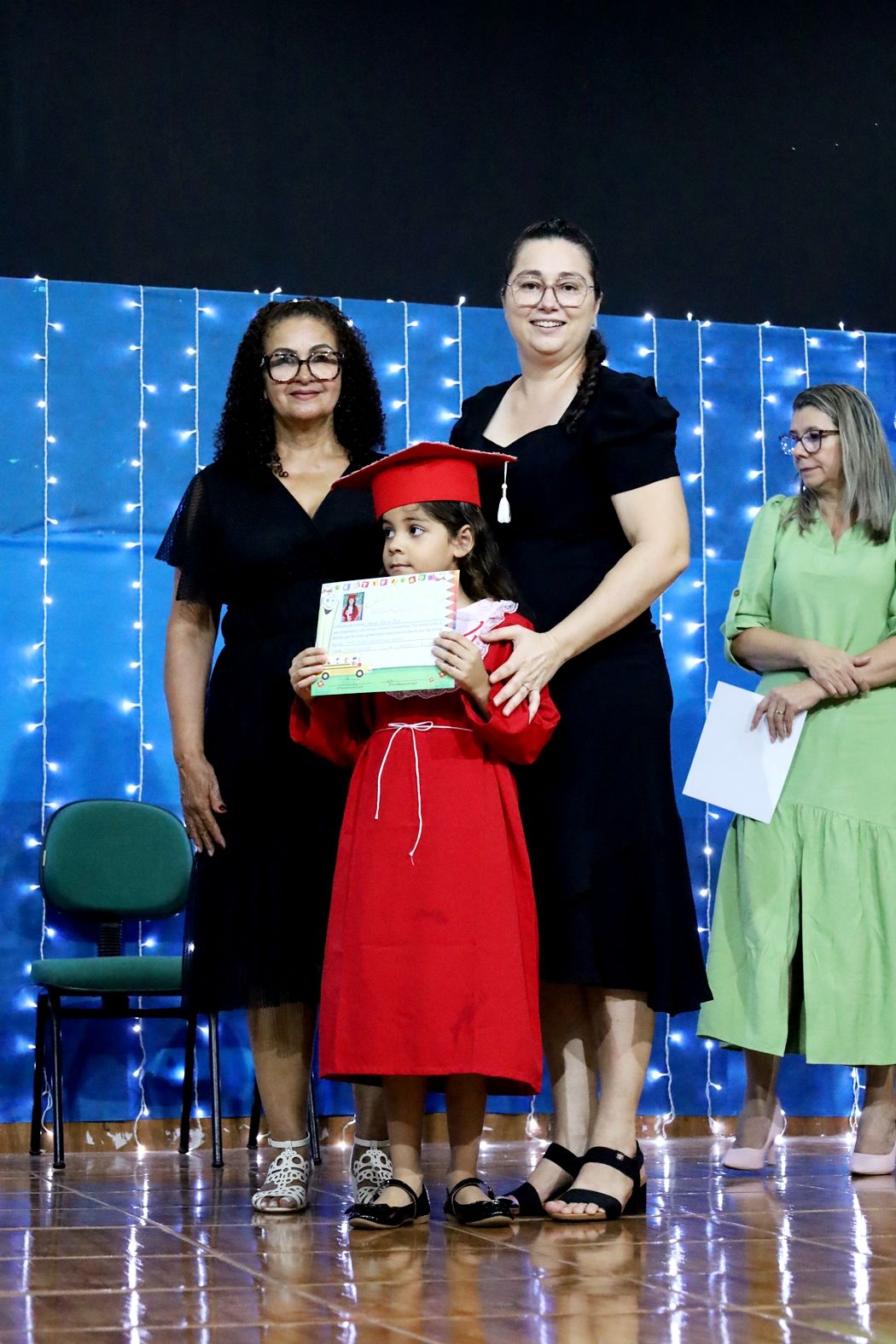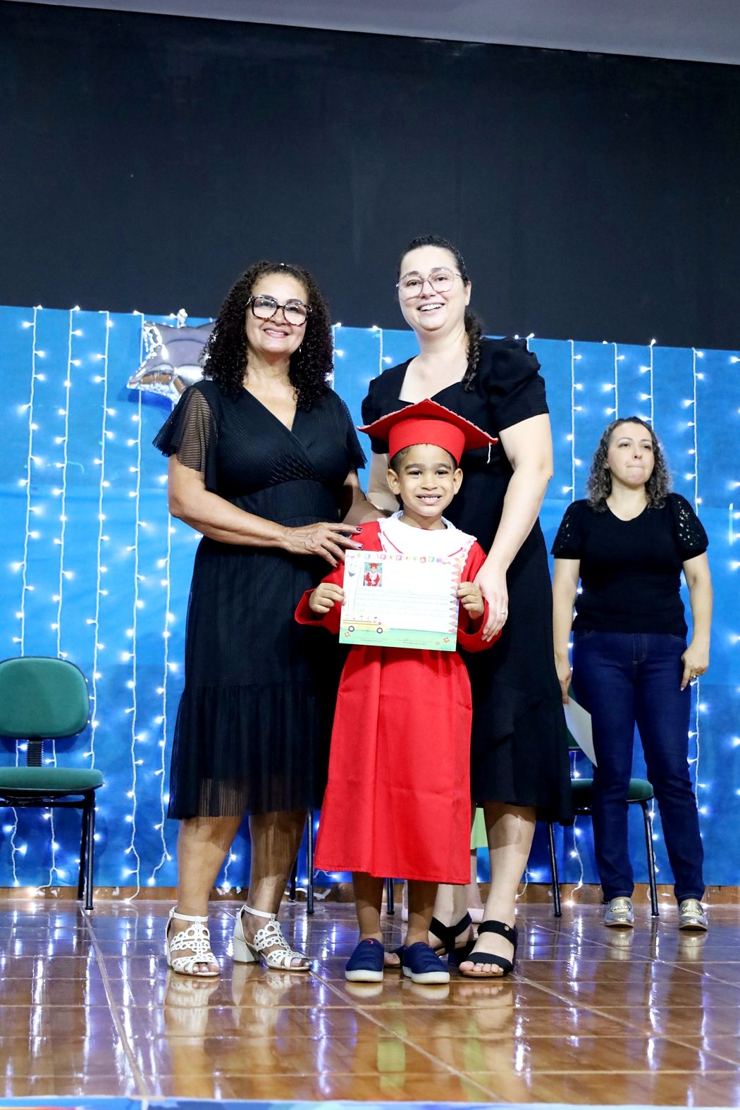 Na noite desta quinta-feira, 12 de dezembro, a Creche Betinho foi palco de uma emocionante cerimônia de formatura. O evento, que reuniu mais de 100 formandos, contou com a presença de familiares, amigos, professores e autoridades locais, incluindo a Secretária de Educação, Marcilene Rodrigues.