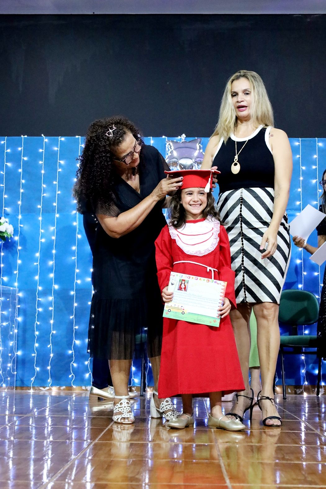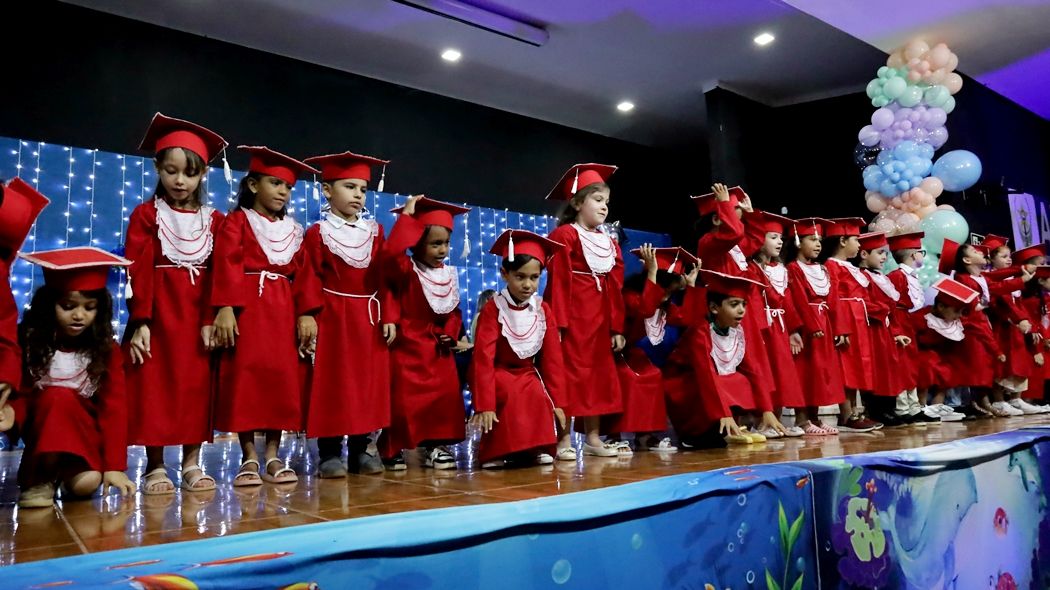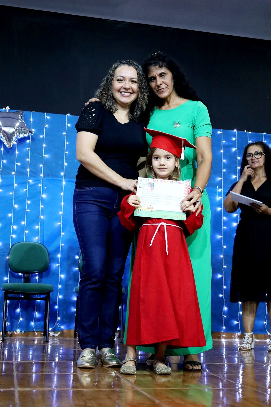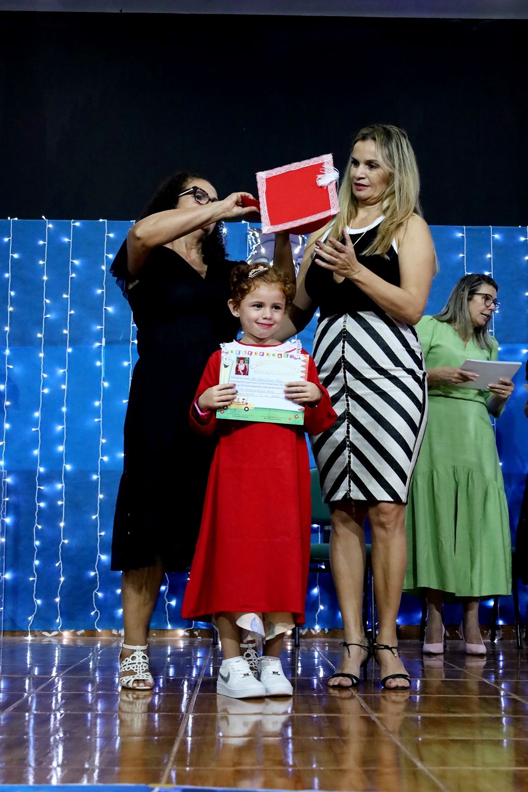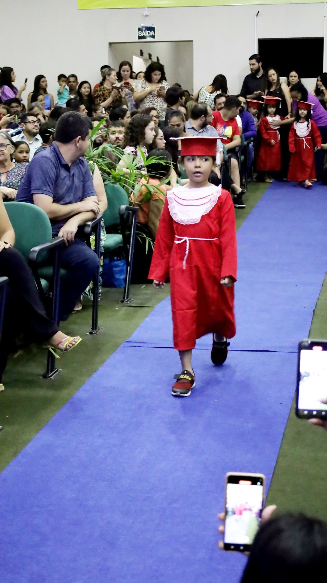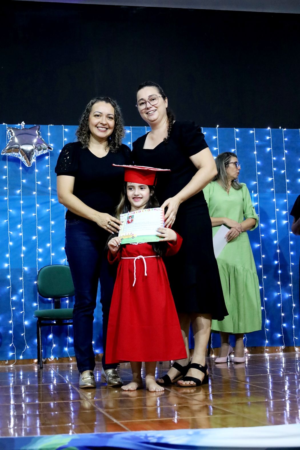 Na noite desta quinta-feira, 12 de dezembro, a Creche Betinho foi palco de uma emocionante cerimônia de formatura. O evento, que reuniu mais de 100 formandos, contou com a presença de familiares, amigos, professores e autoridades locais, incluindo a Secretária de Educação, Marcilene Rodrigues.