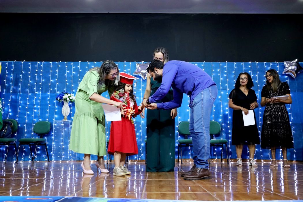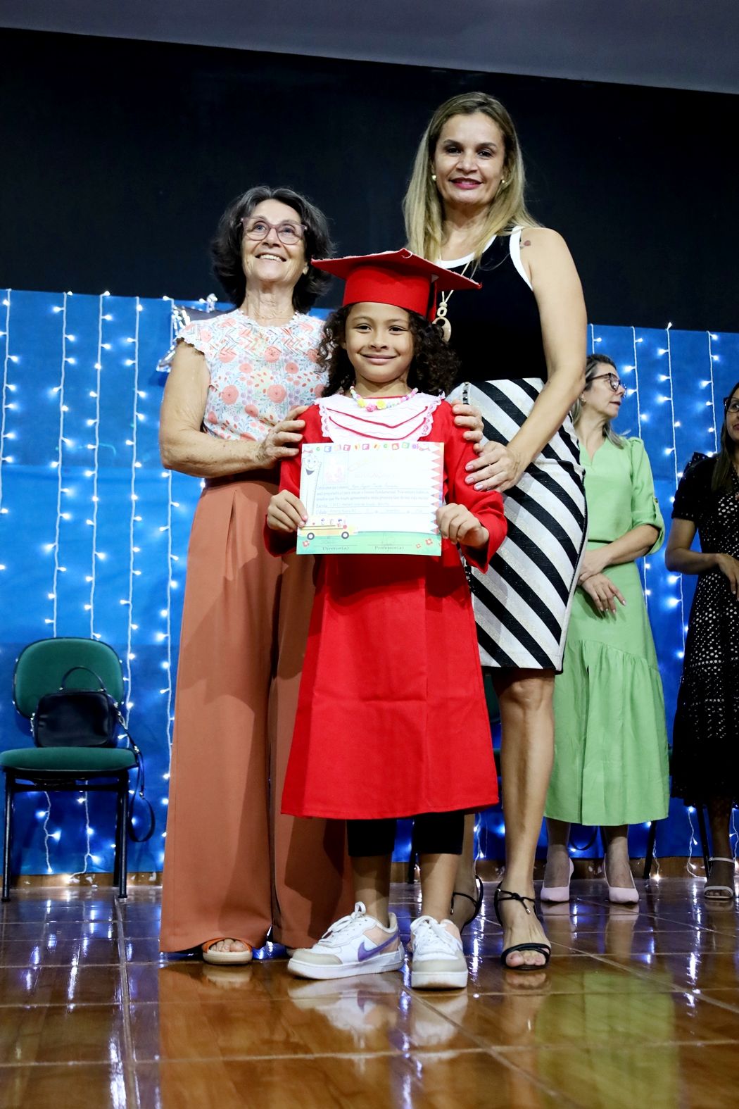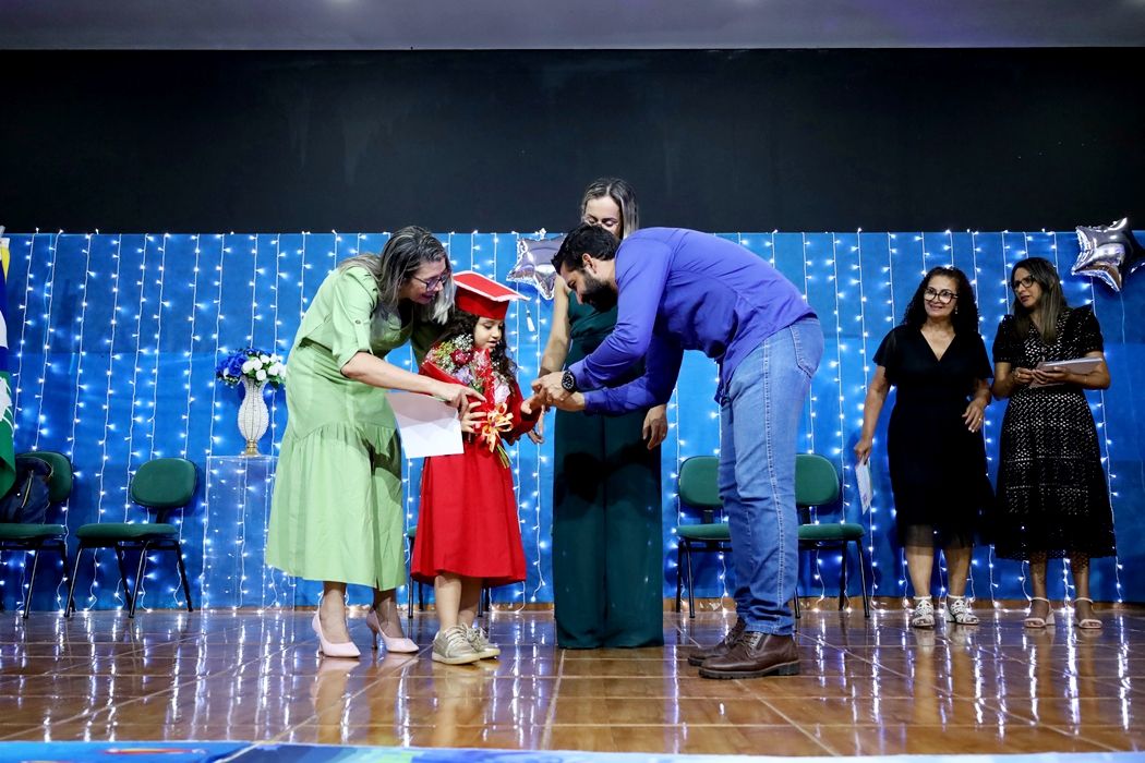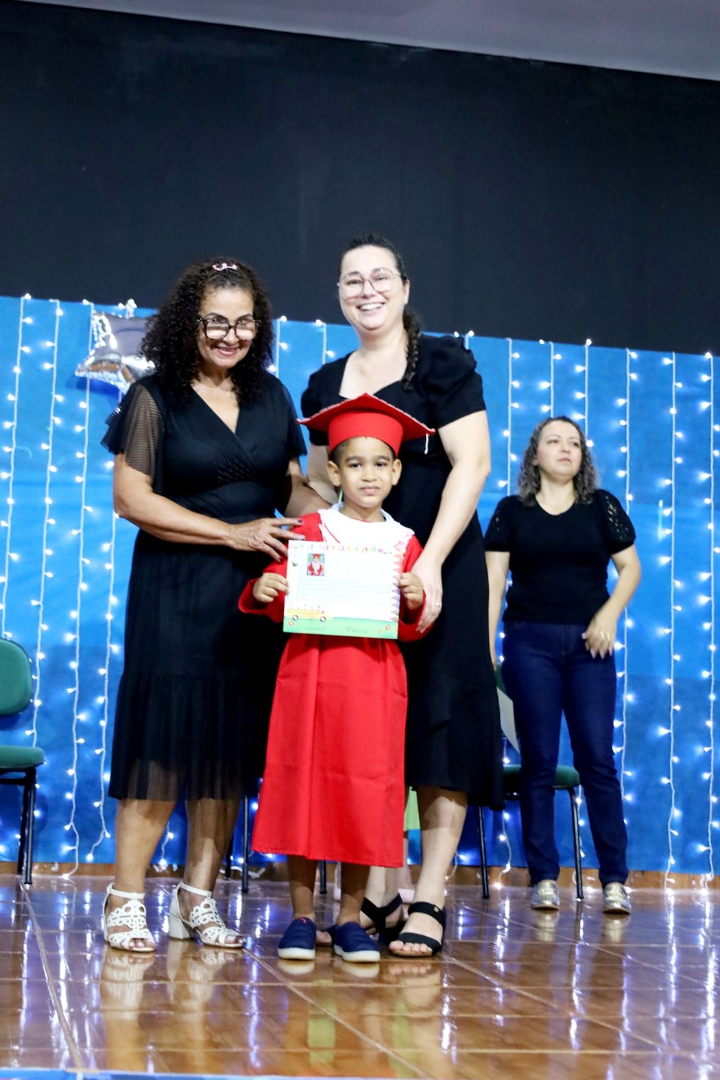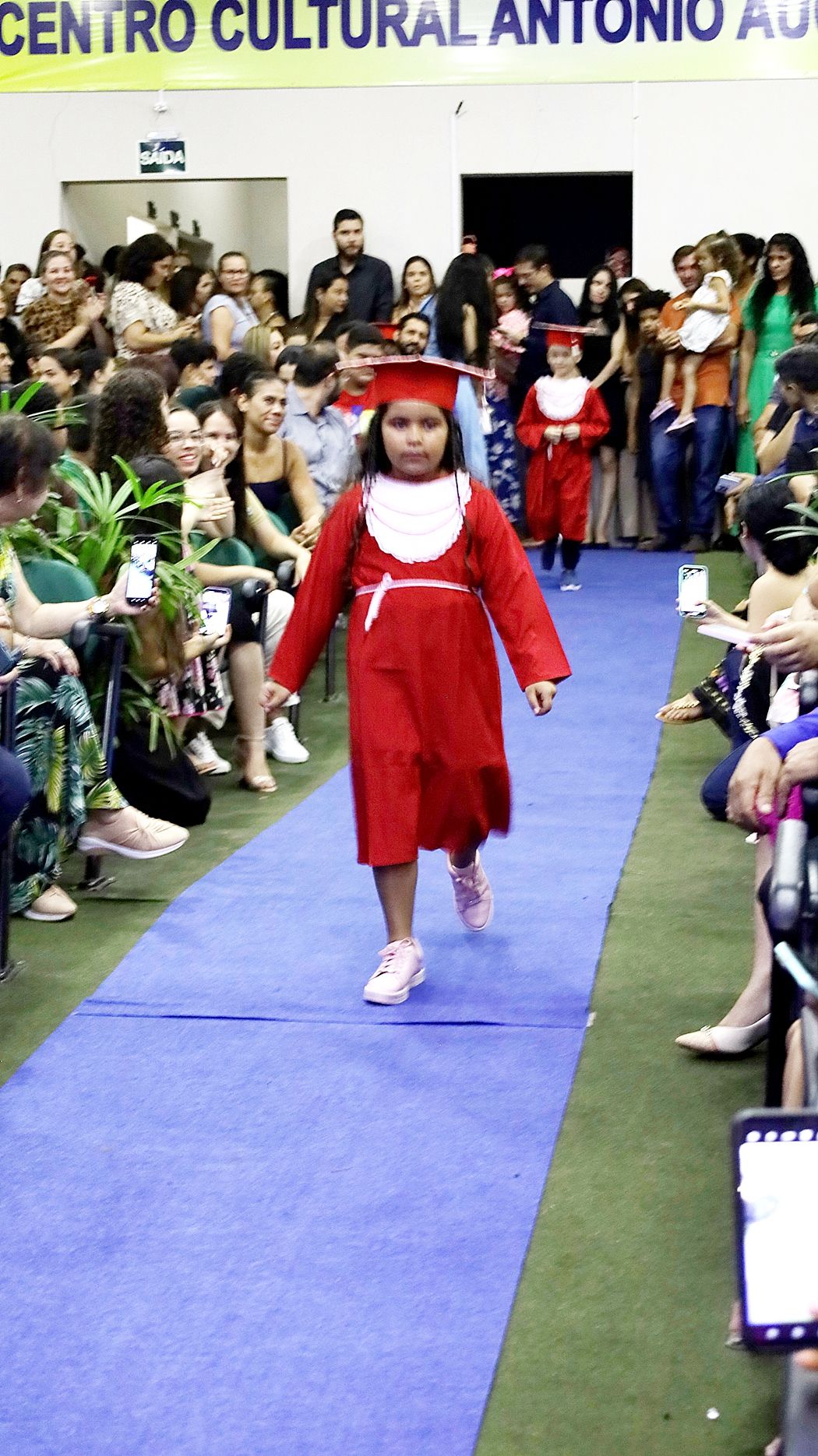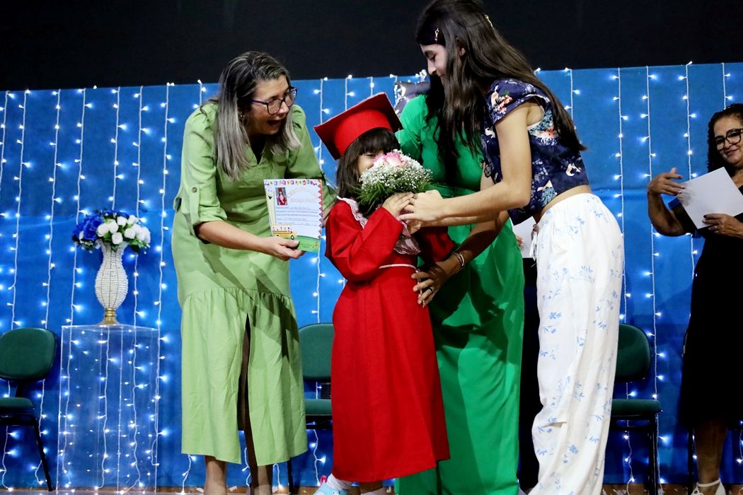Na noite desta quinta-feira, 12 de dezembro, a Creche Betinho foi palco de uma emocionante cerimônia de formatura. O evento, que reuniu mais de 100 formandos, contou com a presença de familiares, amigos, professores e autoridades locais, incluindo a Secretária de Educação, Marcilene Rodrigues.