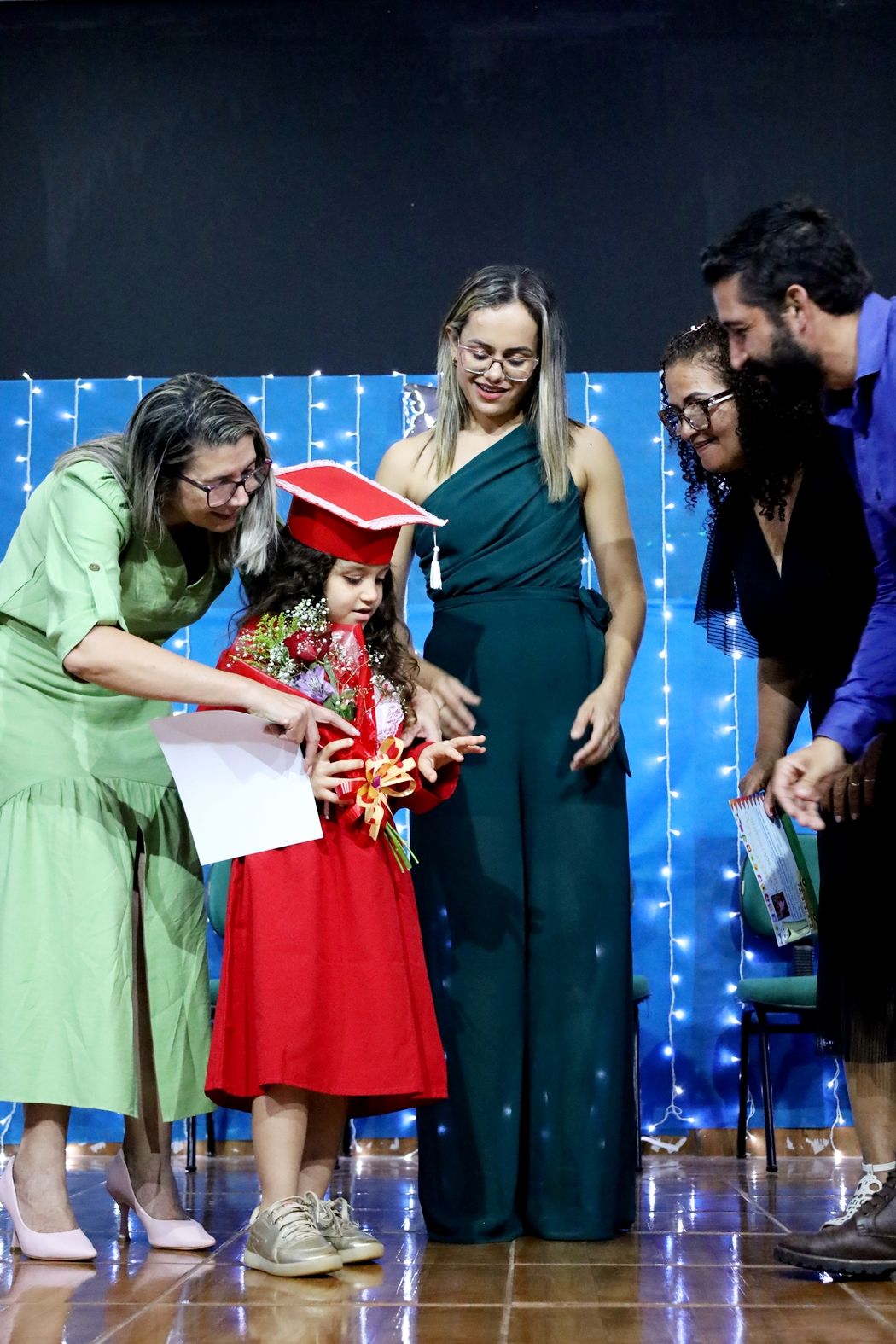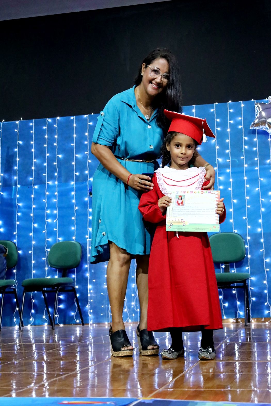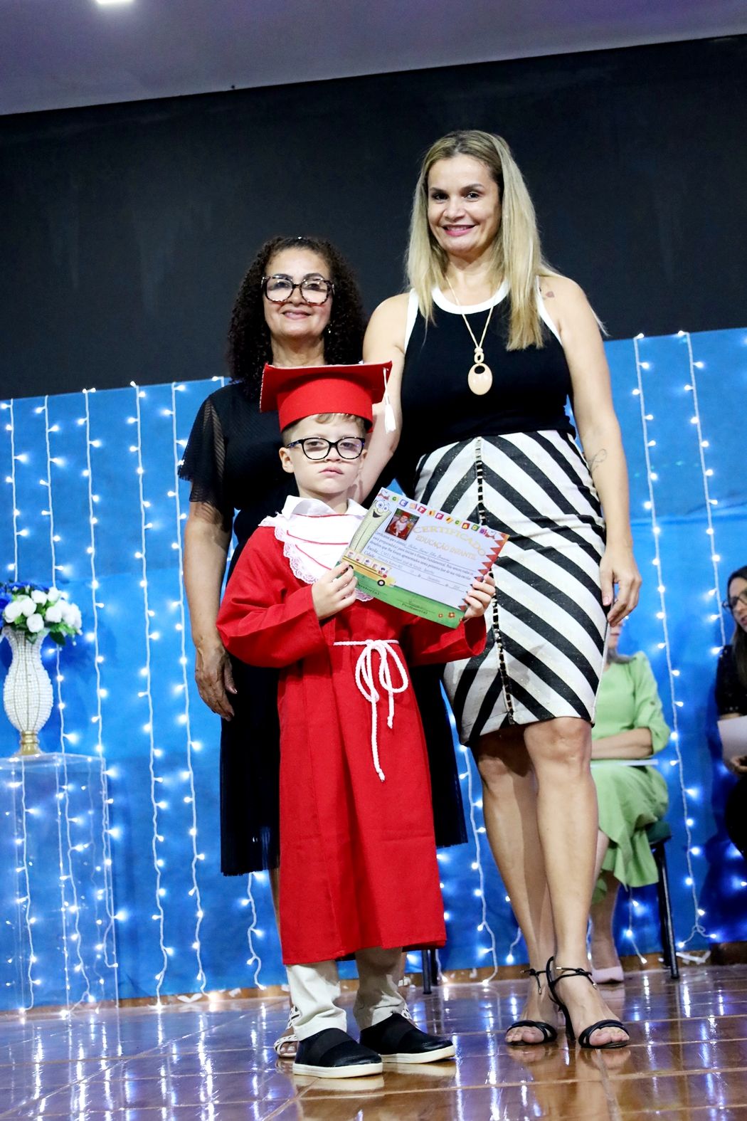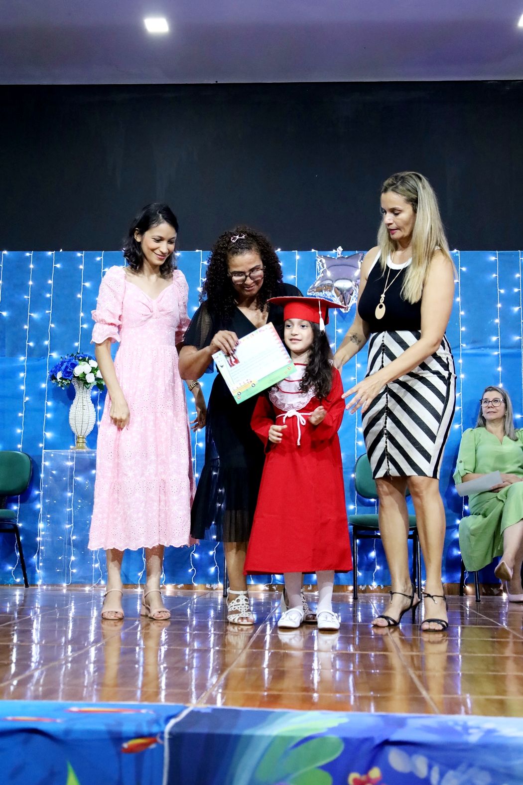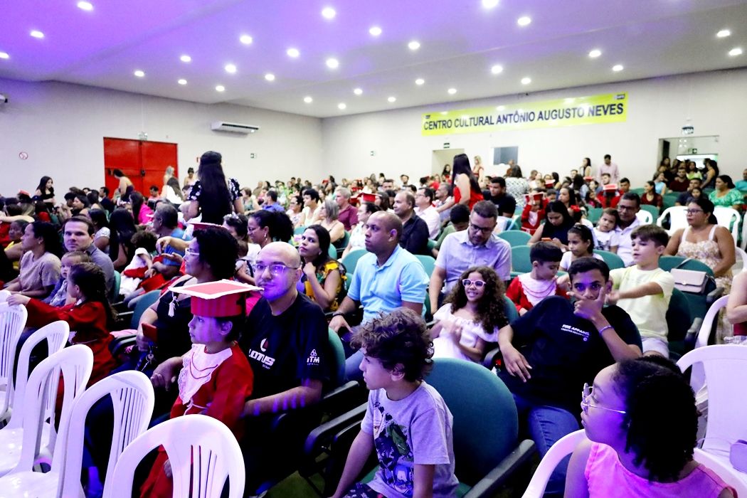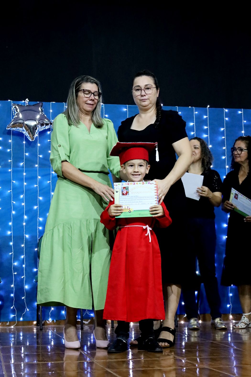 Na noite desta quinta-feira, 12 de dezembro, a Creche Betinho foi palco de uma emocionante cerimônia de formatura. O evento, que reuniu mais de 100 formandos, contou com a presença de familiares, amigos, professores e autoridades locais, incluindo a Secretária de Educação, Marcilene Rodrigues.