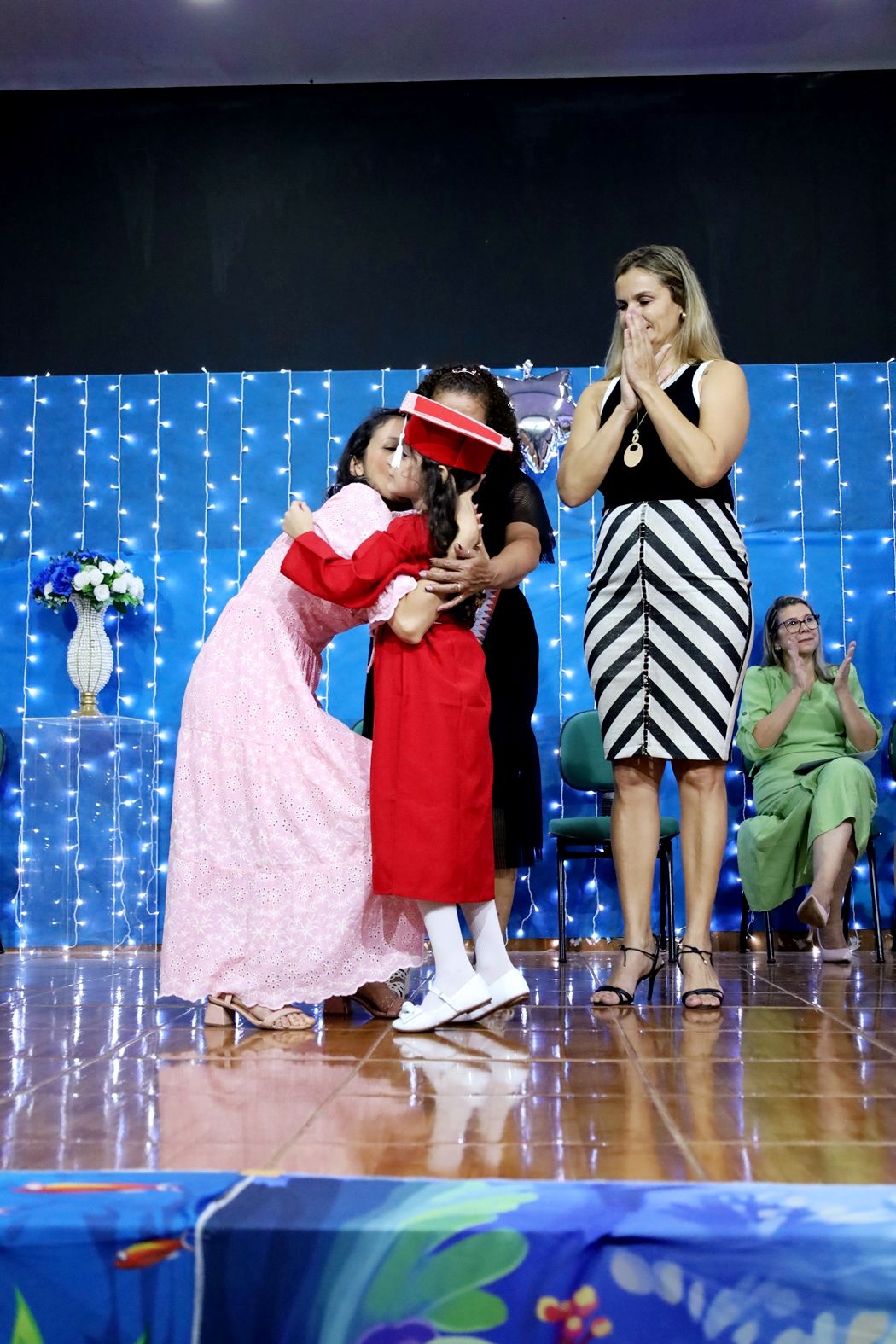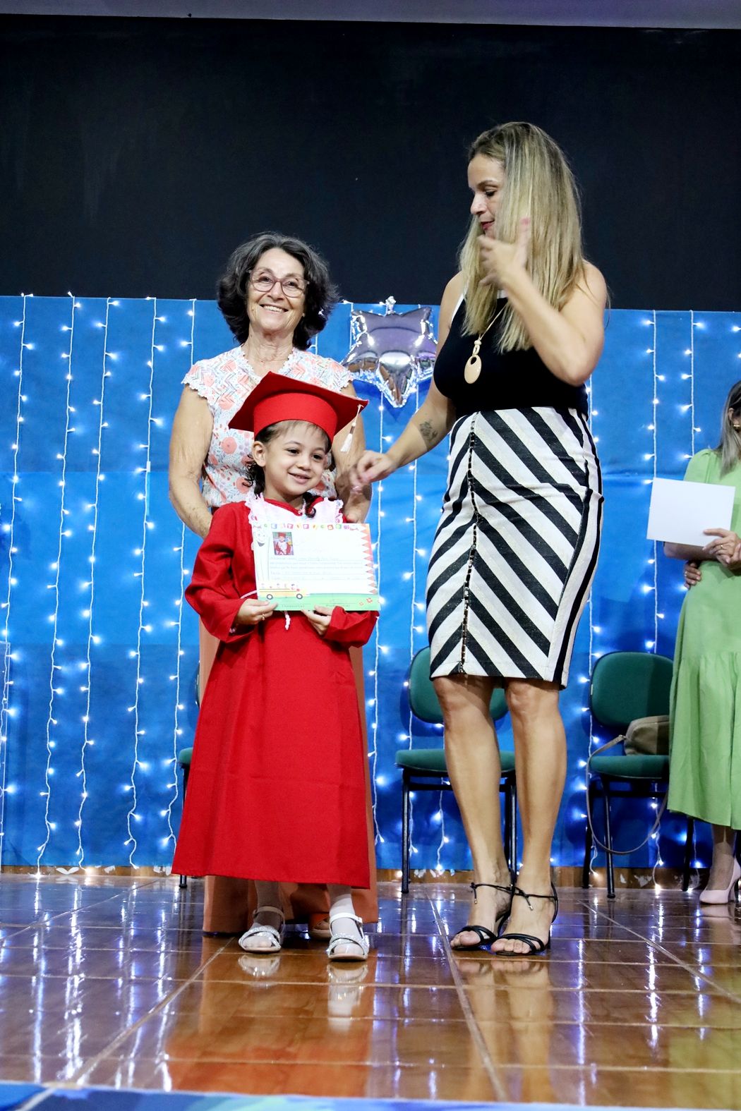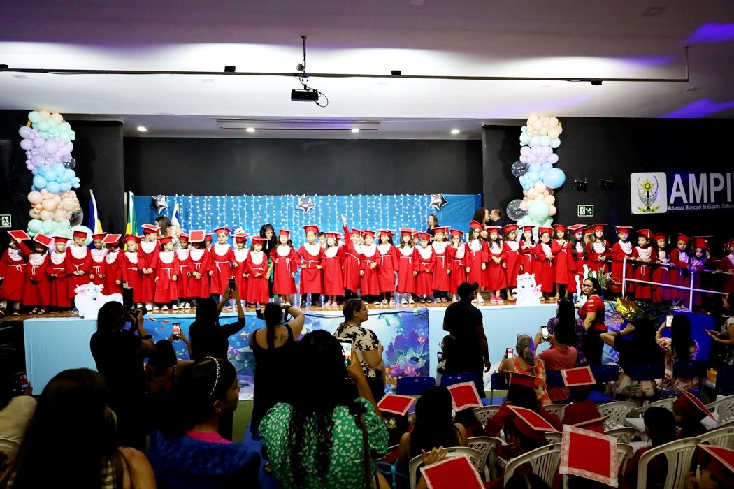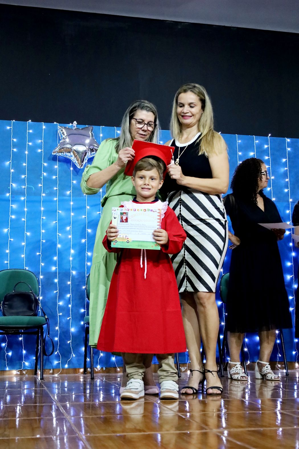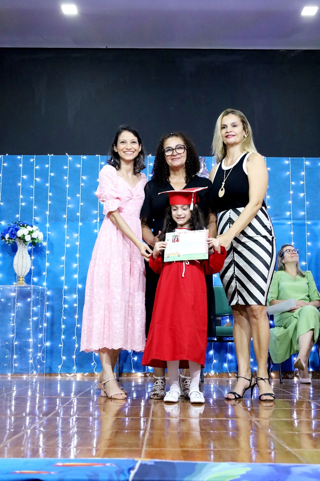 Na noite desta quinta-feira, 12 de dezembro, a Creche Betinho foi palco de uma emocionante cerimônia de formatura. O evento, que reuniu mais de 100 formandos, contou com a presença de familiares, amigos, professores e autoridades locais, incluindo a Secretária de Educação, Marcilene Rodrigues.
