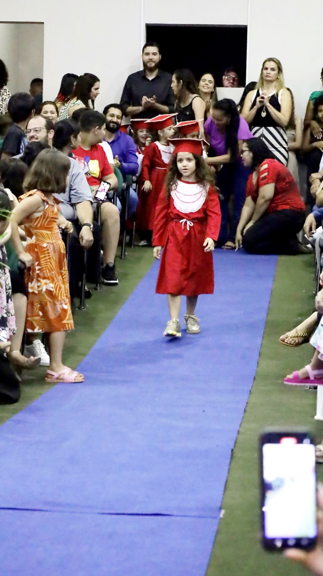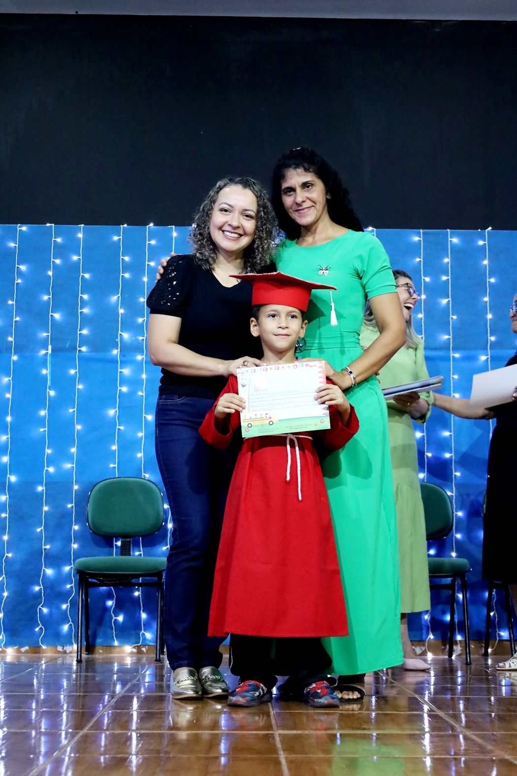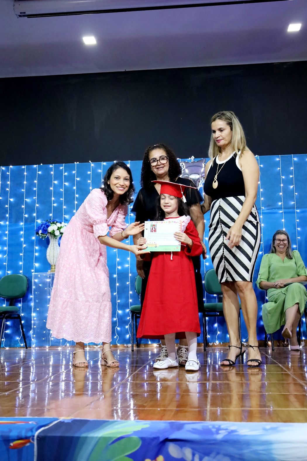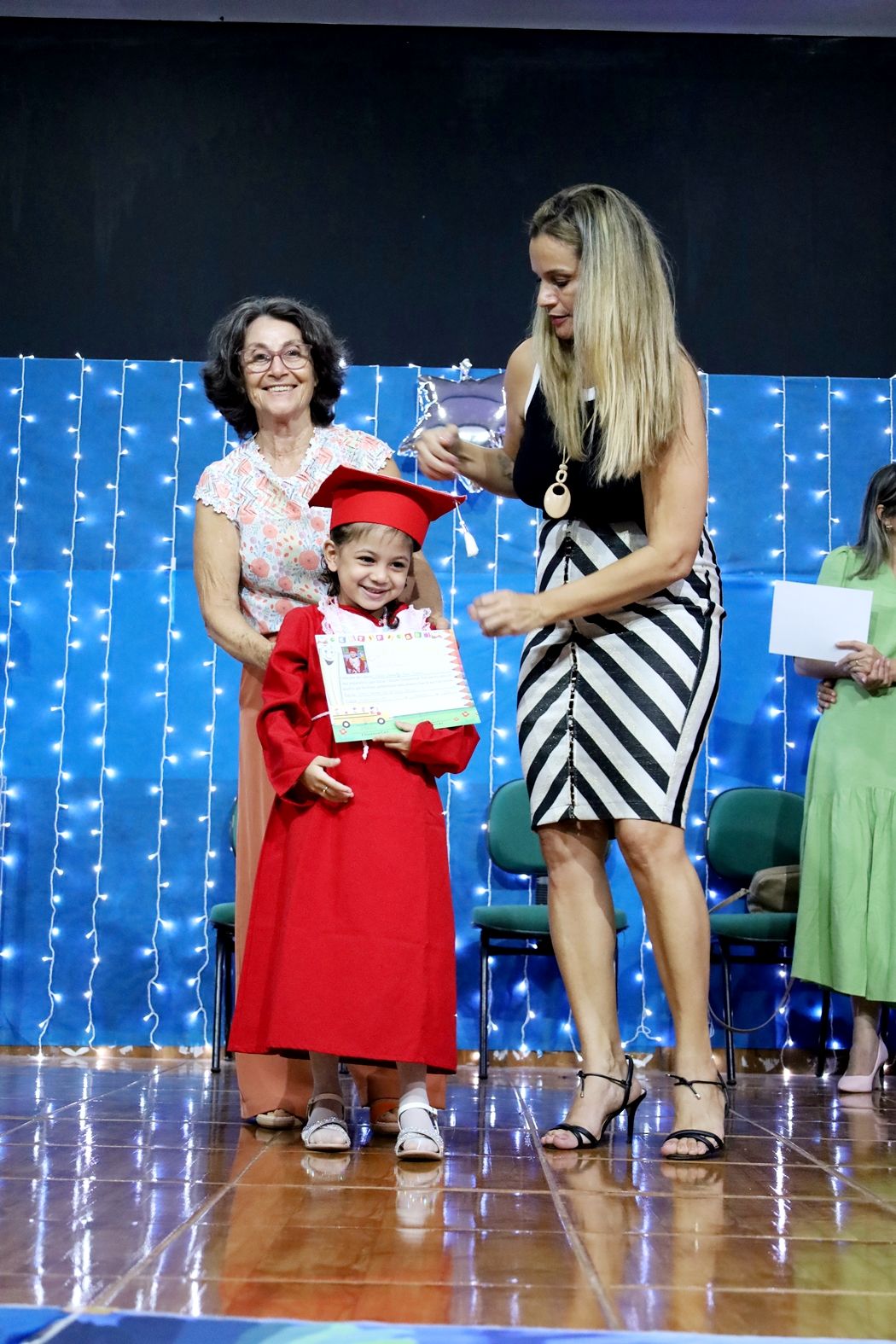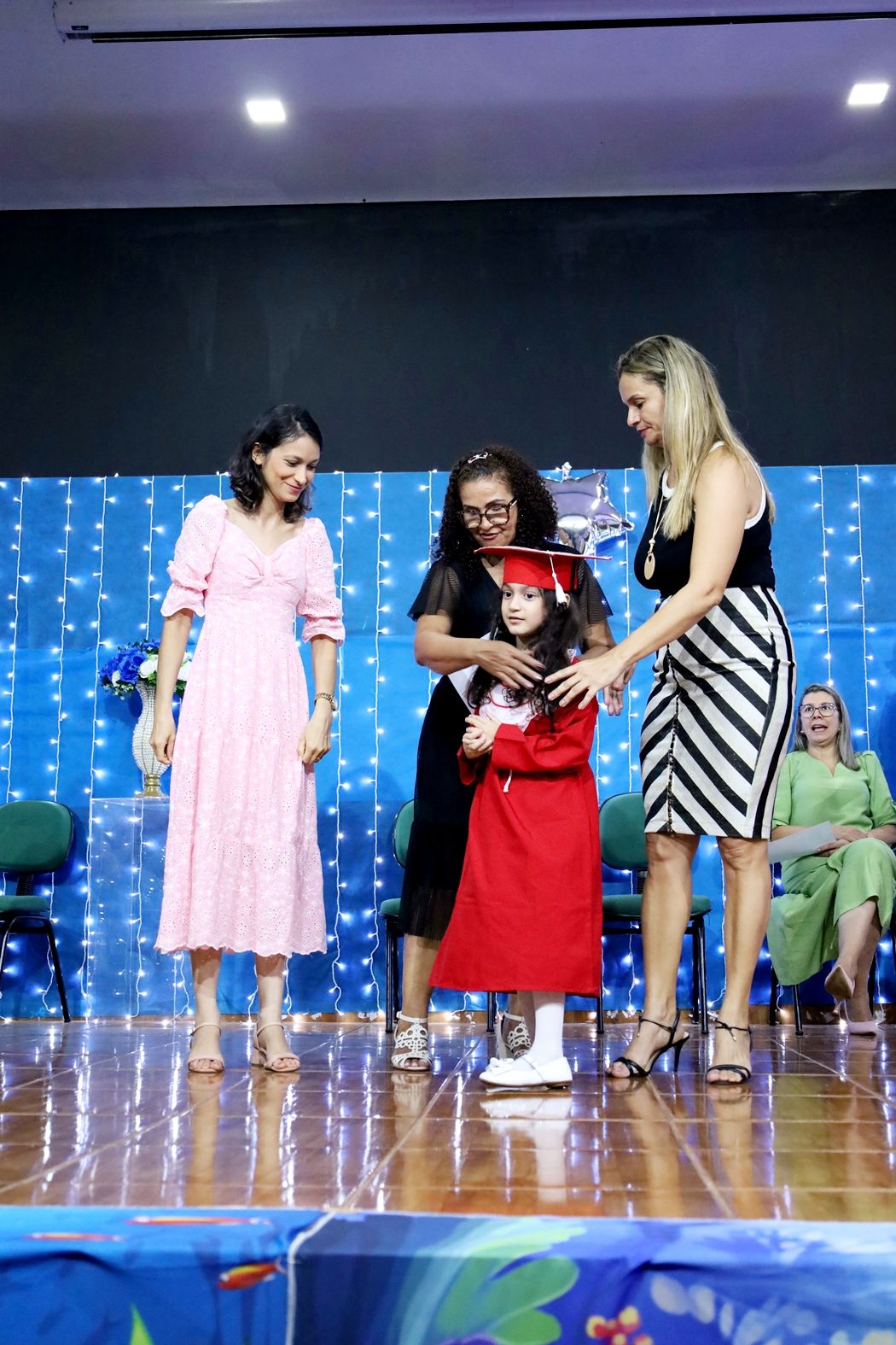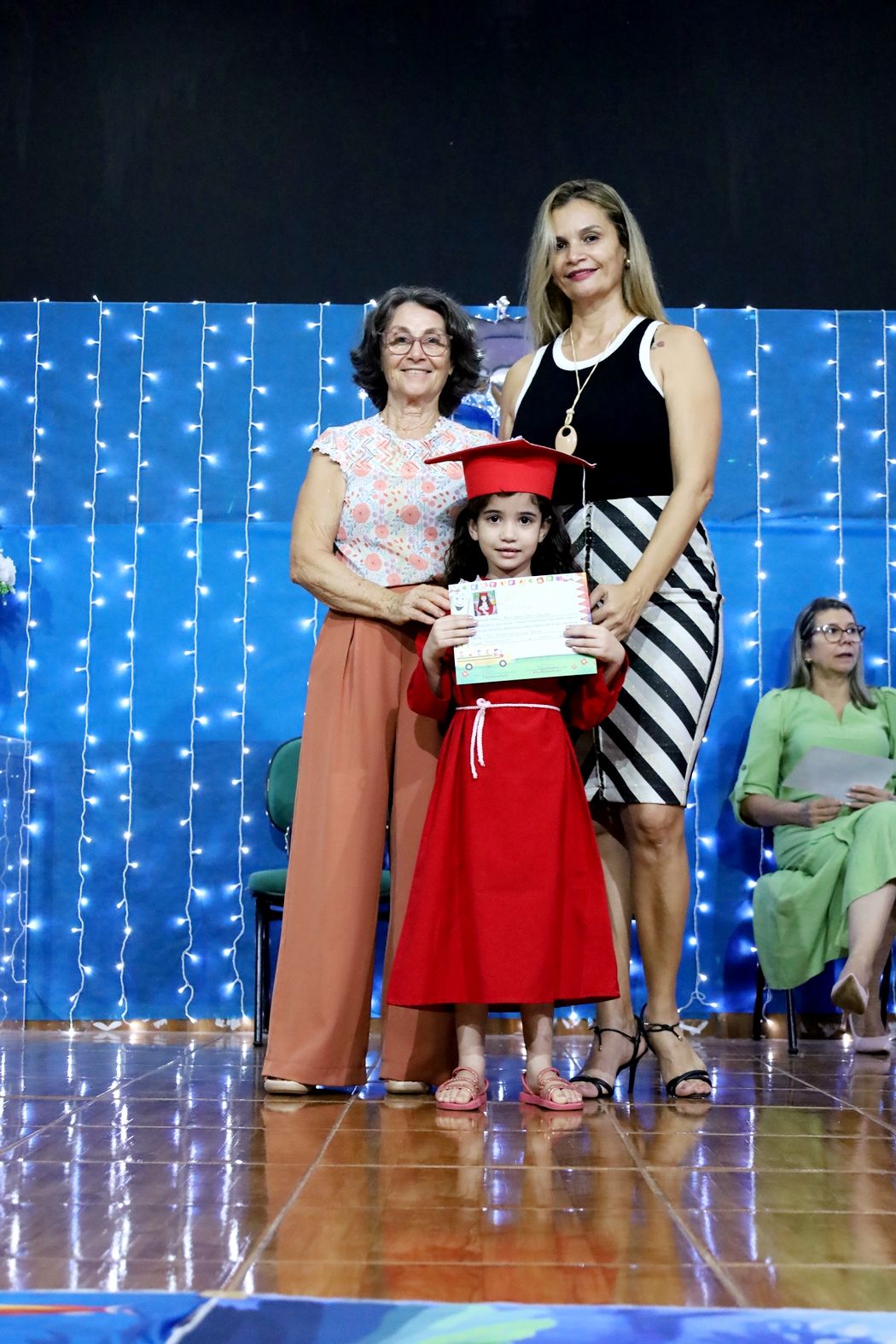 Na noite desta quinta-feira, 12 de dezembro, a Creche Betinho foi palco de uma emocionante cerimônia de formatura. O evento, que reuniu mais de 100 formandos, contou com a presença de familiares, amigos, professores e autoridades locais, incluindo a Secretária de Educação, Marcilene Rodrigues.
