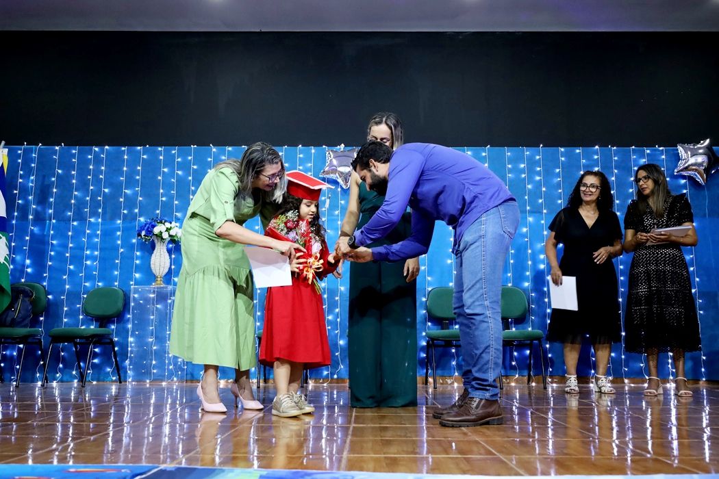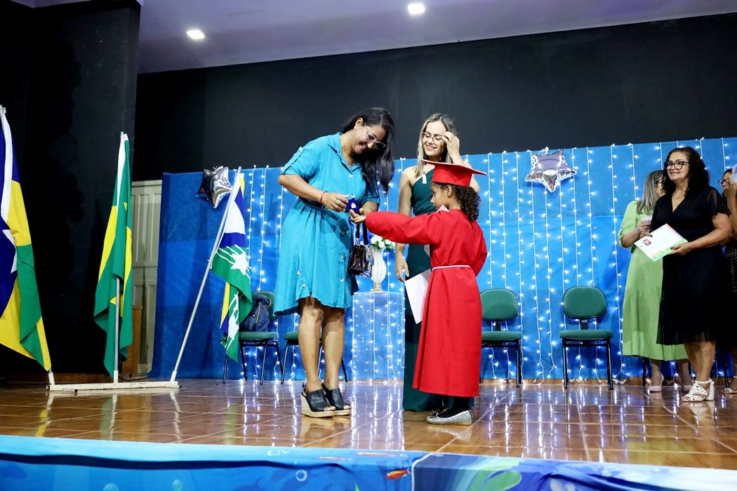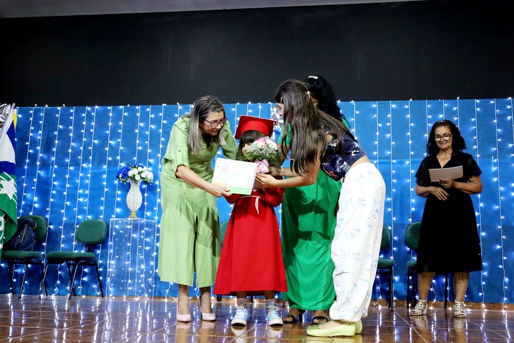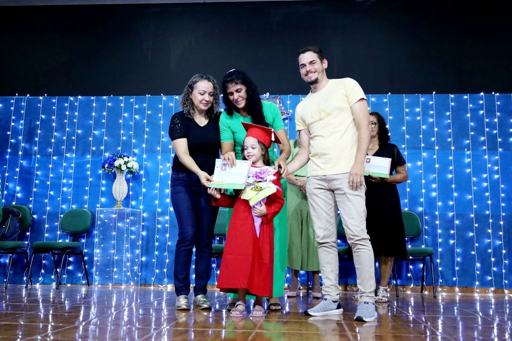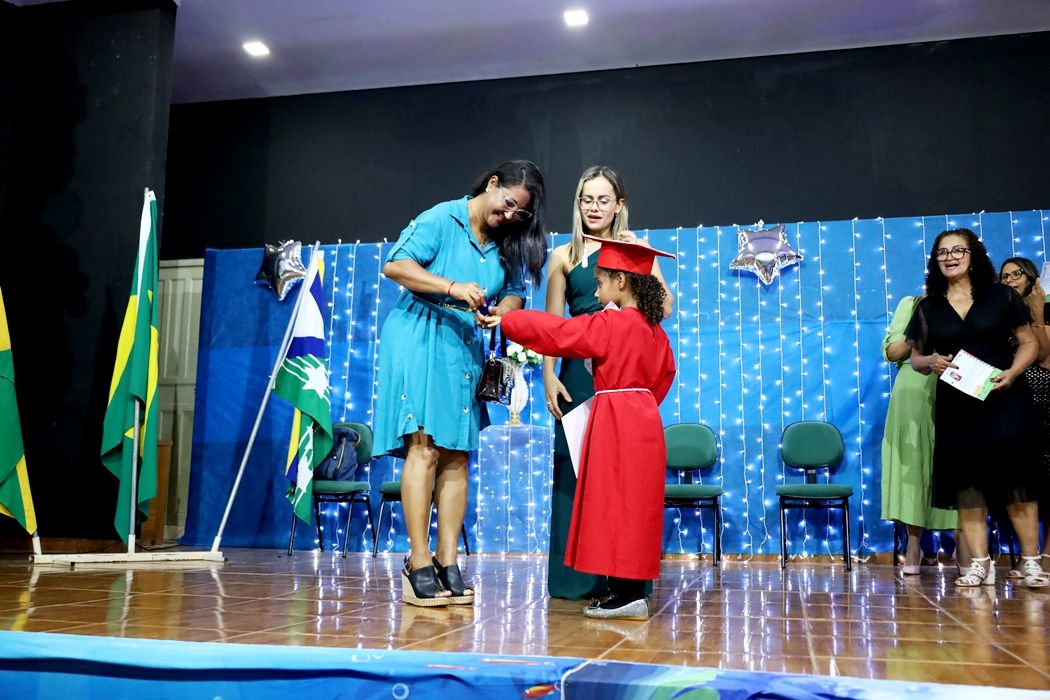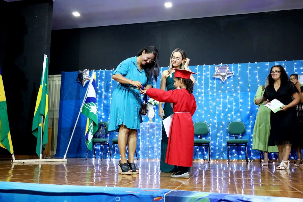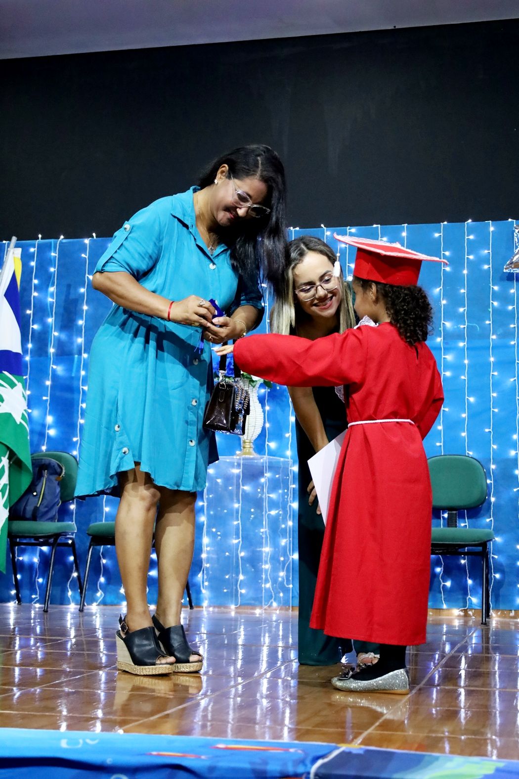 Na noite desta quinta-feira, 12 de dezembro, a Creche Betinho foi palco de uma emocionante cerimônia de formatura. O evento, que reuniu mais de 100 formandos, contou com a presença de familiares, amigos, professores e autoridades locais, incluindo a Secretária de Educação, Marcilene Rodrigues.