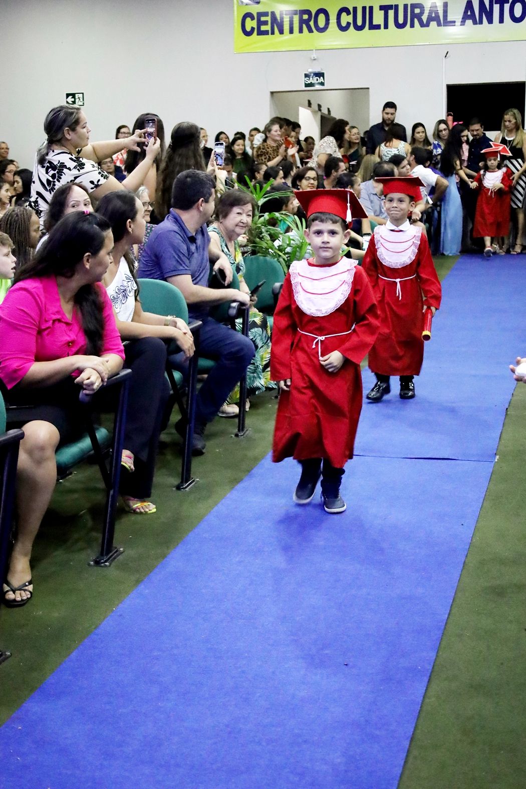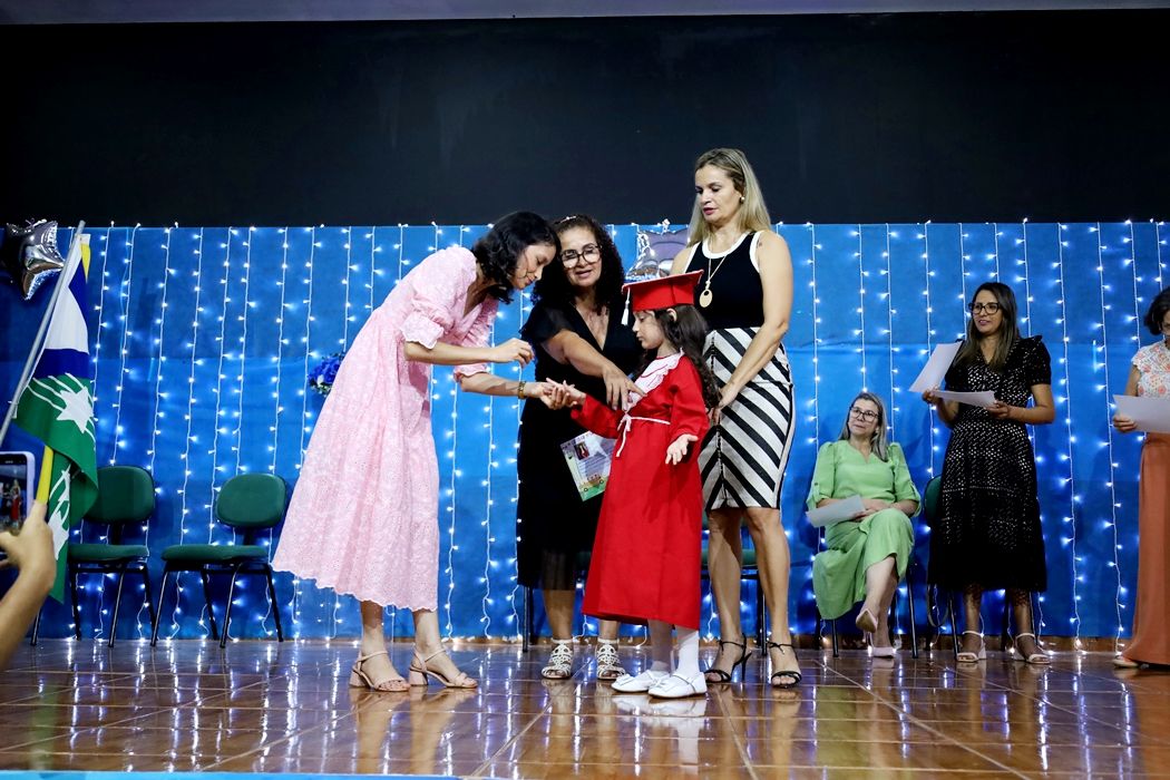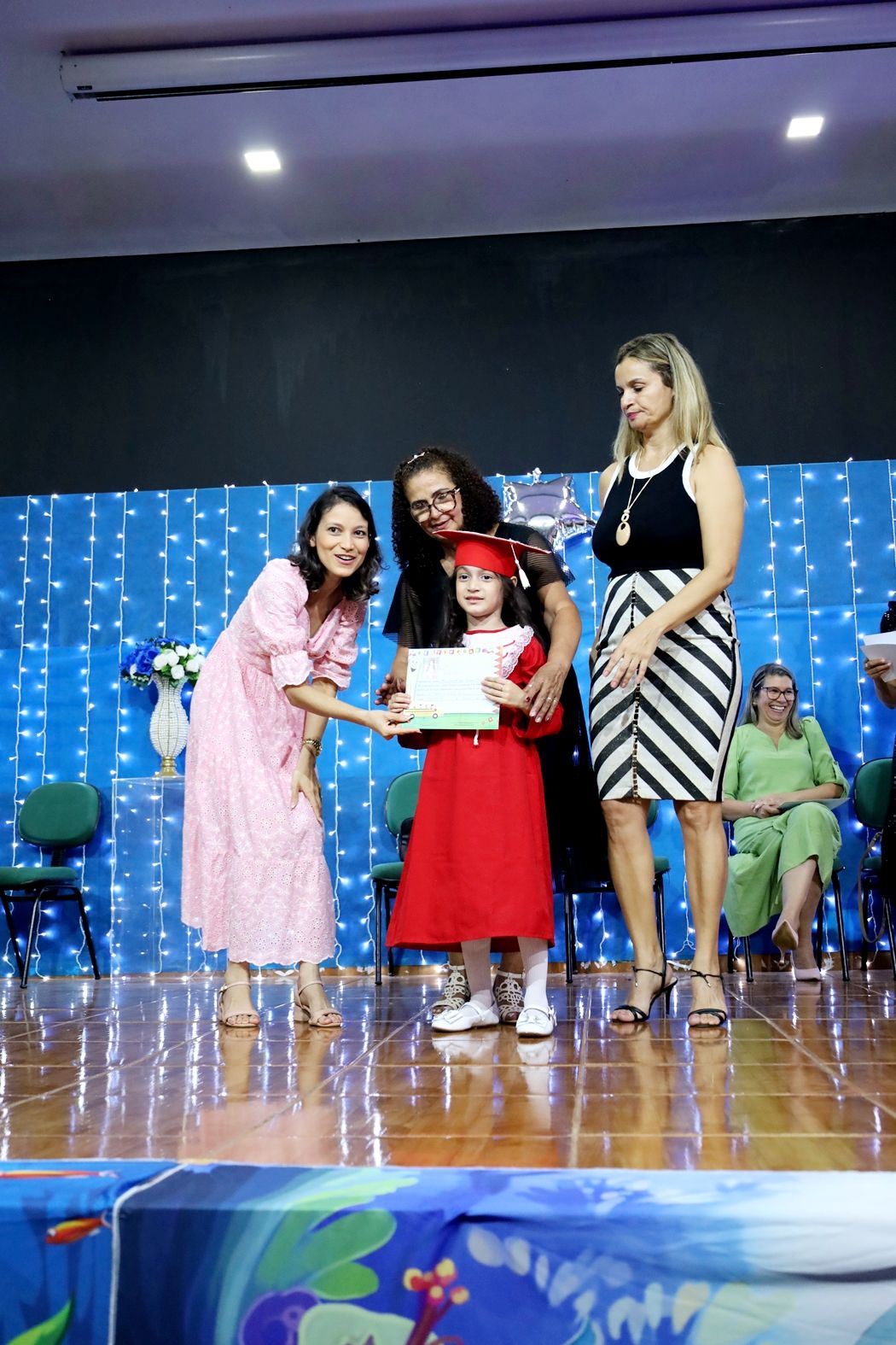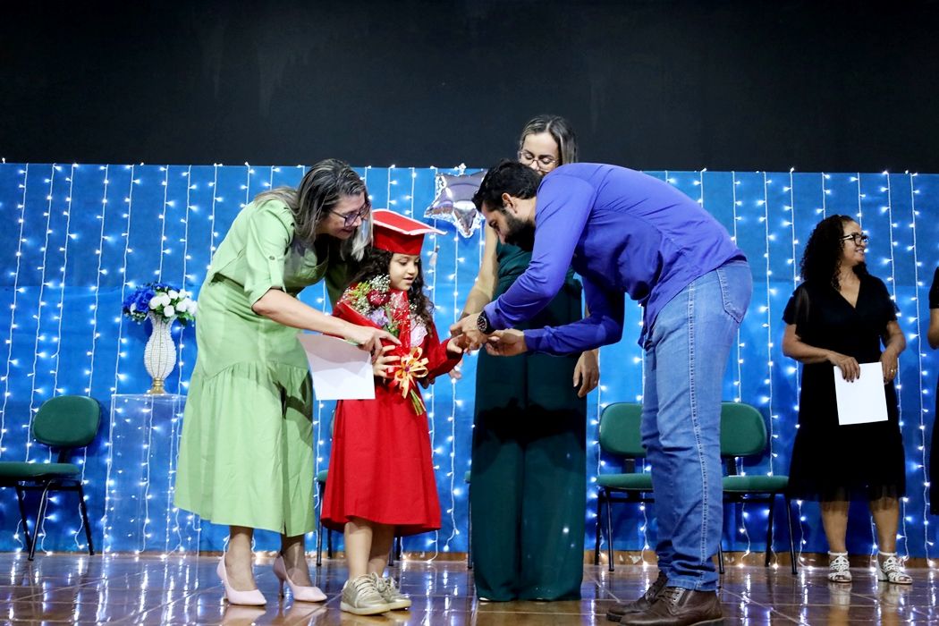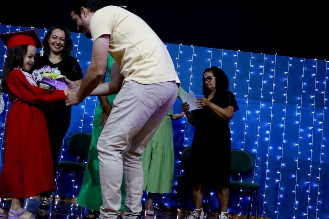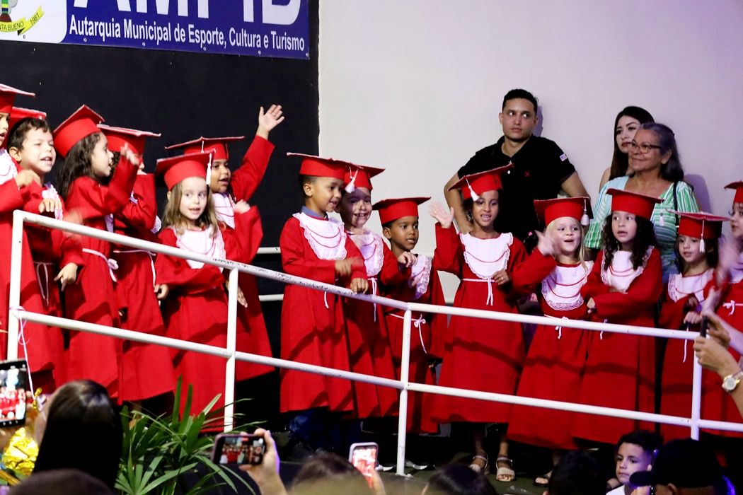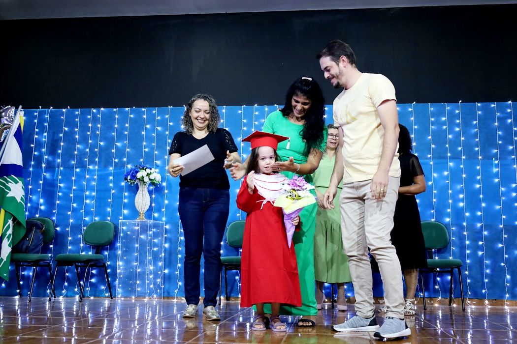 Na noite desta quinta-feira, 12 de dezembro, a Creche Betinho foi palco de uma emocionante cerimônia de formatura. O evento, que reuniu mais de 100 formandos, contou com a presença de familiares, amigos, professores e autoridades locais, incluindo a Secretária de Educação, Marcilene Rodrigues.