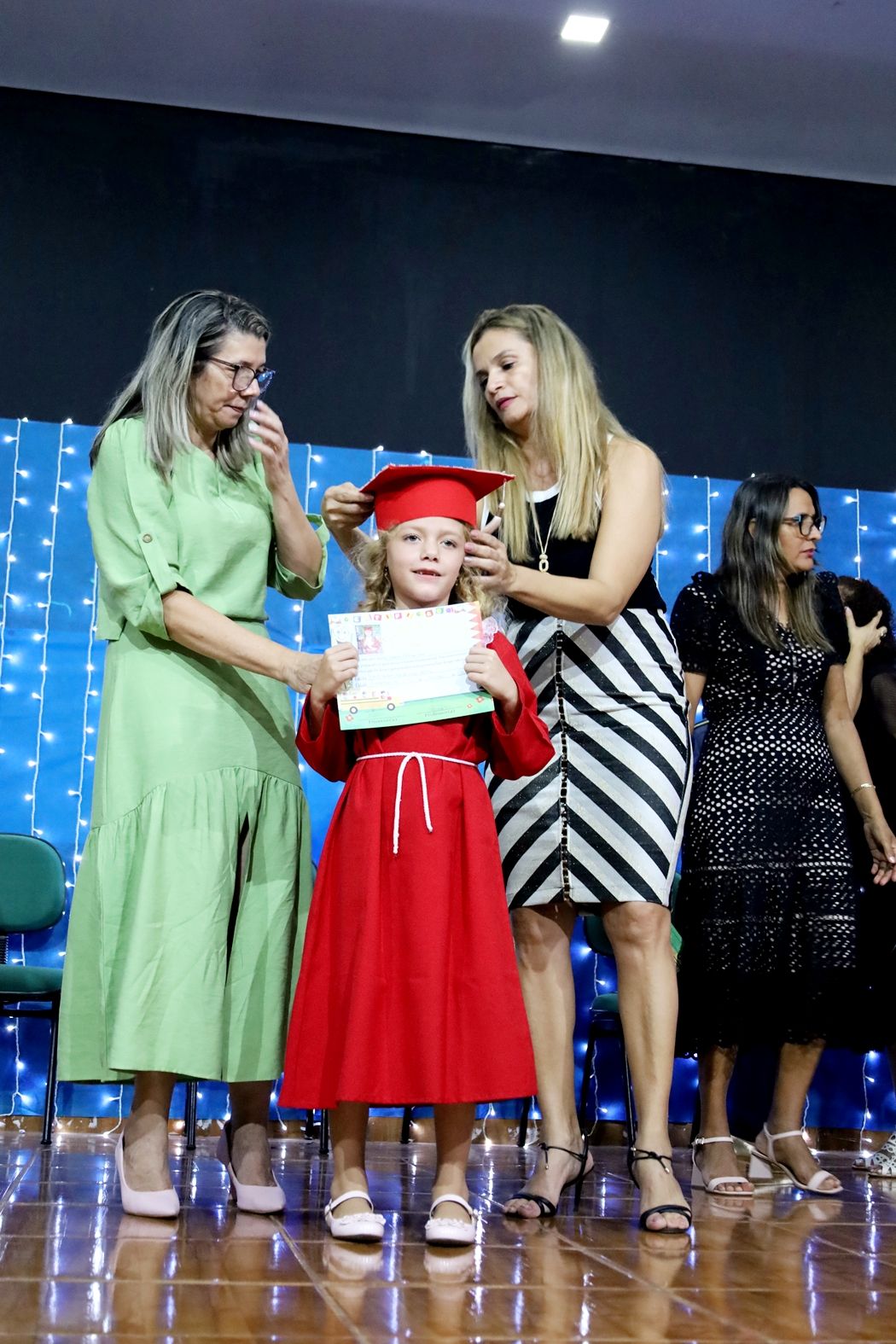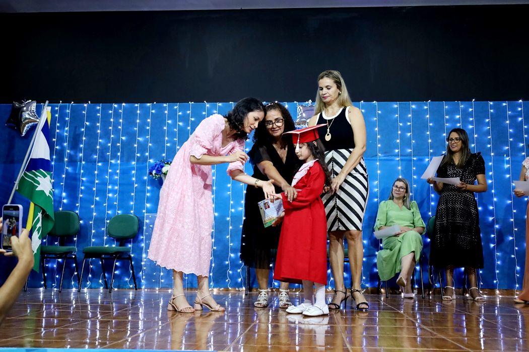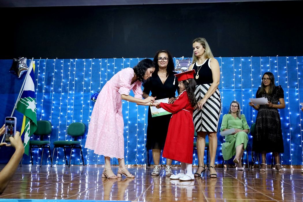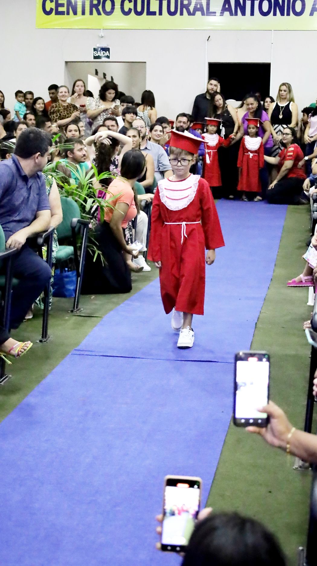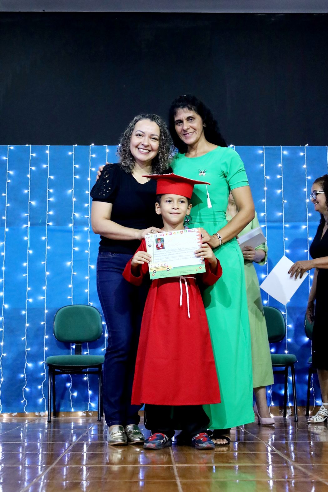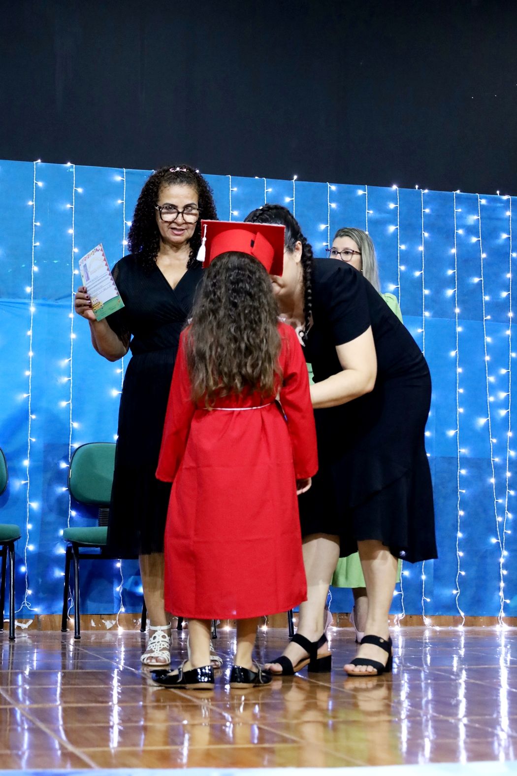 Na noite desta quinta-feira, 12 de dezembro, a Creche Betinho foi palco de uma emocionante cerimônia de formatura. O evento, que reuniu mais de 100 formandos, contou com a presença de familiares, amigos, professores e autoridades locais, incluindo a Secretária de Educação, Marcilene Rodrigues.
