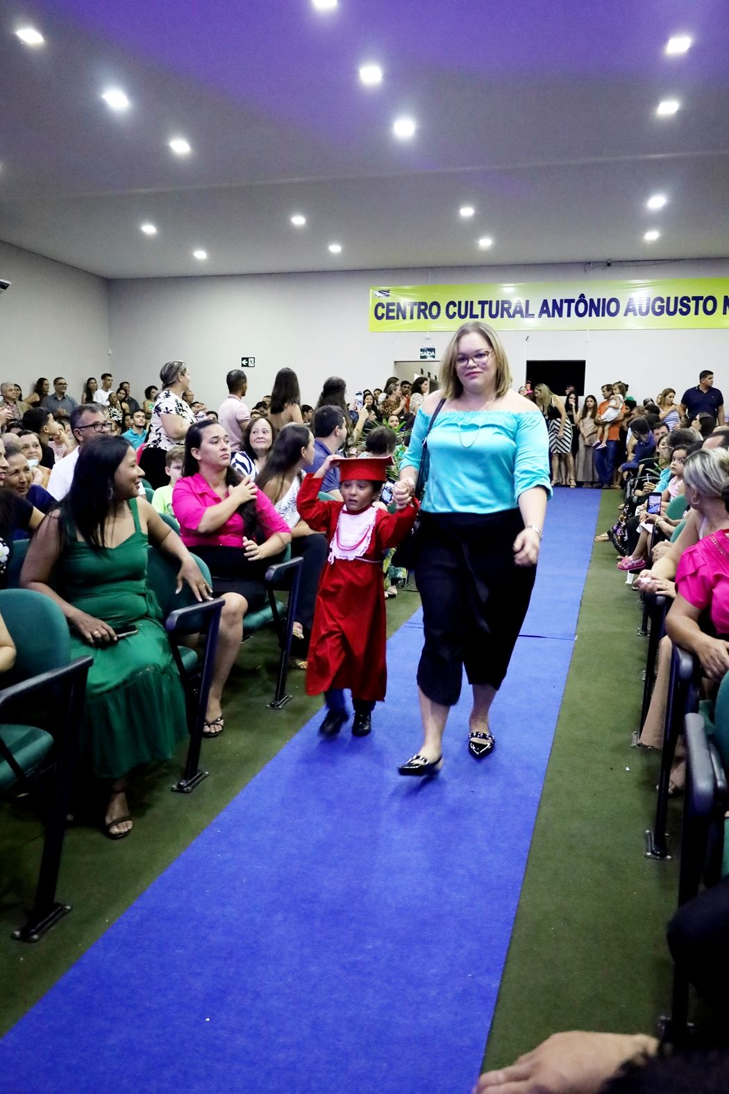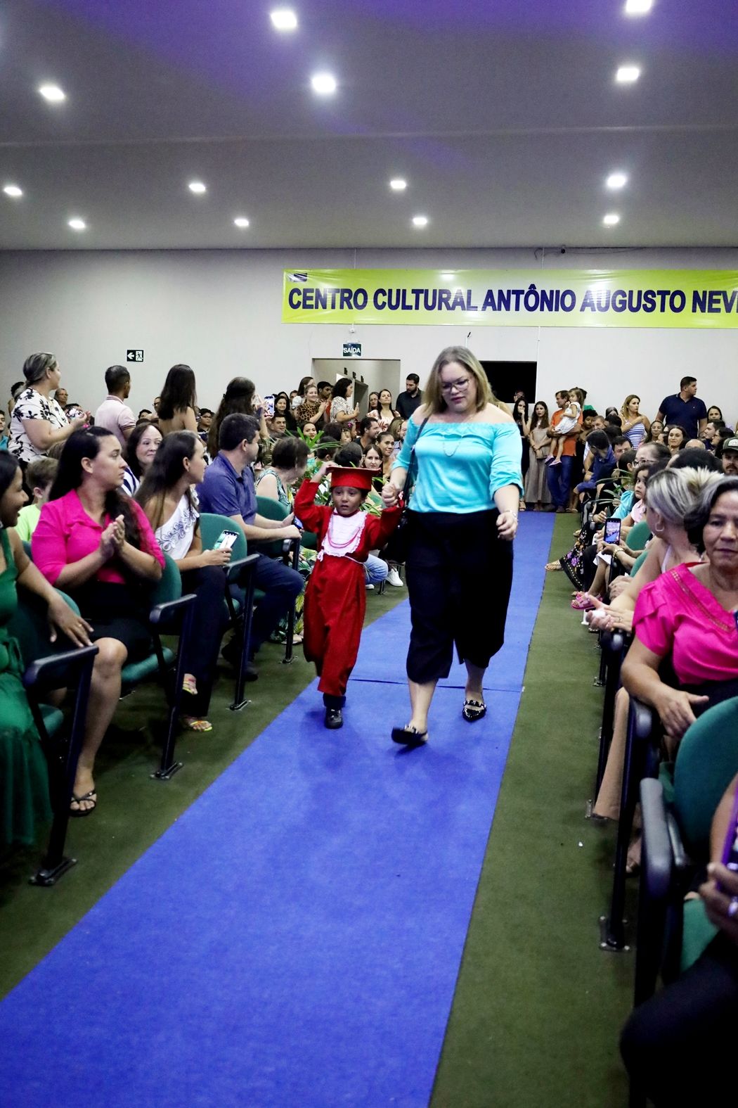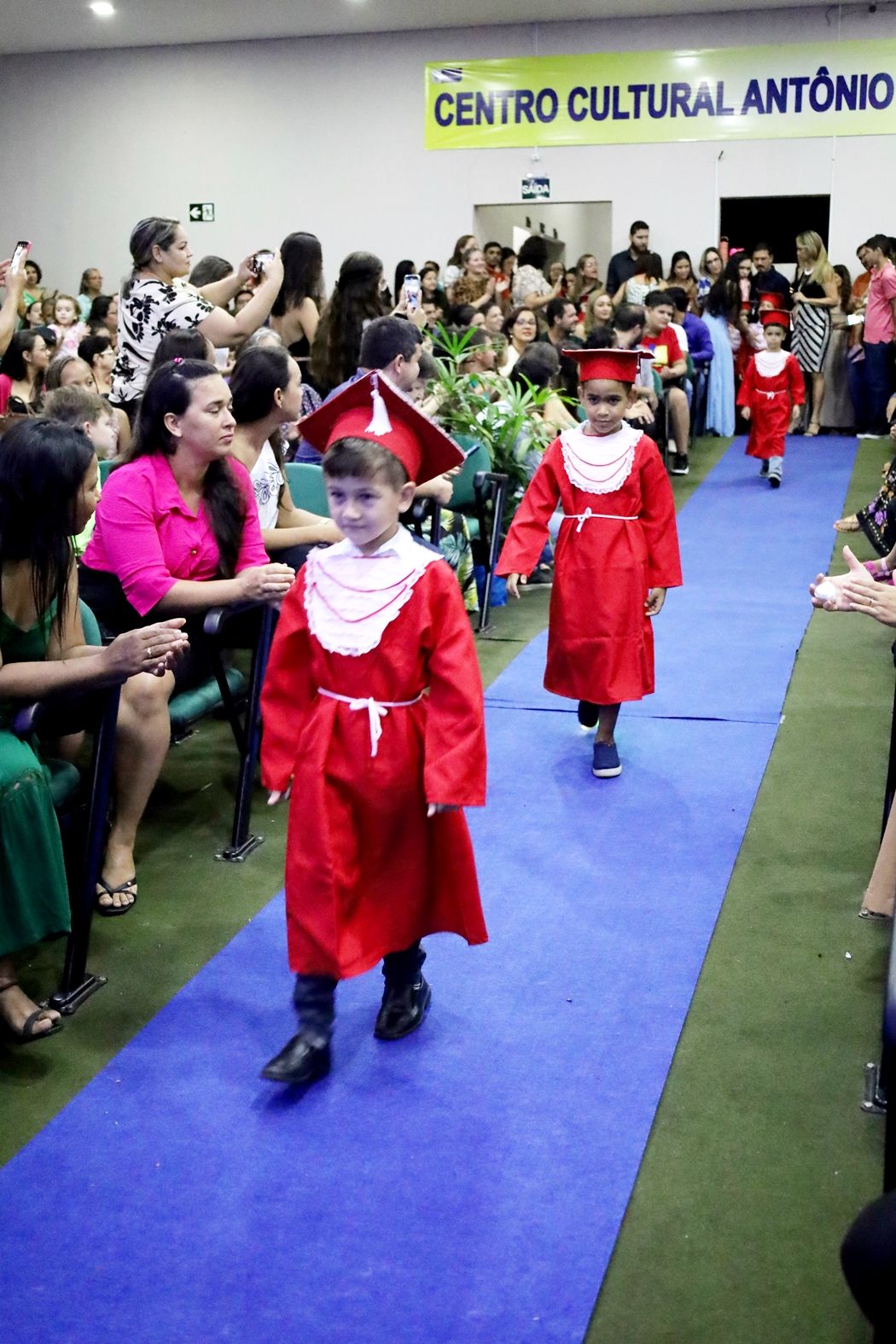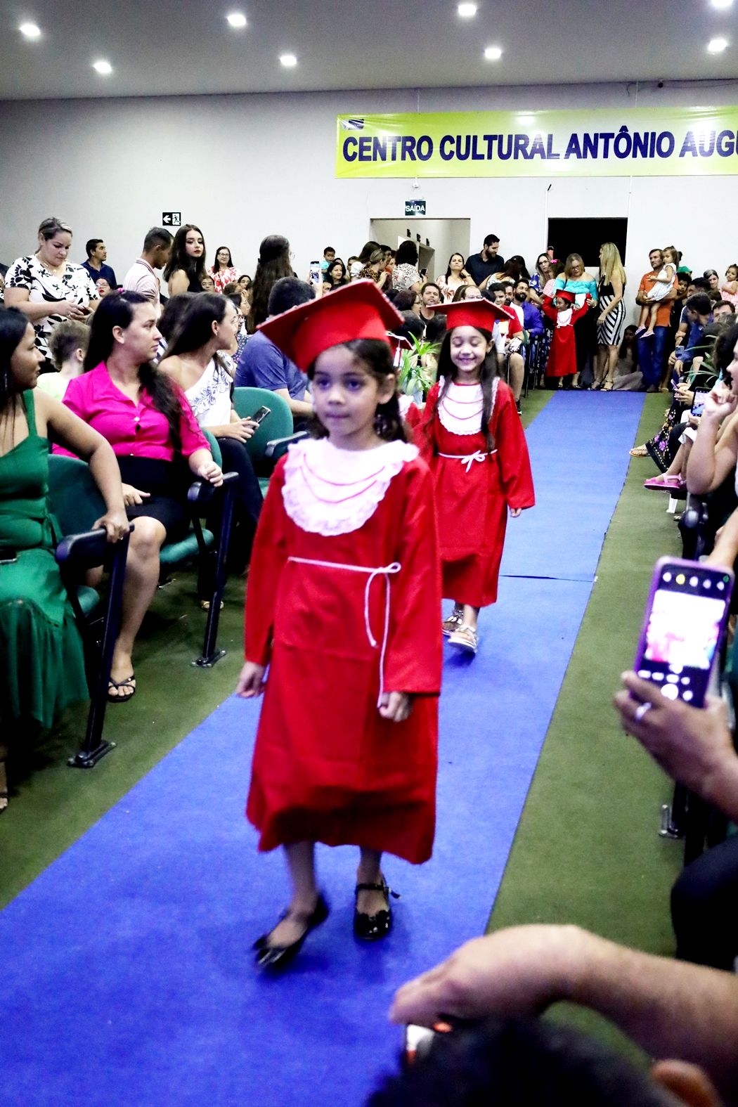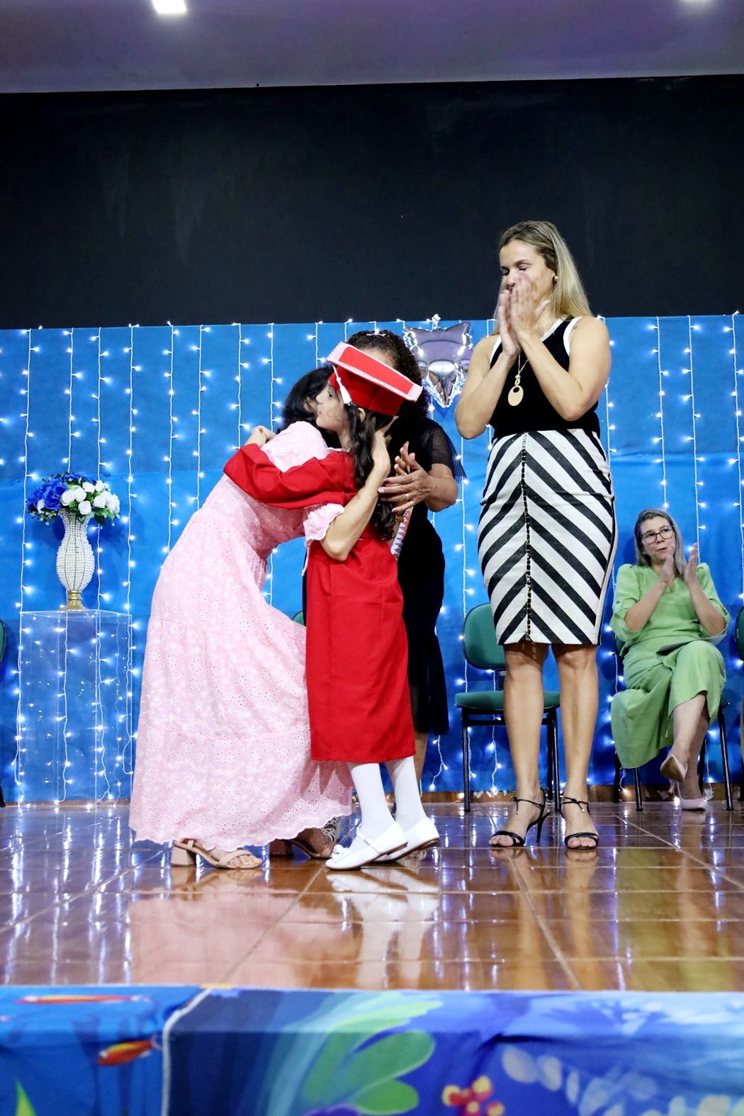 Na noite desta quinta-feira, 12 de dezembro, a Creche Betinho foi palco de uma emocionante cerimônia de formatura. O evento, que reuniu mais de 100 formandos, contou com a presença de familiares, amigos, professores e autoridades locais, incluindo a Secretária de Educação, Marcilene Rodrigues.
