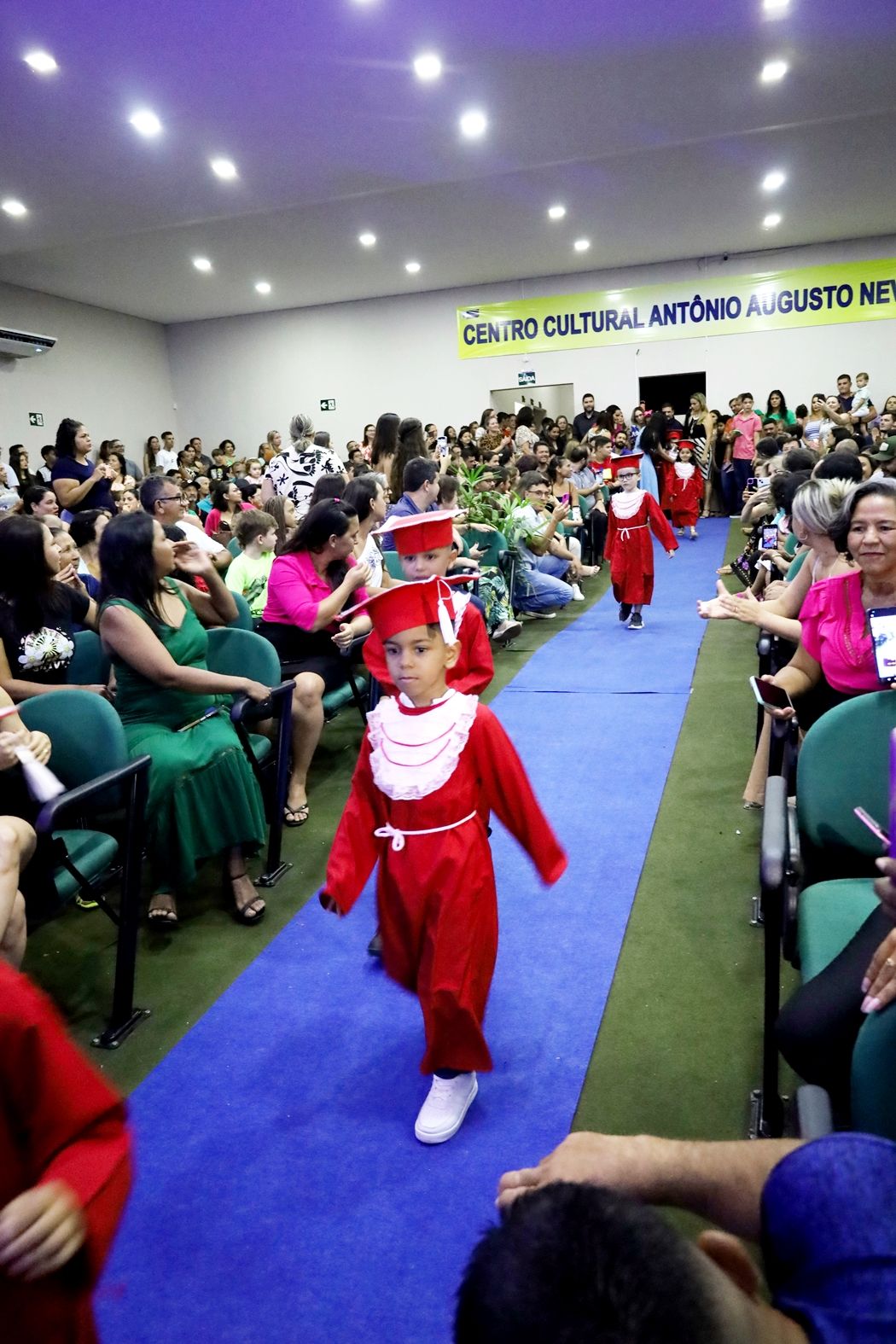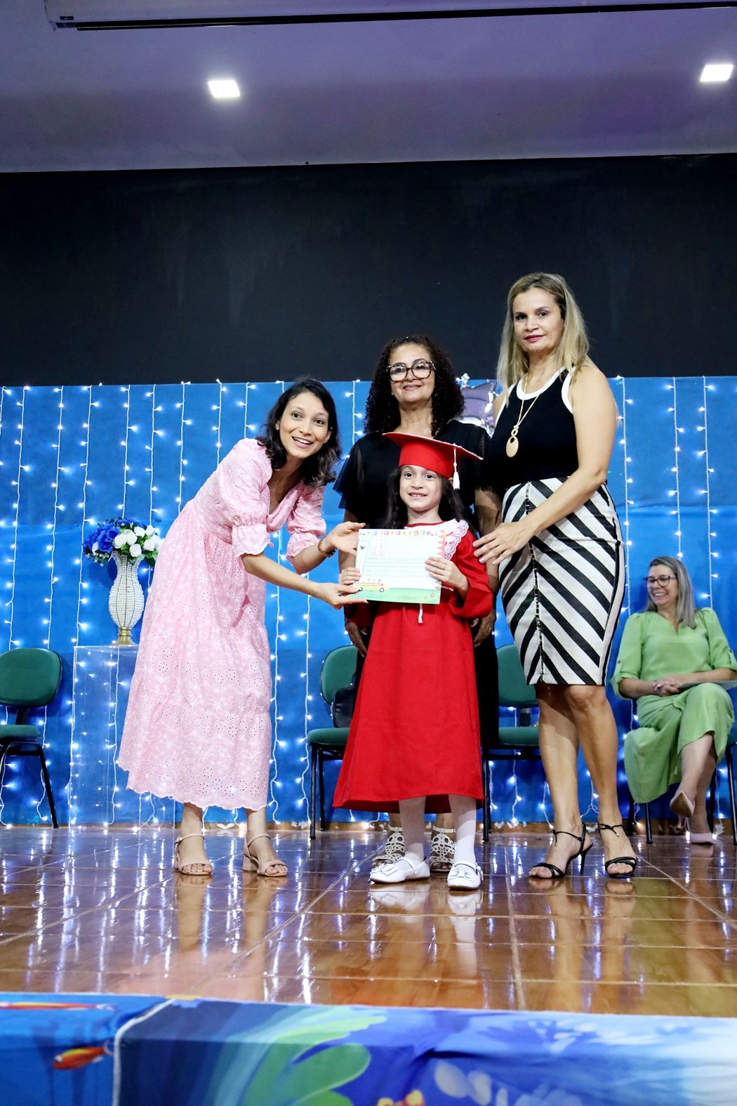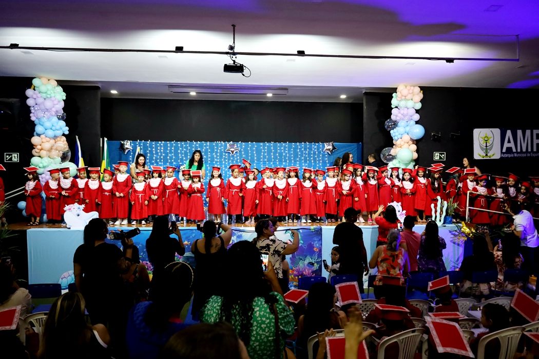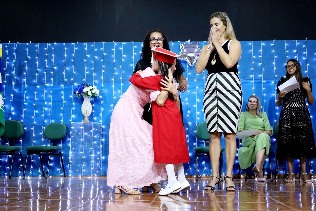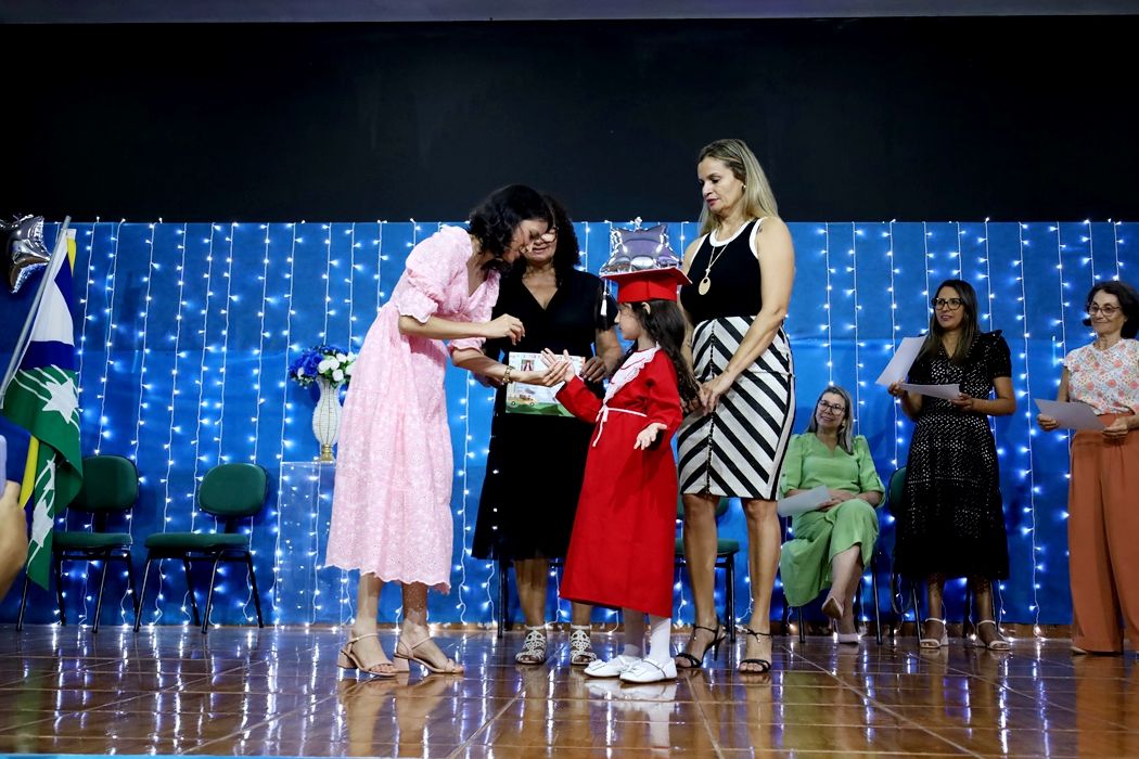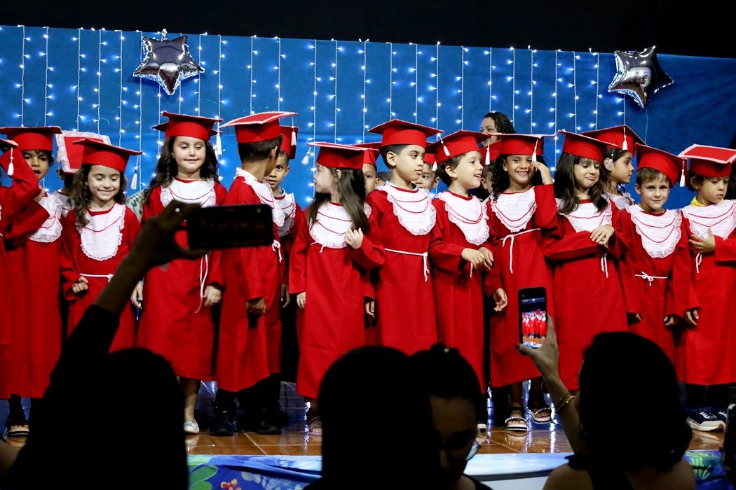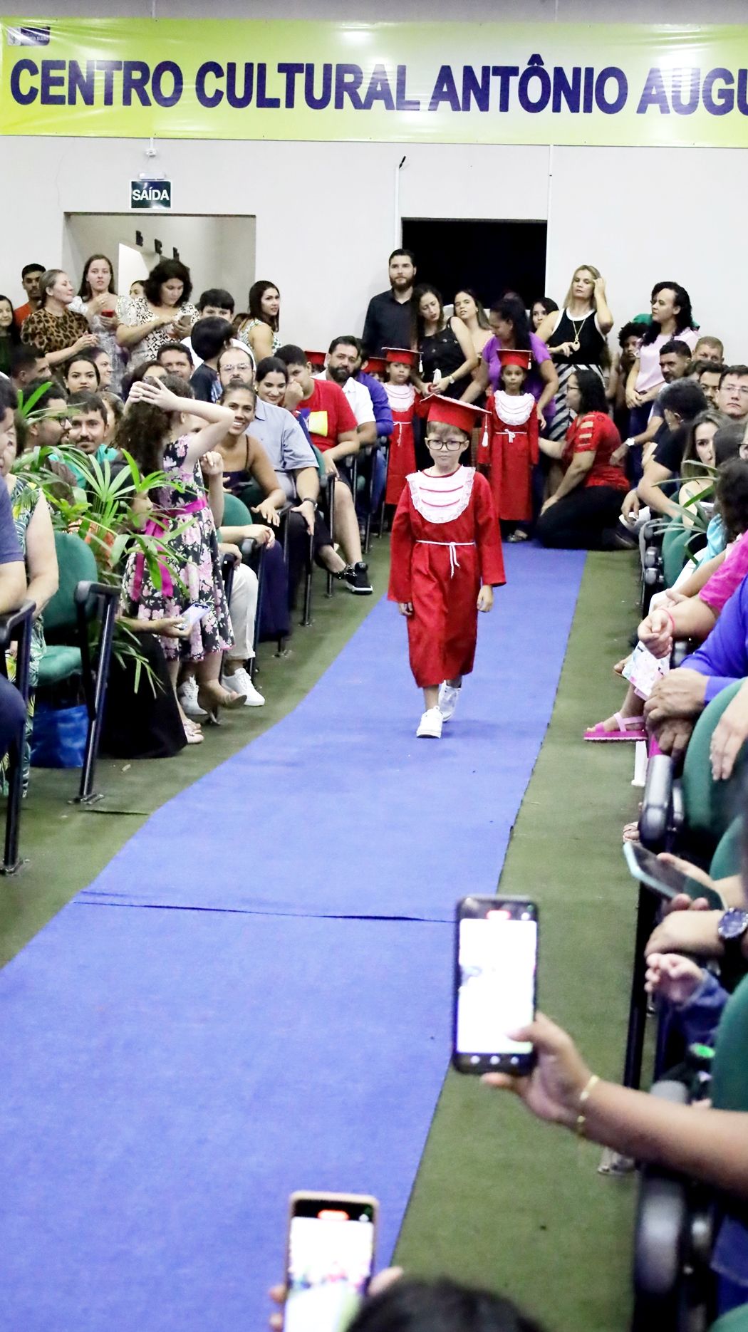 Na noite desta quinta-feira, 12 de dezembro, a Creche Betinho foi palco de uma emocionante cerimônia de formatura. O evento, que reuniu mais de 100 formandos, contou com a presença de familiares, amigos, professores e autoridades locais, incluindo a Secretária de Educação, Marcilene Rodrigues.