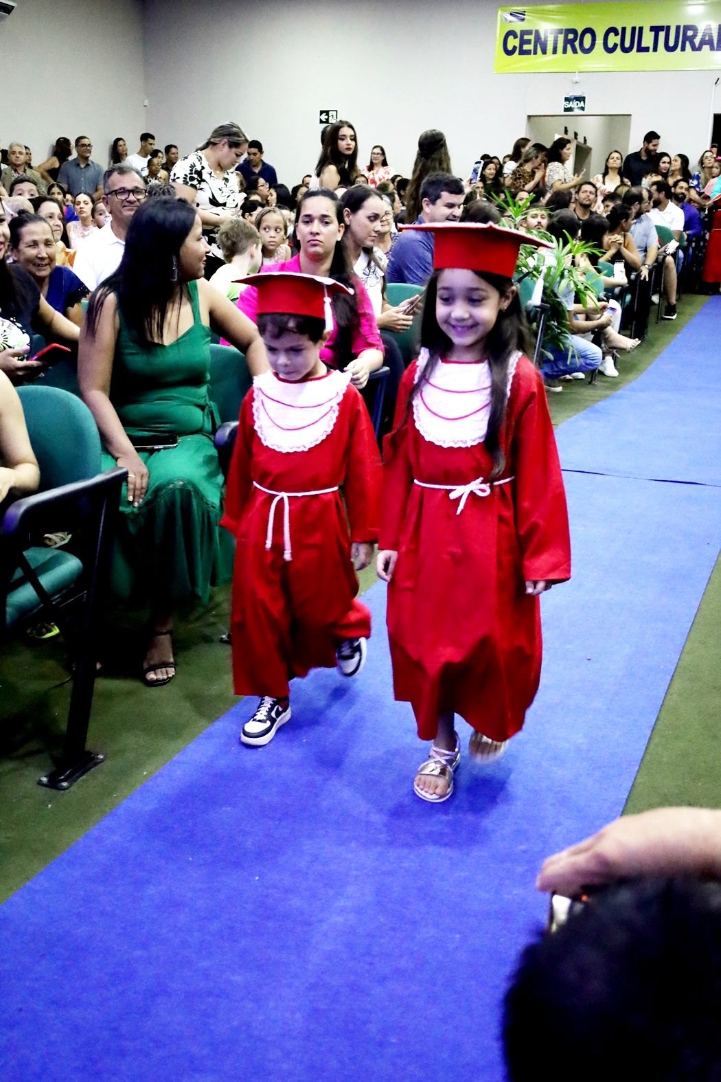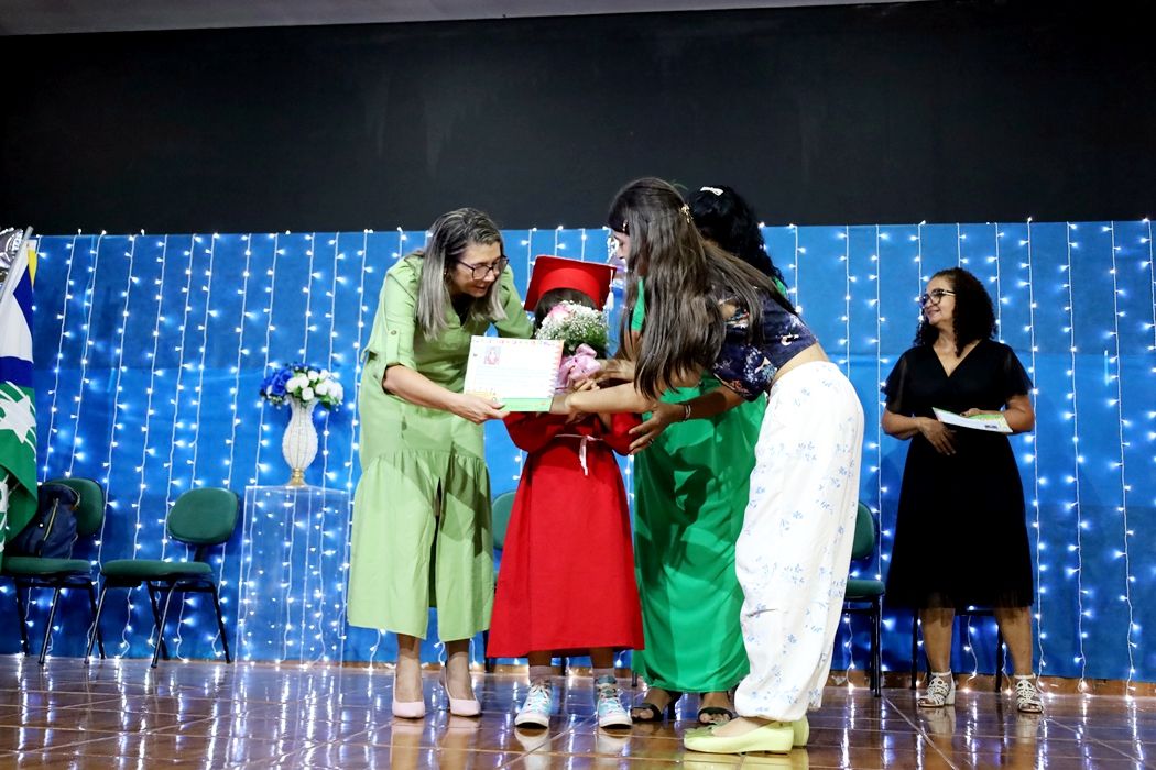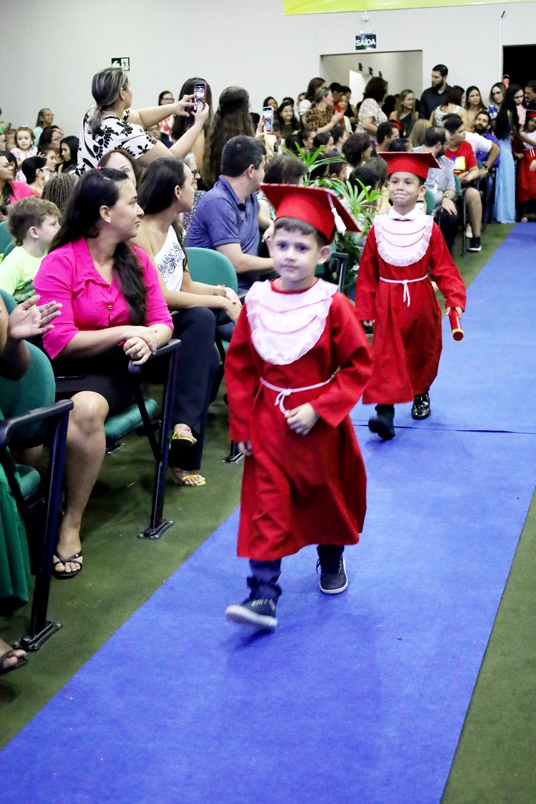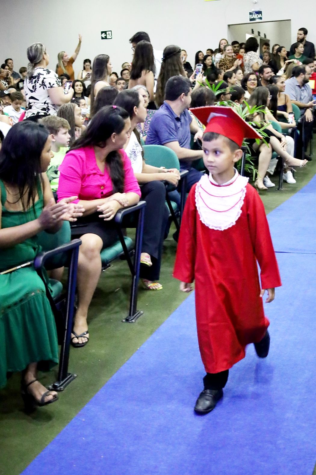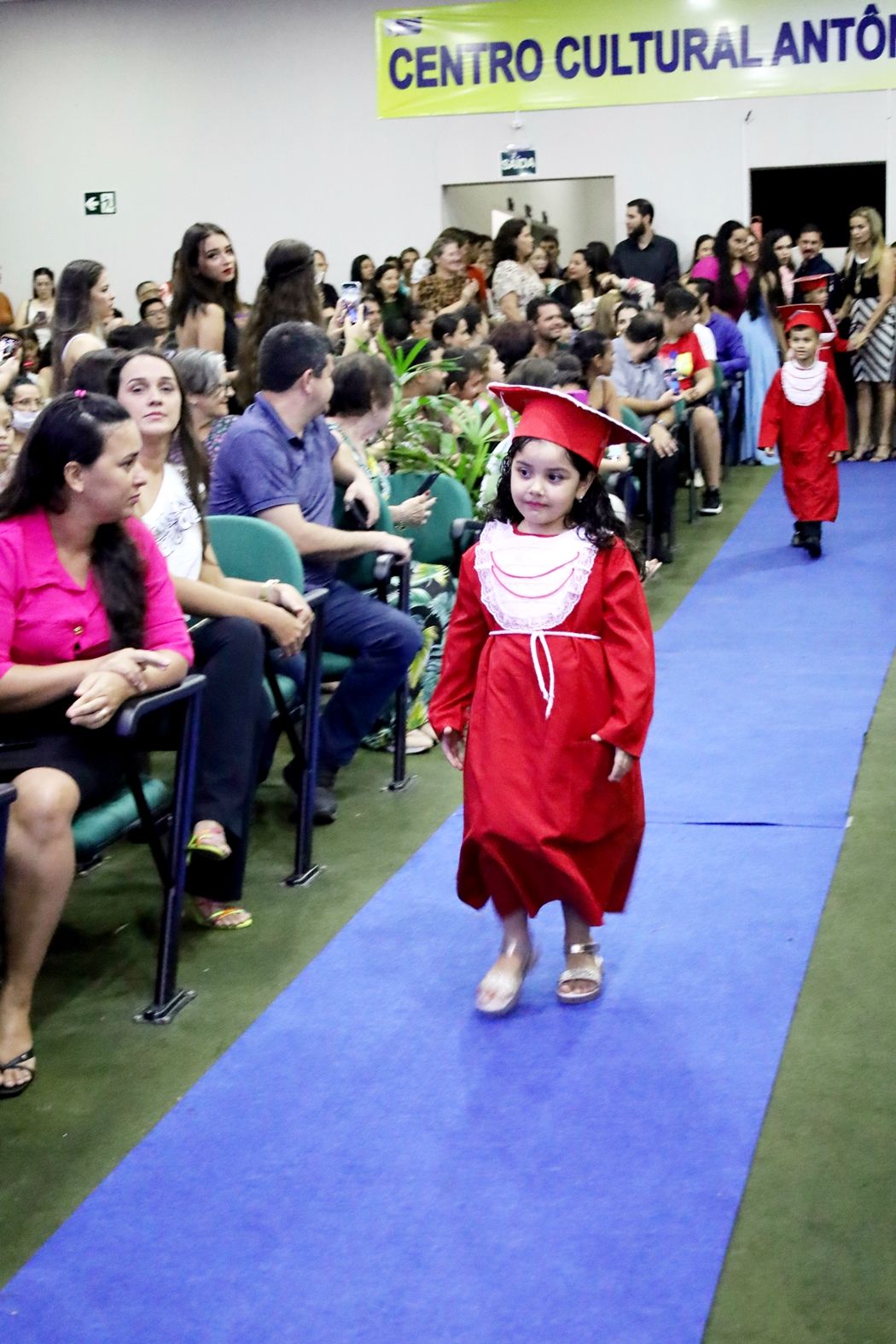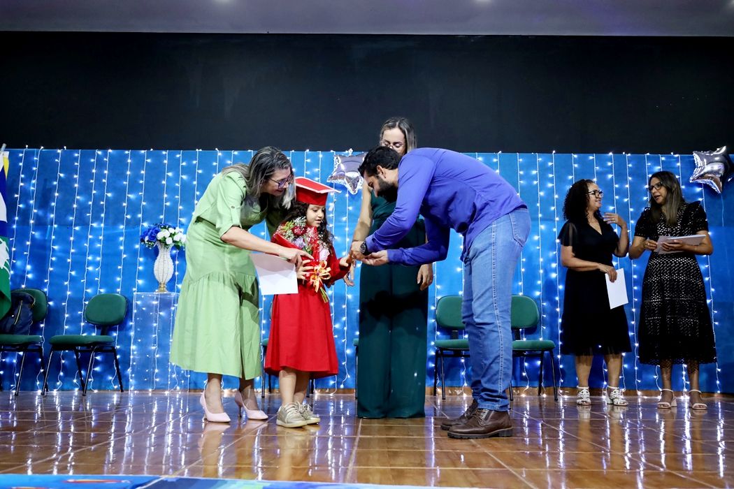 Na noite desta quinta-feira, 12 de dezembro, a Creche Betinho foi palco de uma emocionante cerimônia de formatura. O evento, que reuniu mais de 100 formandos, contou com a presença de familiares, amigos, professores e autoridades locais, incluindo a Secretária de Educação, Marcilene Rodrigues.