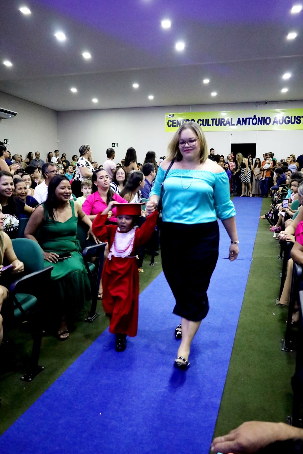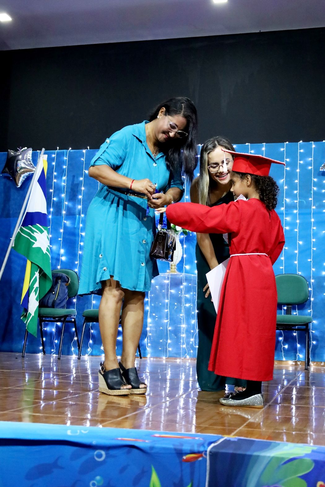Durante a cerimônia, a Secretária de Educação, Marcilene Rodrigues, fez um discurso emocionante, destacando a importância da educação na primeira infância e o papel fundamental da creche no desenvolvimento das crianças. "Hoje celebramos não apenas uma etapa concluída, mas também o começo de uma jornada cheia de potencial e novas descobertas. Vocês, pequenos formandos, são o futuro da nossa comunidade," afirmou Marcilene.