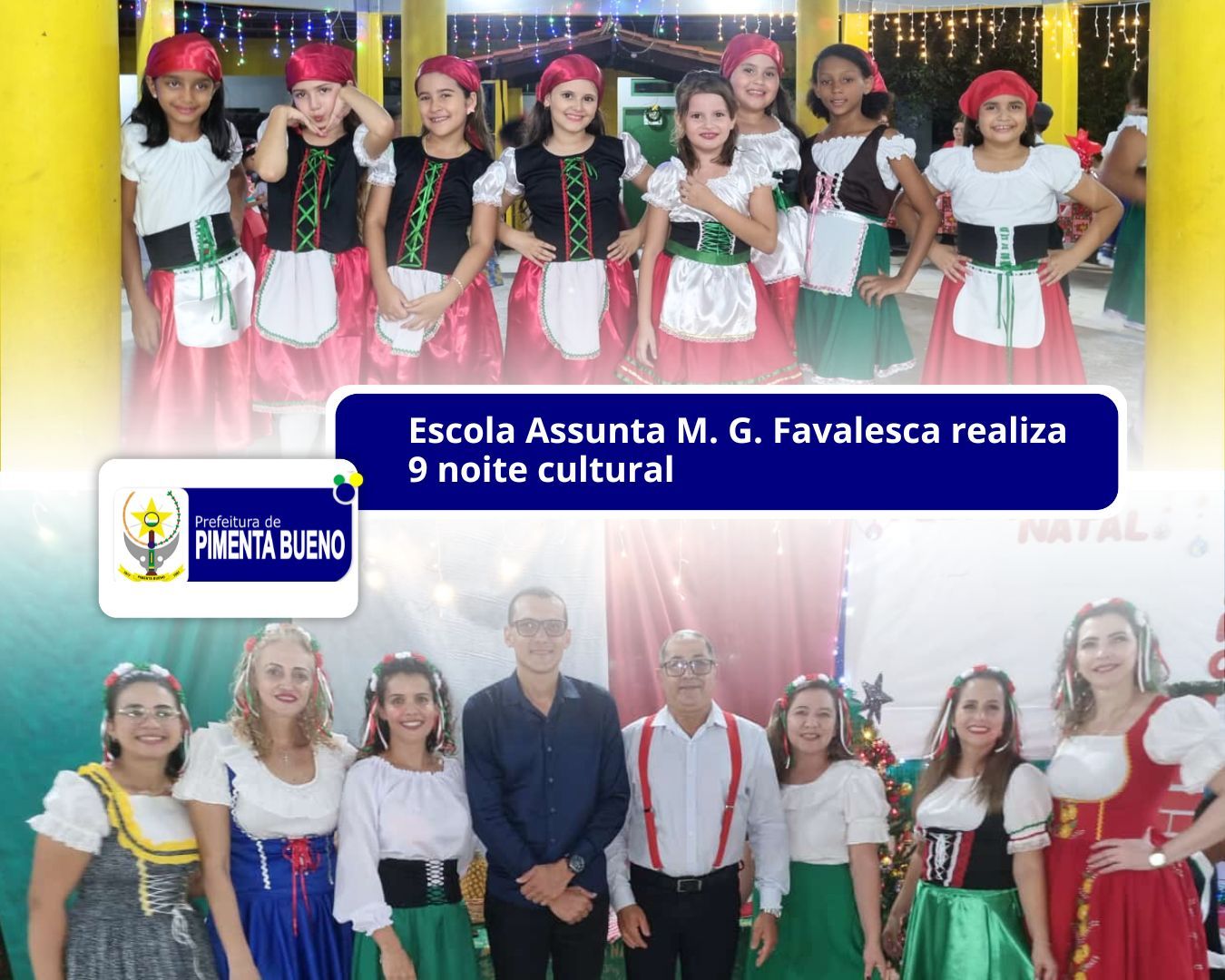 Na última sexta-feira, dia 6, a Escola Municipal Assunta Maria Gianini Favalesça promoveu mais uma edição da tradicional Noite Cultural, que neste ano chegou à sua nona edição. O evento, com o tema "Noite Italiana", atraiu centenas de pessoas que puderam prestigiar uma série de apresentações culturais realizadas por alunos e professores, todas inspiradas na rica cultura italiana.