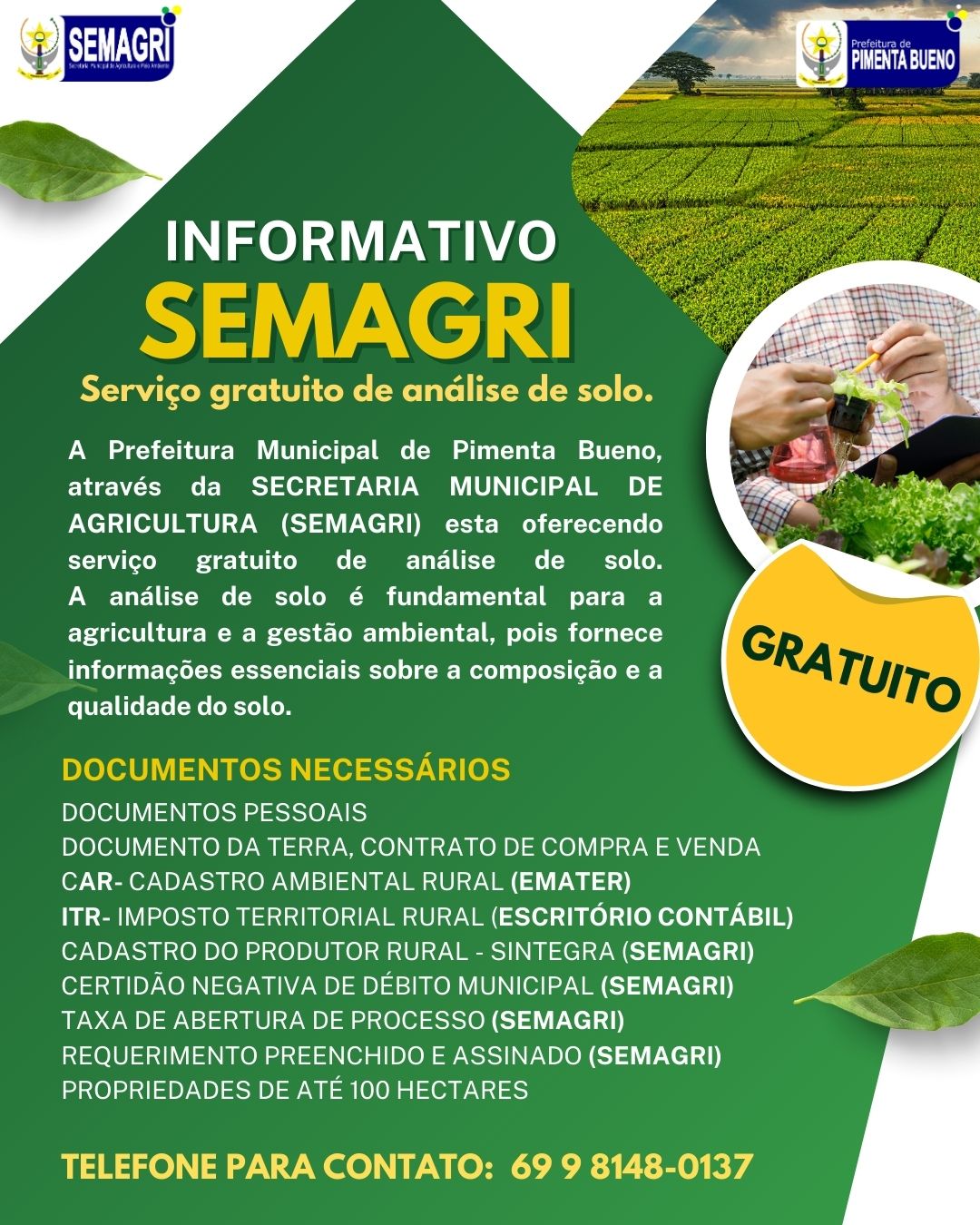 Informativo SEMAGRI - Serviço gratuito de análise de solo.