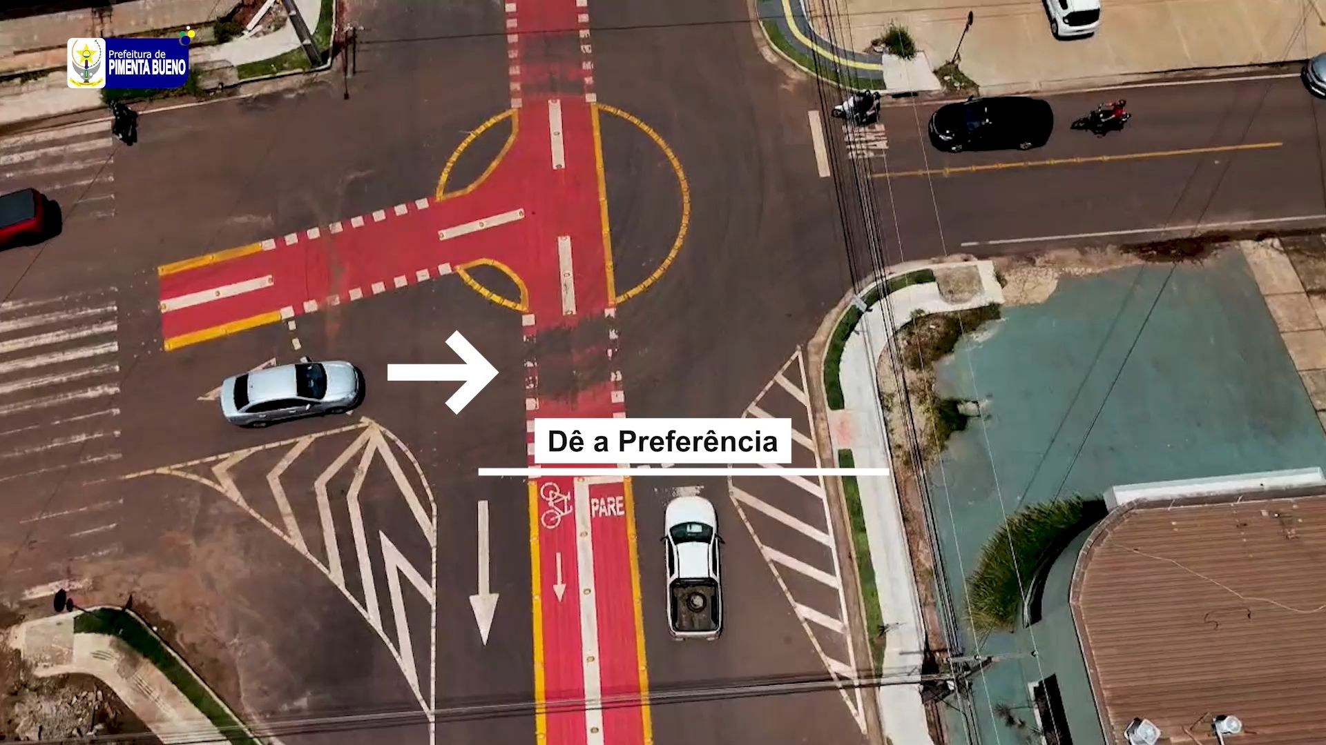 Caso ninguém esteja na rotatória, a preferência é para quem desce a avenida Turibio Odilon Ribeiro.
