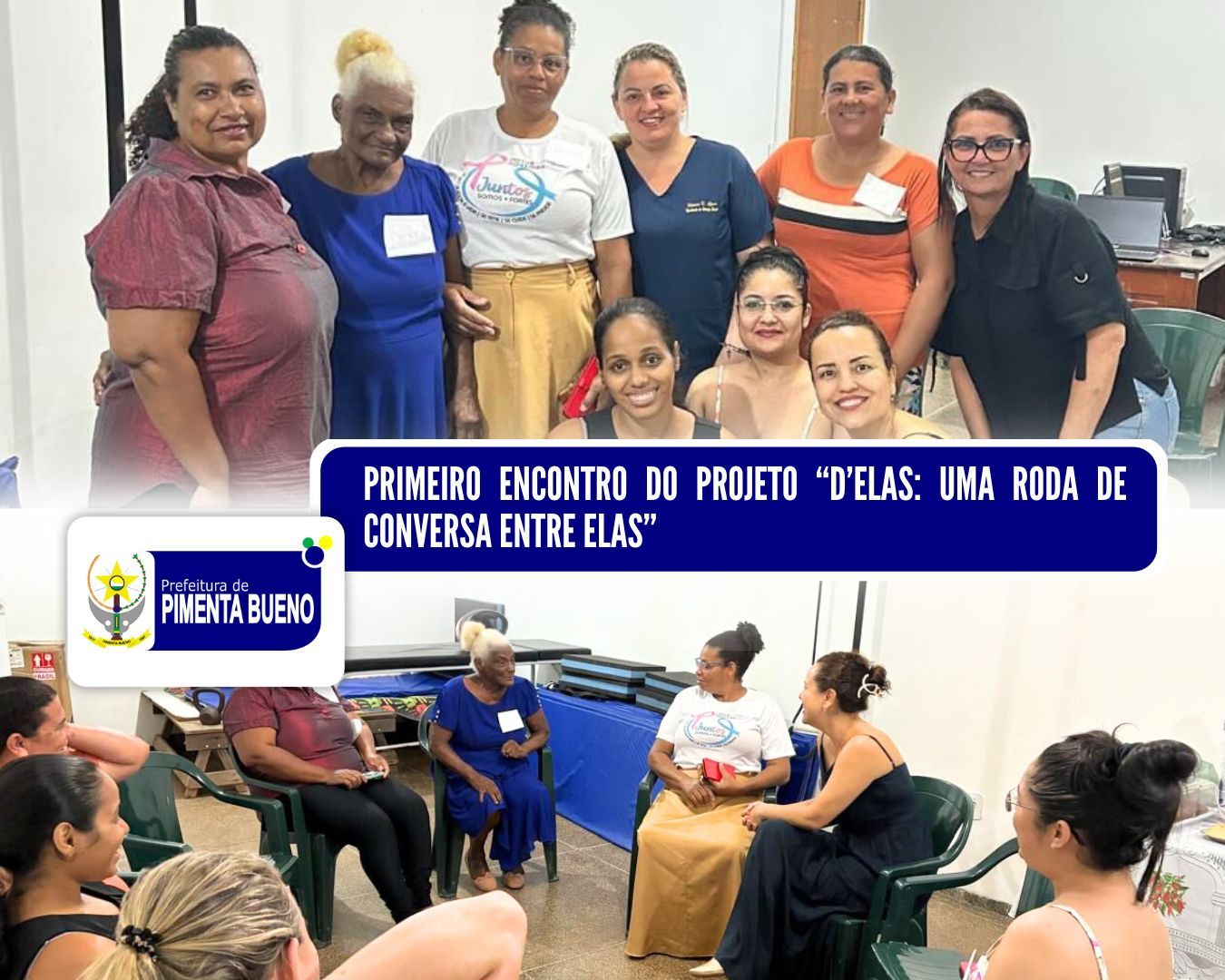 "No dia 25 de março, mês da mulher, ocorreu o primeiro encontro do Projeto “D’ELAS: UMA RODA DE CONVERSA ENTRE ELAS”. Trata-se de uma ação idealizada pelas residentes de Serviço Social da Secretaria de Saúde de Pimenta Bueno, cujo objetivo é promover o bem-estar físico, mental e social das mulheres, em especial as atendidas nas UBSs do município, através de diálogos, trocas de experiências e reflexões sobre o universo feminino.