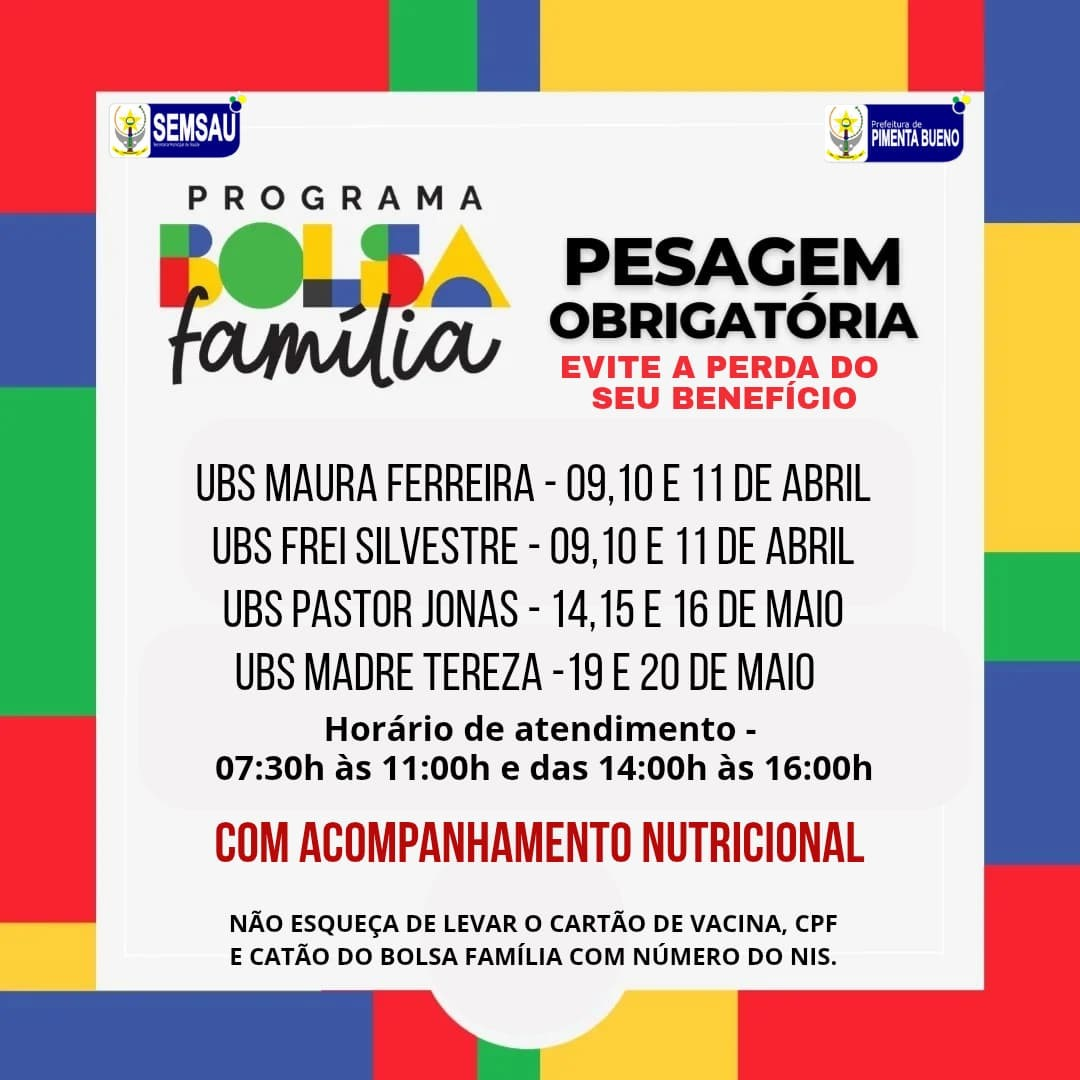 NÃO ESQUEÇA DE LEVAR O CARTÃO DE VACINA, CPF E CATÃO DO BOLSA FAMÍLIA COM NÚMERO DO NIS