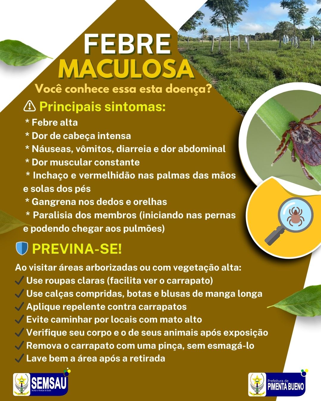 fatal, causada pela bactéria Rickettsia, transmitida pela picada do