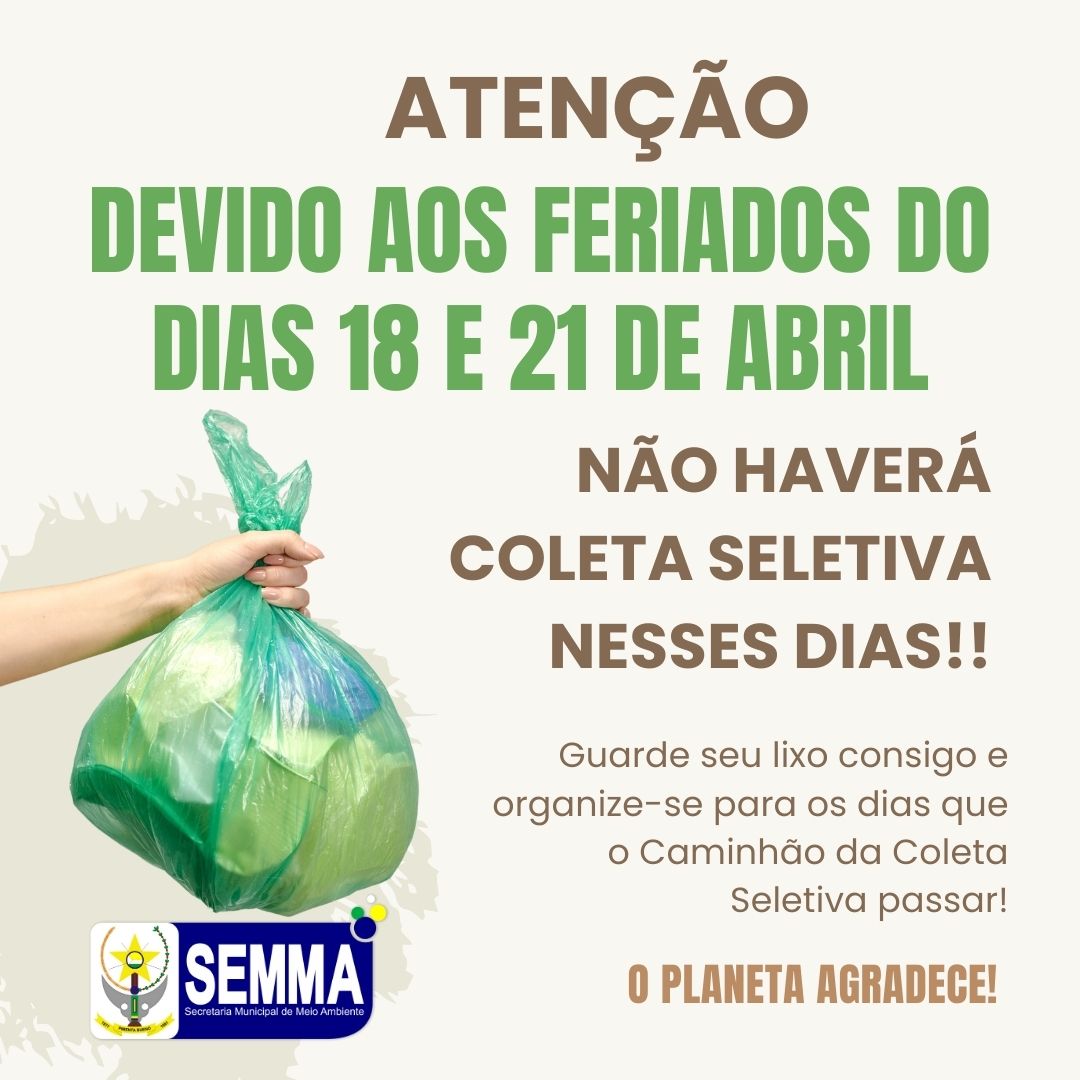 NÃO HAVERÁ COLETA SELETIVA NESSES DIAS!!