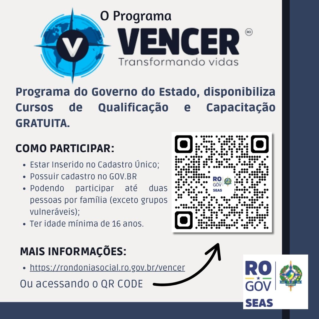 https://rondoniasocial.ro.gov.br/vencerOu pelo QR Code disponível no material de divulgação.