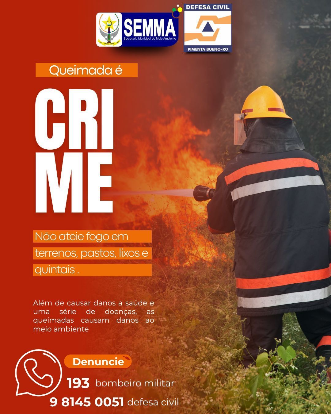Proteger o meio ambiente é dever de todos. Evite queimadas em terrenos, pastos, quintais e lixos.