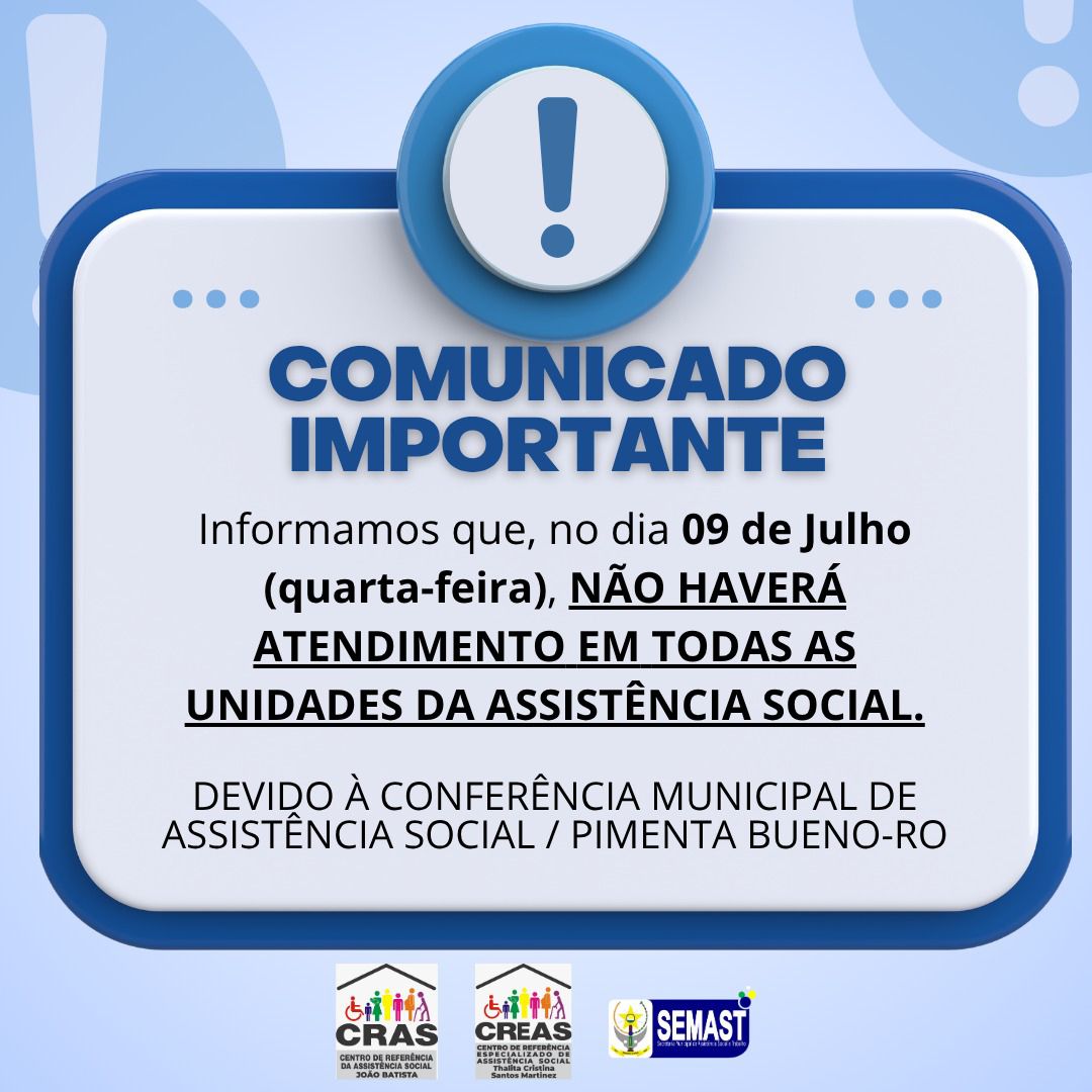#AssistenciaSocial #PimentaBueno #CRAS #CREAS #ComunicadoImportante #SEMAST