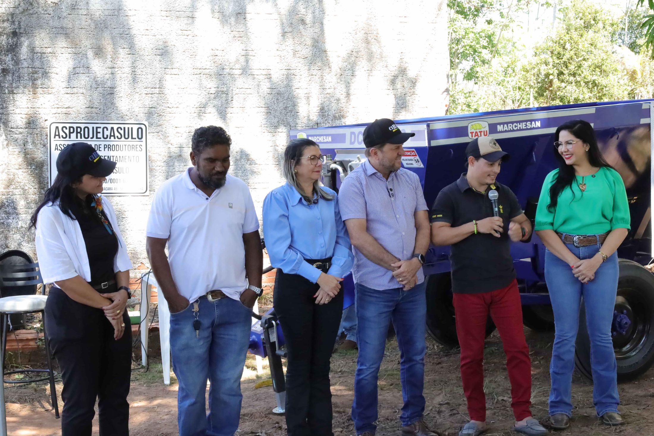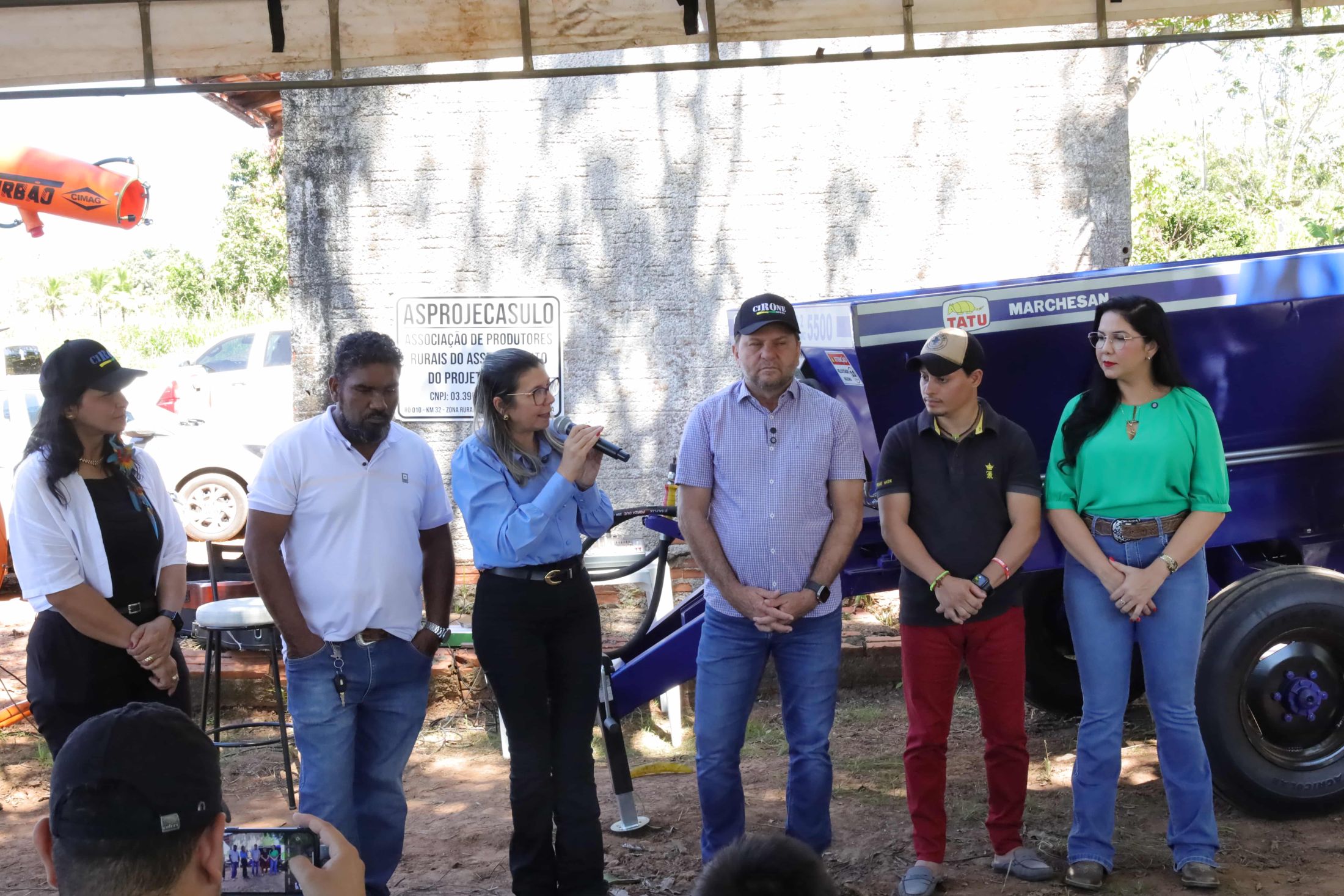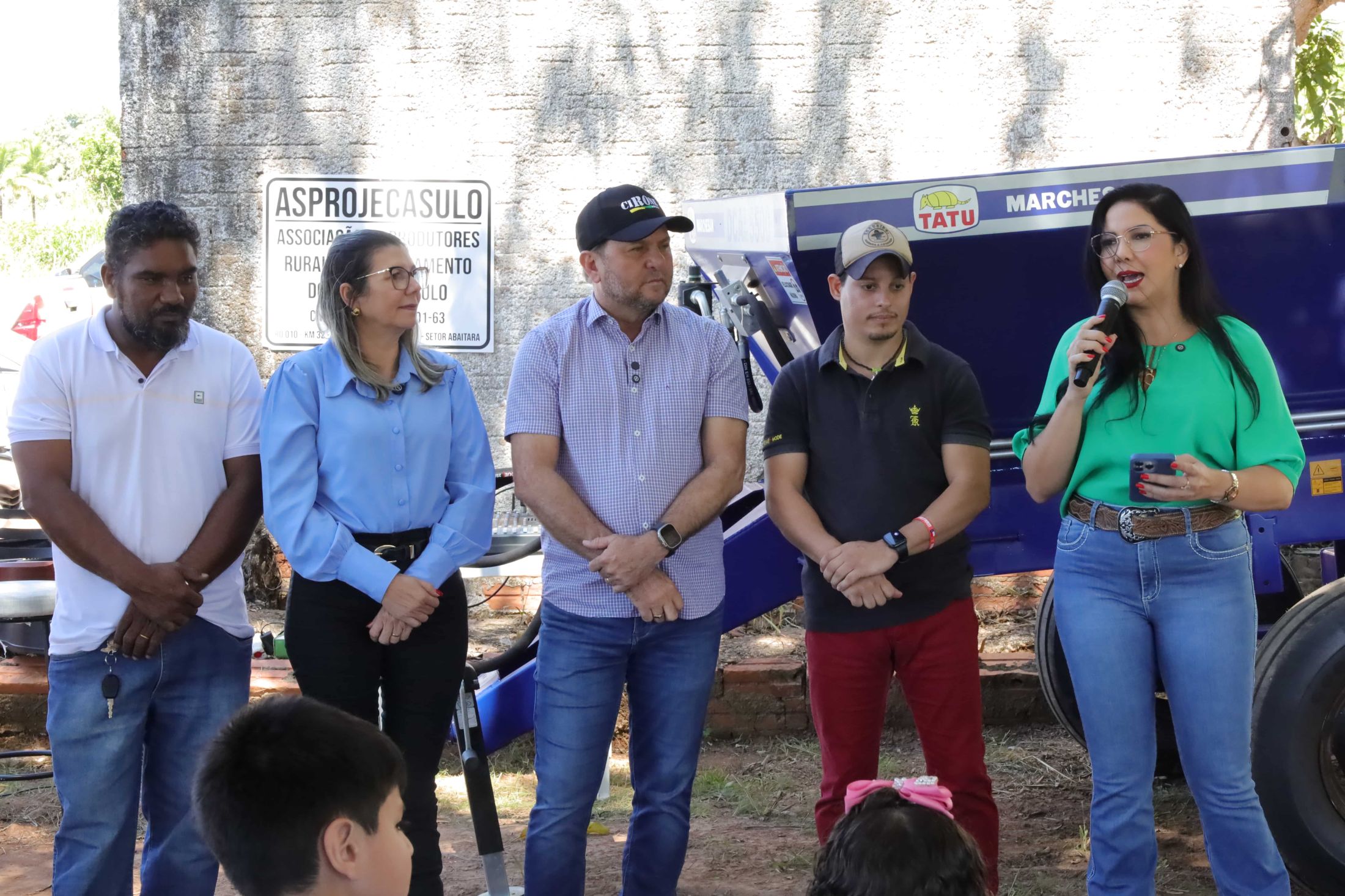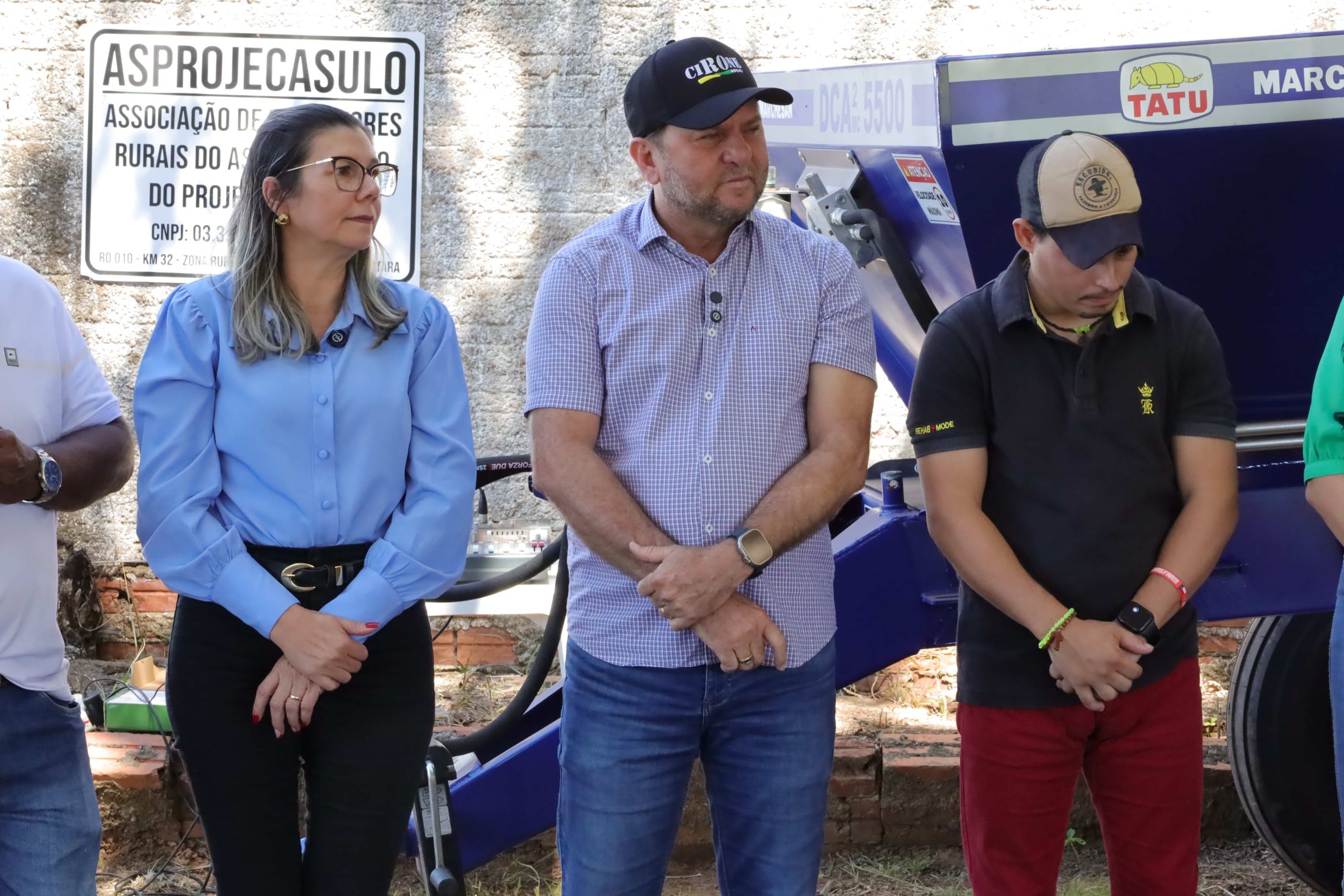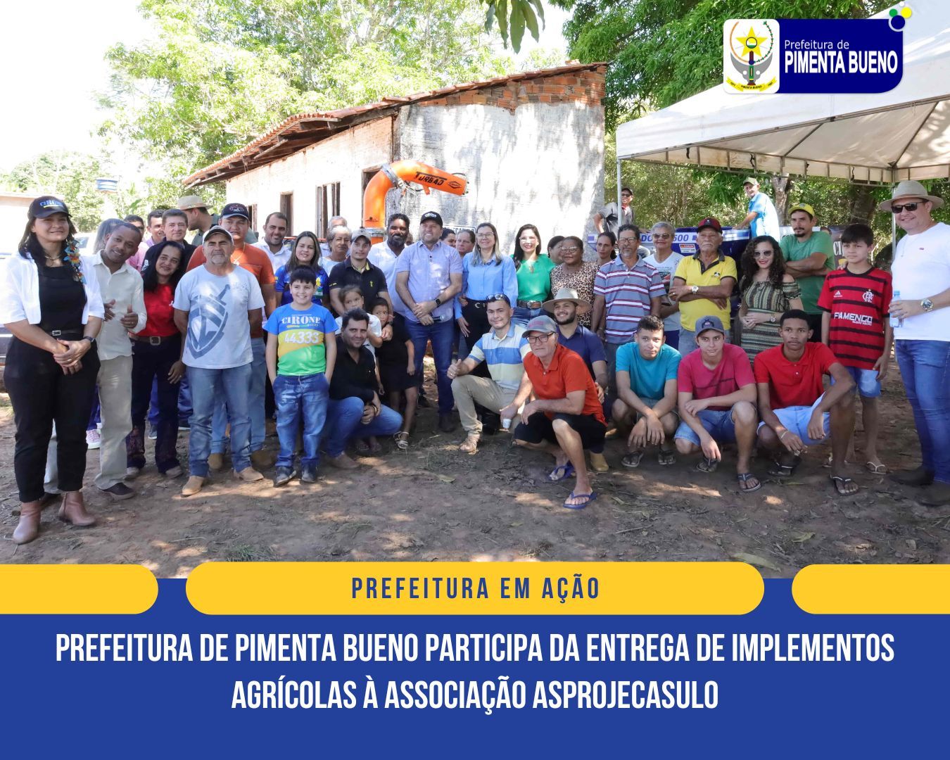 A Prefeitura de Pimenta Bueno esteve presente na entrega de dois importantes implementos agrícolas à Associação ASPROJECASULO, localizada no setor Casulo. Os equipamentos, um jatão e um esparramador de calcário, totalizam um investimento de R$ 114.500,00 (cento e quatorze mil e quinhentos reais), provenientes de uma emenda do Deputado Estadual Cirone Deiró.
