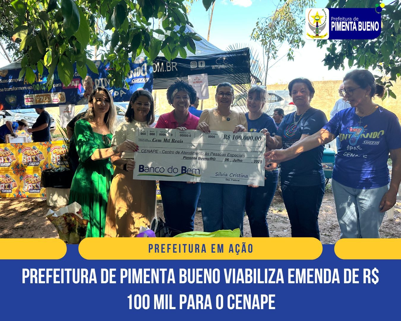 A Prefeitura de Pimenta Bueno, por meio da Secretaria Municipal de Assistência Social (SEMAST), viabilizou a destinação de uma emenda parlamentar no valor de R$ 100 mil para o CENAPE - Centro de Atendimento às Pessoas Especiais.
