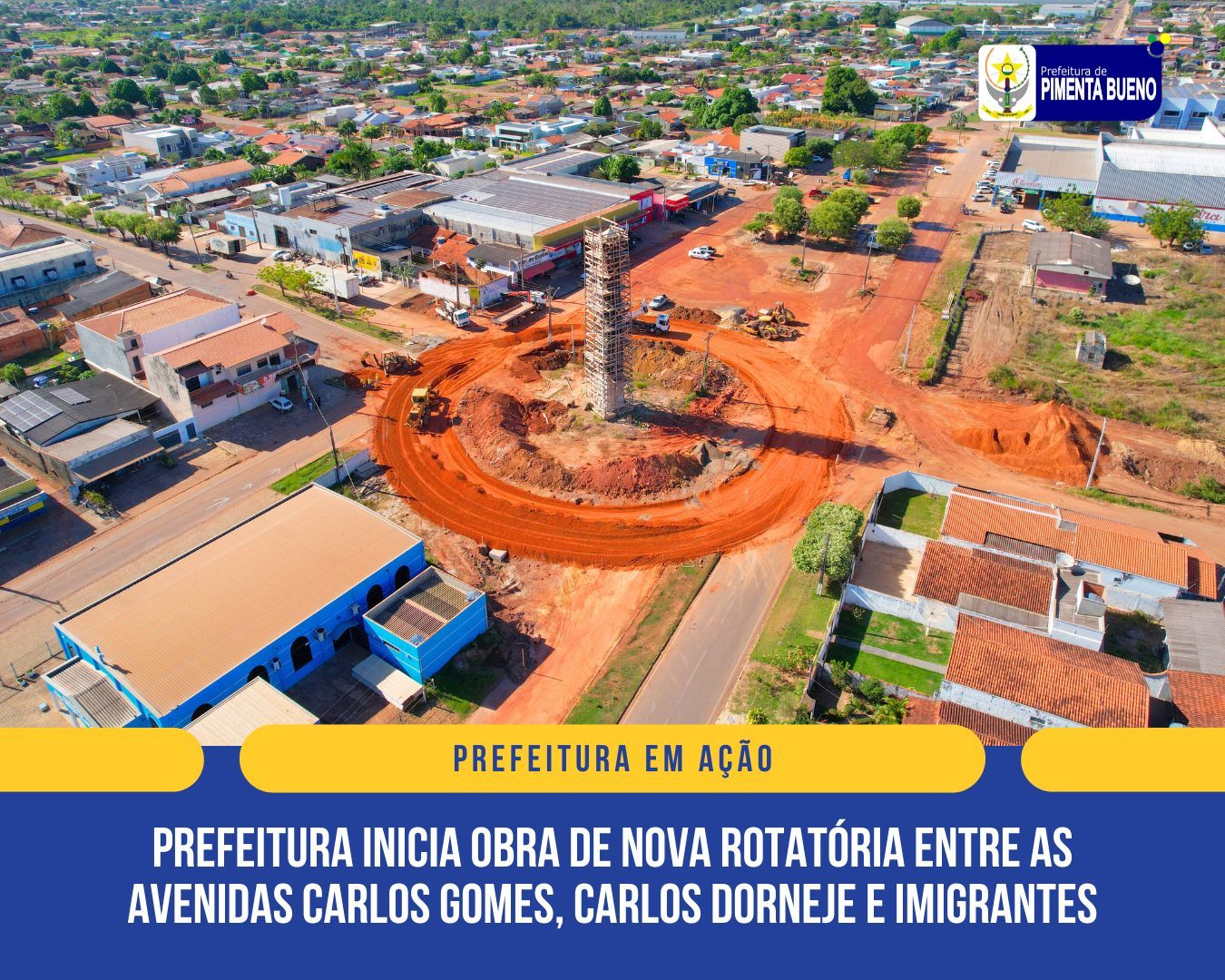A Prefeitura de Pimenta Bueno iniciou uma importante obra de infraestrutura urbana que promete melhorar significativamente a mobilidade na cidade. Está em andamento a construção de uma nova rotatória no cruzamento das avenidas Carlos Gomes, Carlos Dorneje e dos Imigrantes, um ponto estratégico que recebe grande fluxo de veículos e pedestres diariamente.