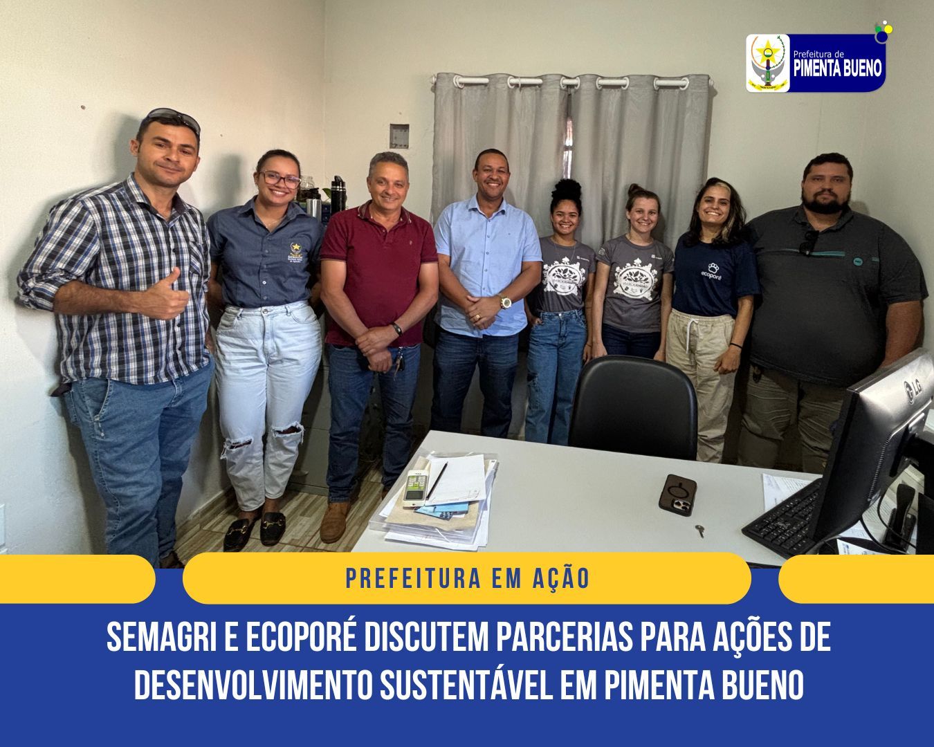 A Secretaria Municipal de Agricultura (SEMAGRI) de Pimenta Bueno recebeu, recentemente, a visita da equipe da organização Ecoporé, em uma reunião voltada à apresentação de programas e projetos ambientais em andamento. Entre os destaques, ganhou evidência o projeto de recuperação de Áreas de Preservação Permanente (APP), que tem como objetivo restaurar ecossistemas e promover o uso sustentável dos recursos naturais.