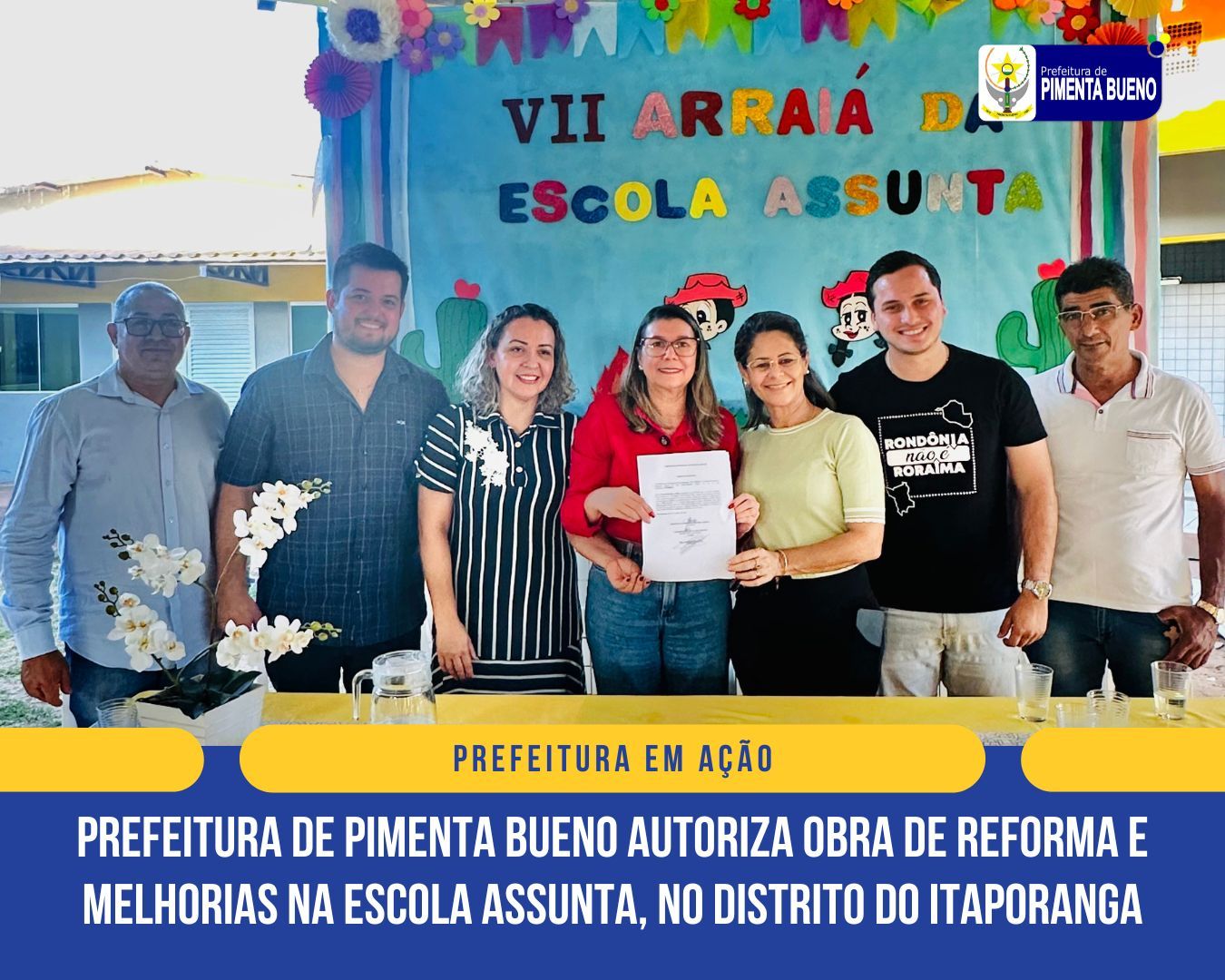 A Prefeitura de Pimenta Bueno deu mais um importante passo para o fortalecimento da educação no município. Na tarde desta segunda-feira (14/07/25), foi assinada a ordem de serviço que autoriza o início das obras de reforma e melhorias na Escola Municipal Assunta Maria Gianini Favaleça, situada no Distrito do Itaporanga.