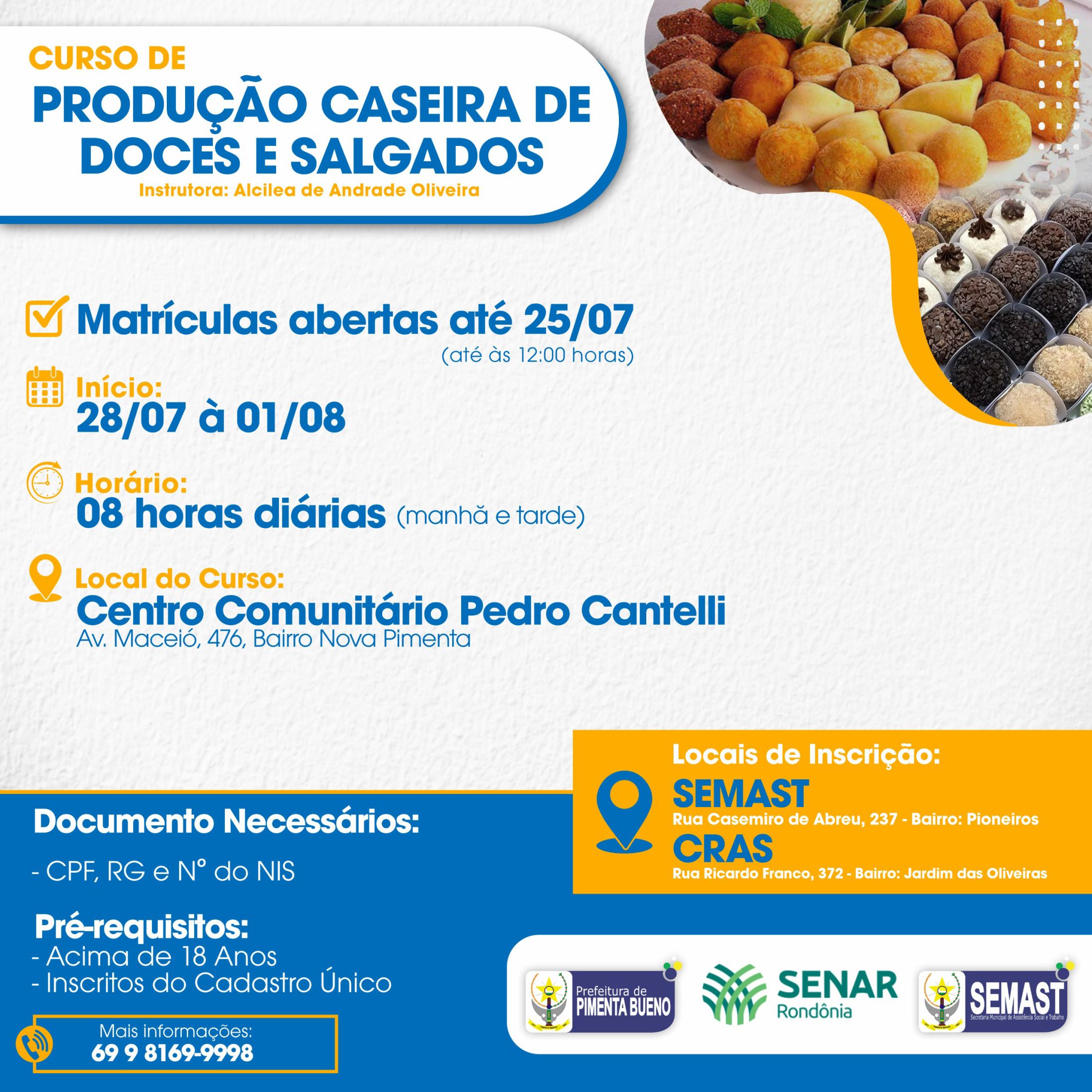CURSO GRATUITO de Produção Caseira de Doces e Salgados!
